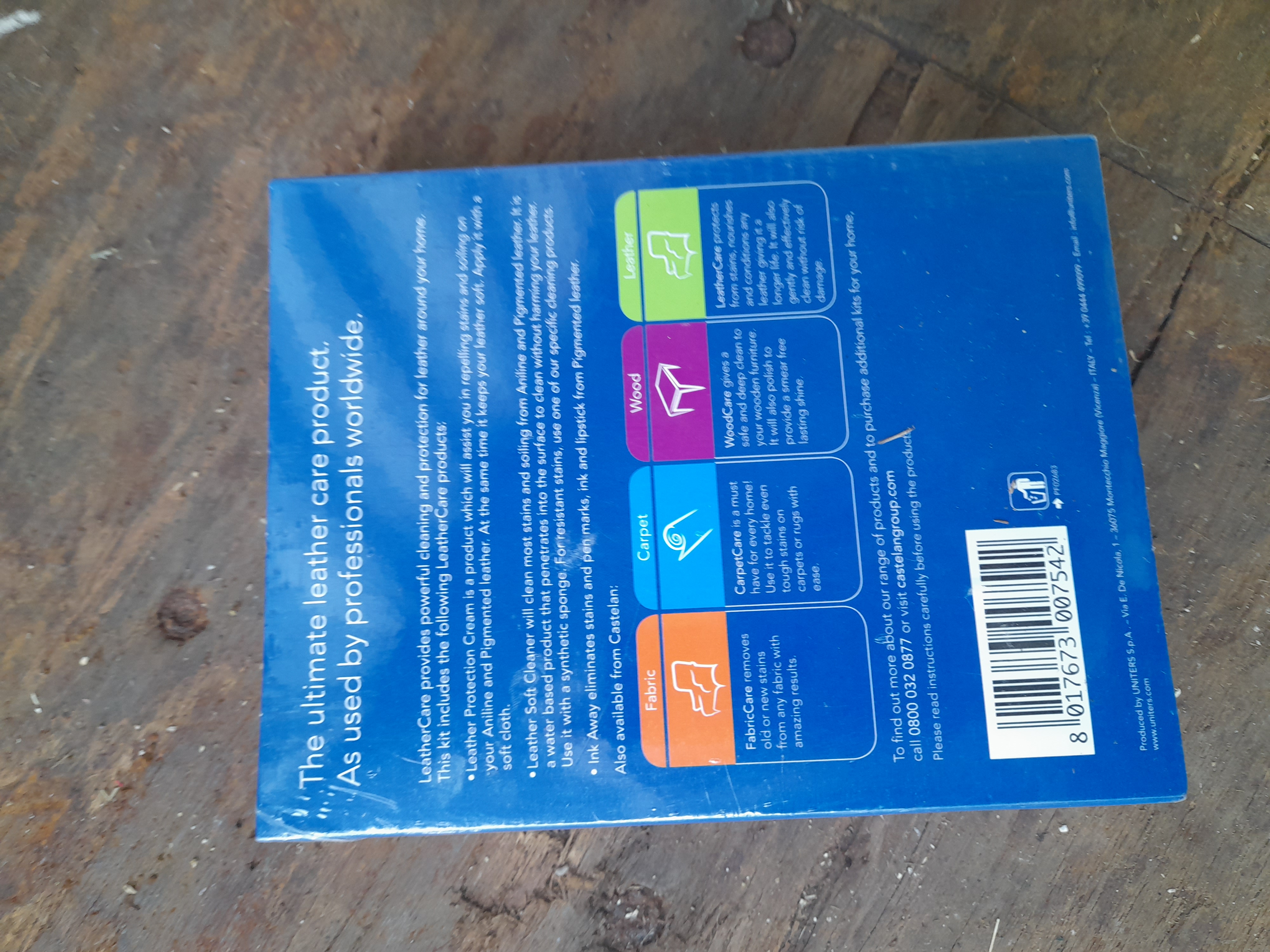 A boxed Leather Master PremierCare LeatherCare 250i furniture cleaning kit produced by UNITERS S.p.A. for the cleaning and protection of leather.
