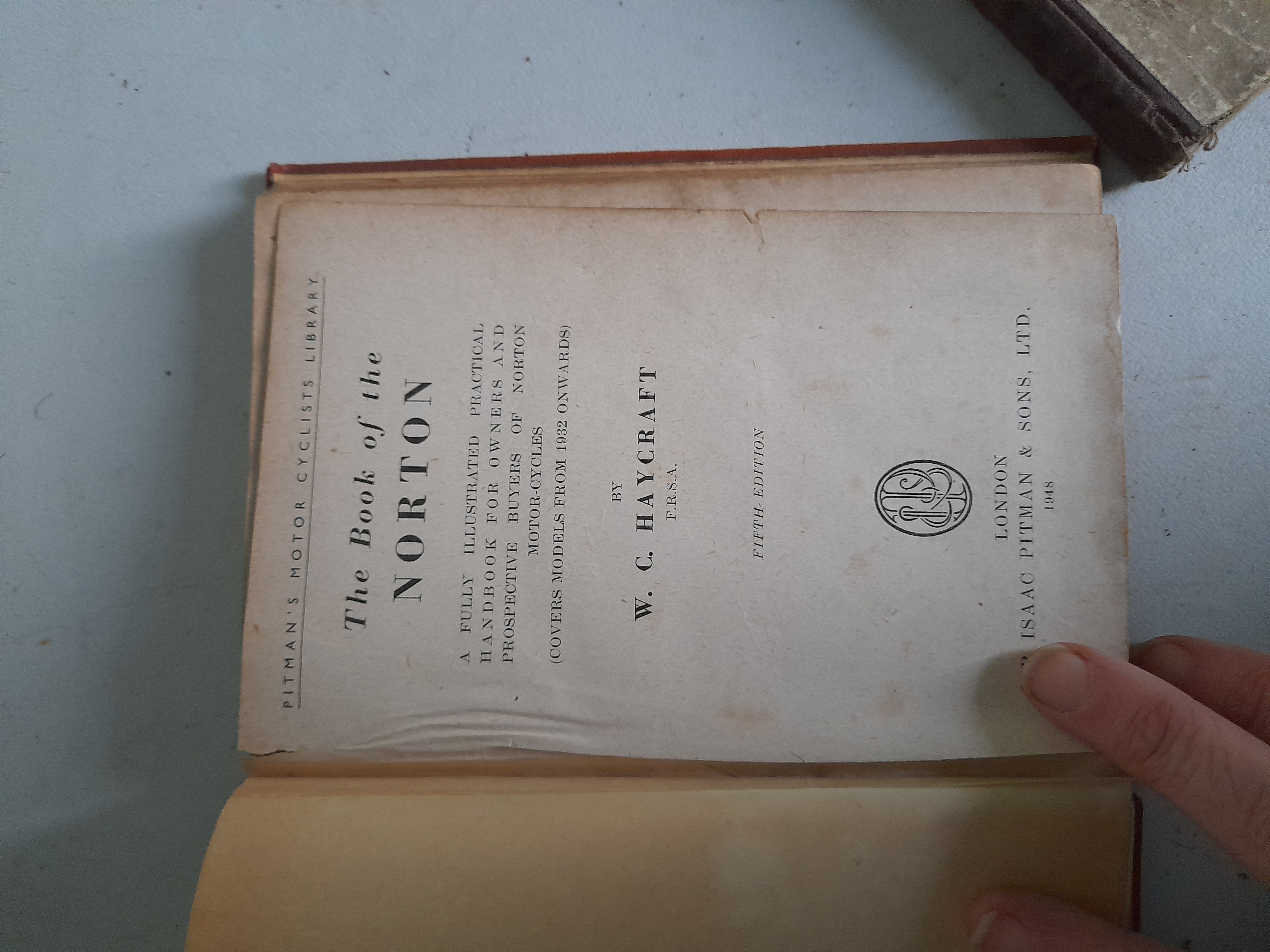 This lot features two vintage technical handbooks from the renowned Pitman’s Motor-Cyclists’ Library, published by Sir Isaac Pitman & Sons, Ltd., London. The first volume is The Book of the Sunbeam by Heathcote, a specialised guide for the maintenance and operation of Sunbeam motorcycles. The second volume is a fifth-edition copy of The Book of the Norton by W. C. Haycraft, dated 1948, which provides comprehensive coverage for Norton models from 1932 onwards. This Norton edition carries significant provenance as a former reference copy from the Harris Public Library and Preston Public Libraries. It retains its original internal lending sheet, displaying numerous date stamps from 1950 to 1952, alongside a Restricted Issue classification label. These volumes represent the utilitarian literature essential to the post-war British motoring community. No measurements provided.