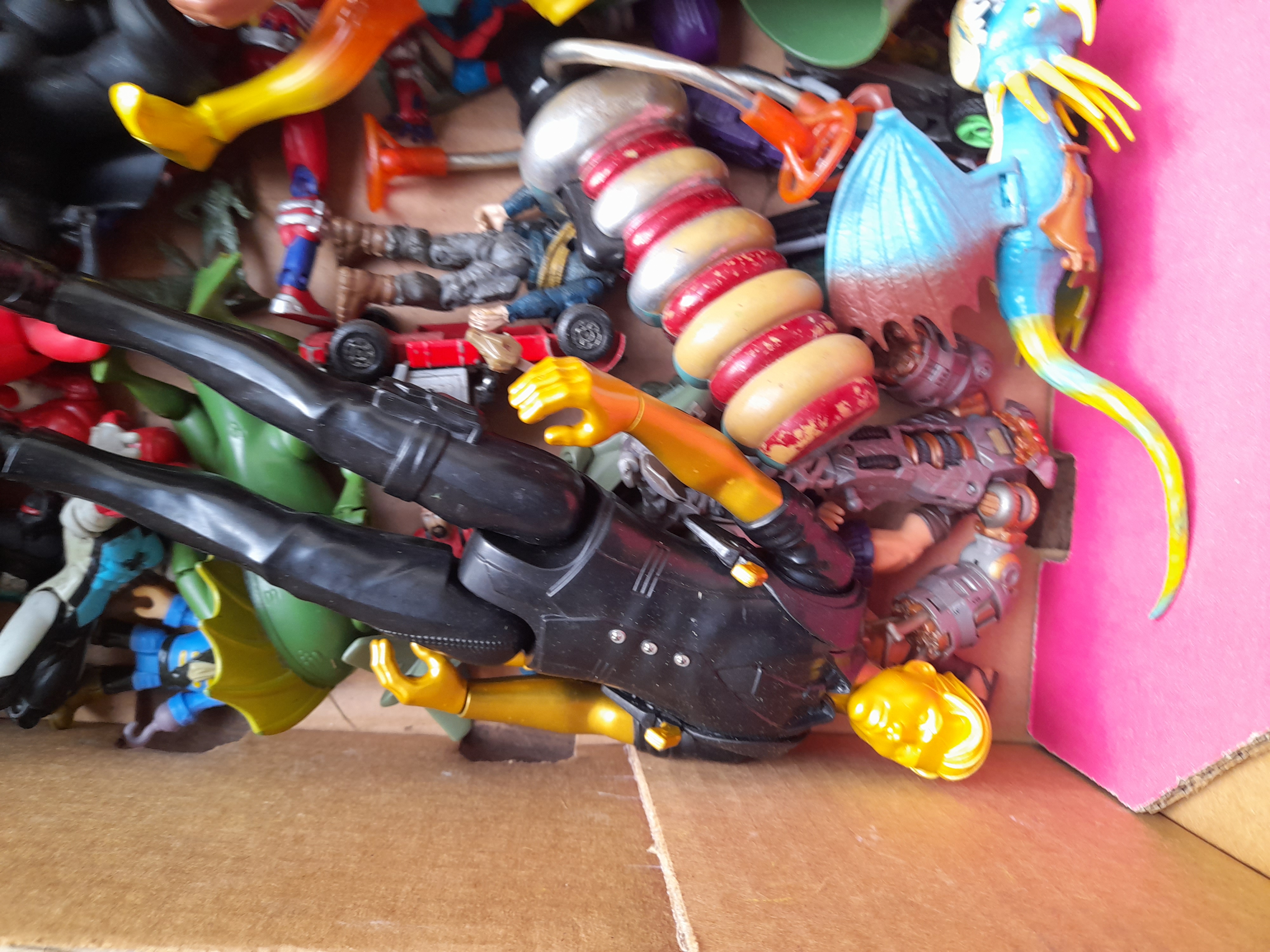 A Collection of Multicoloured Plastic Action Figures and Accessories