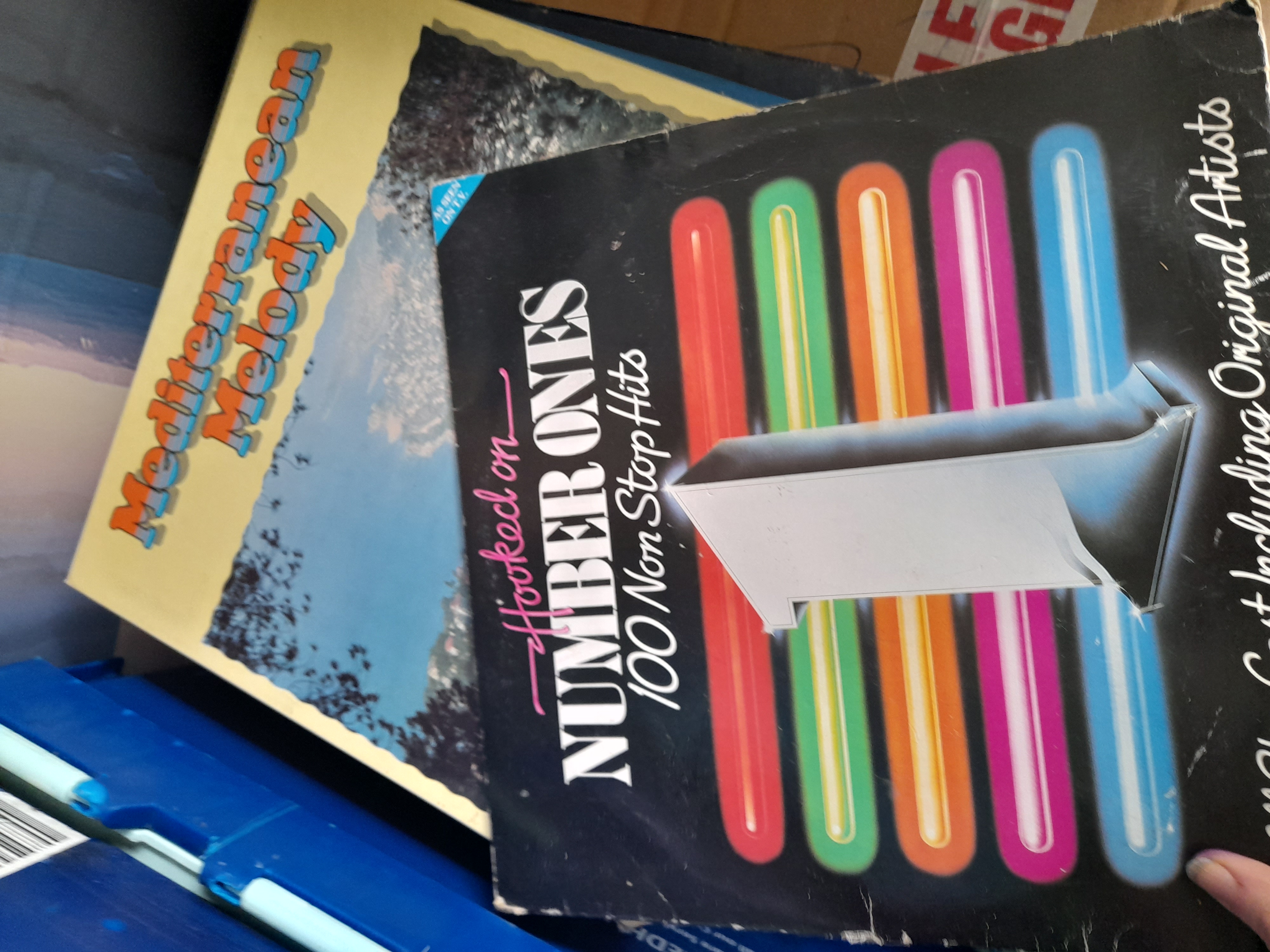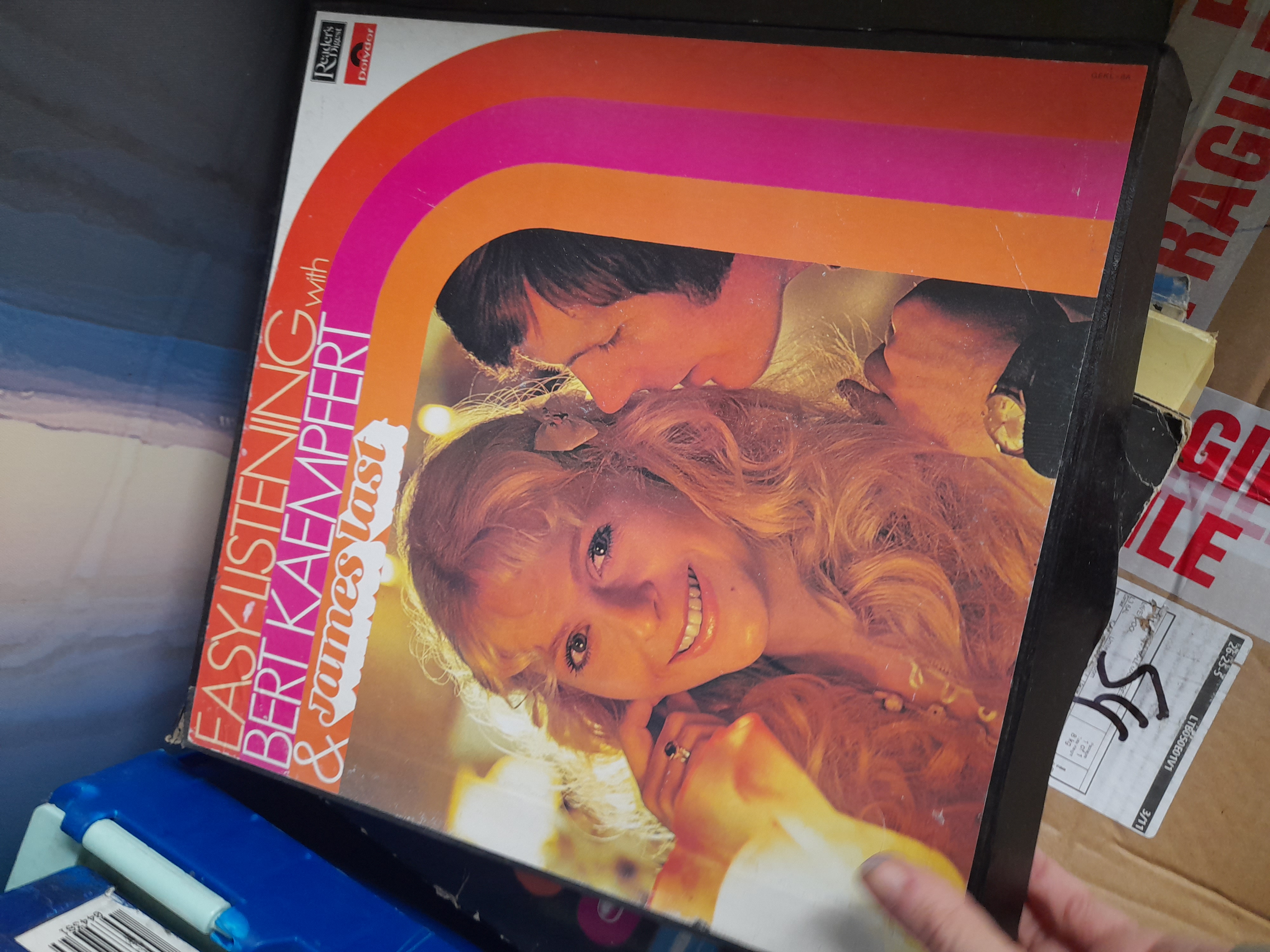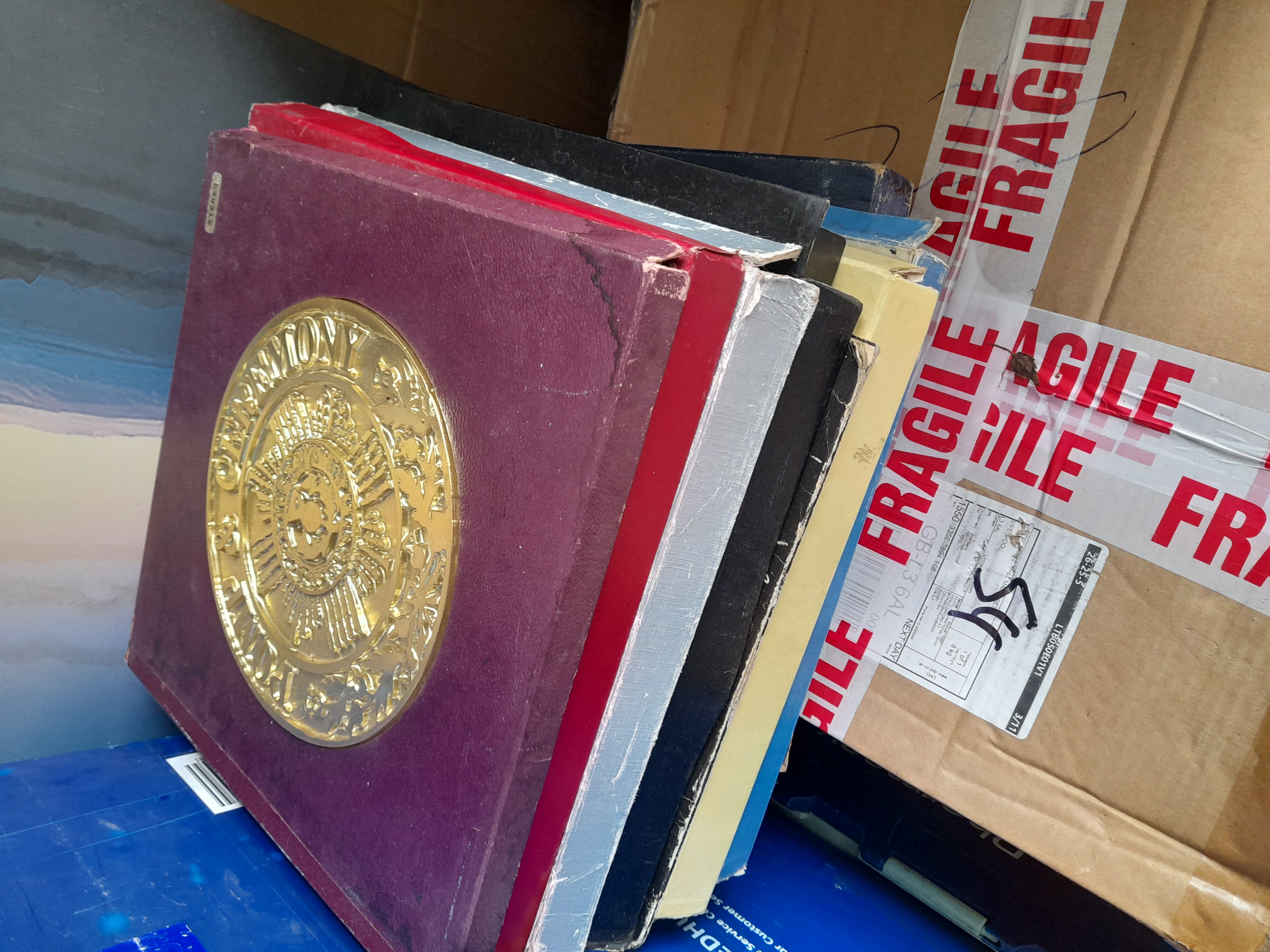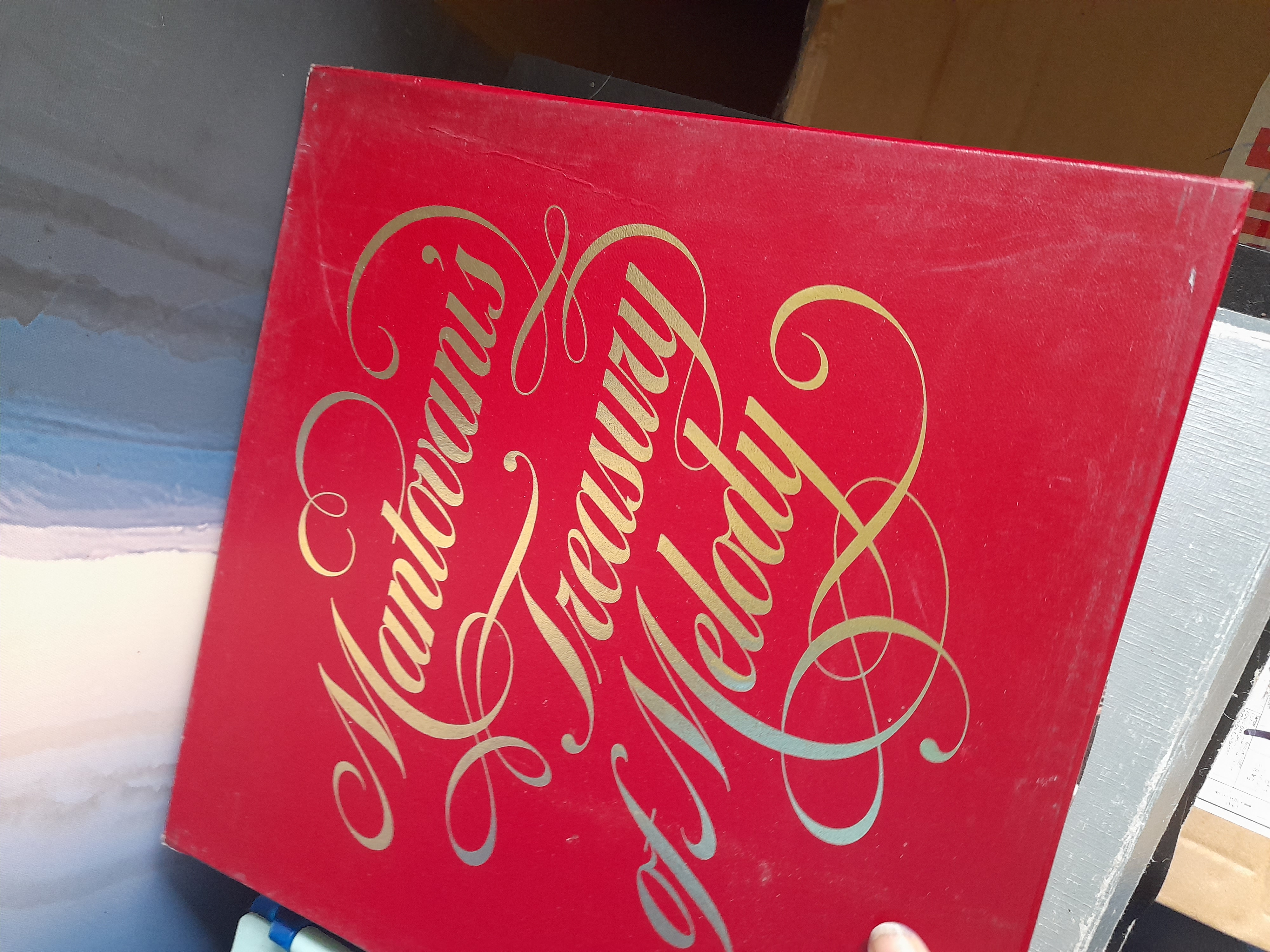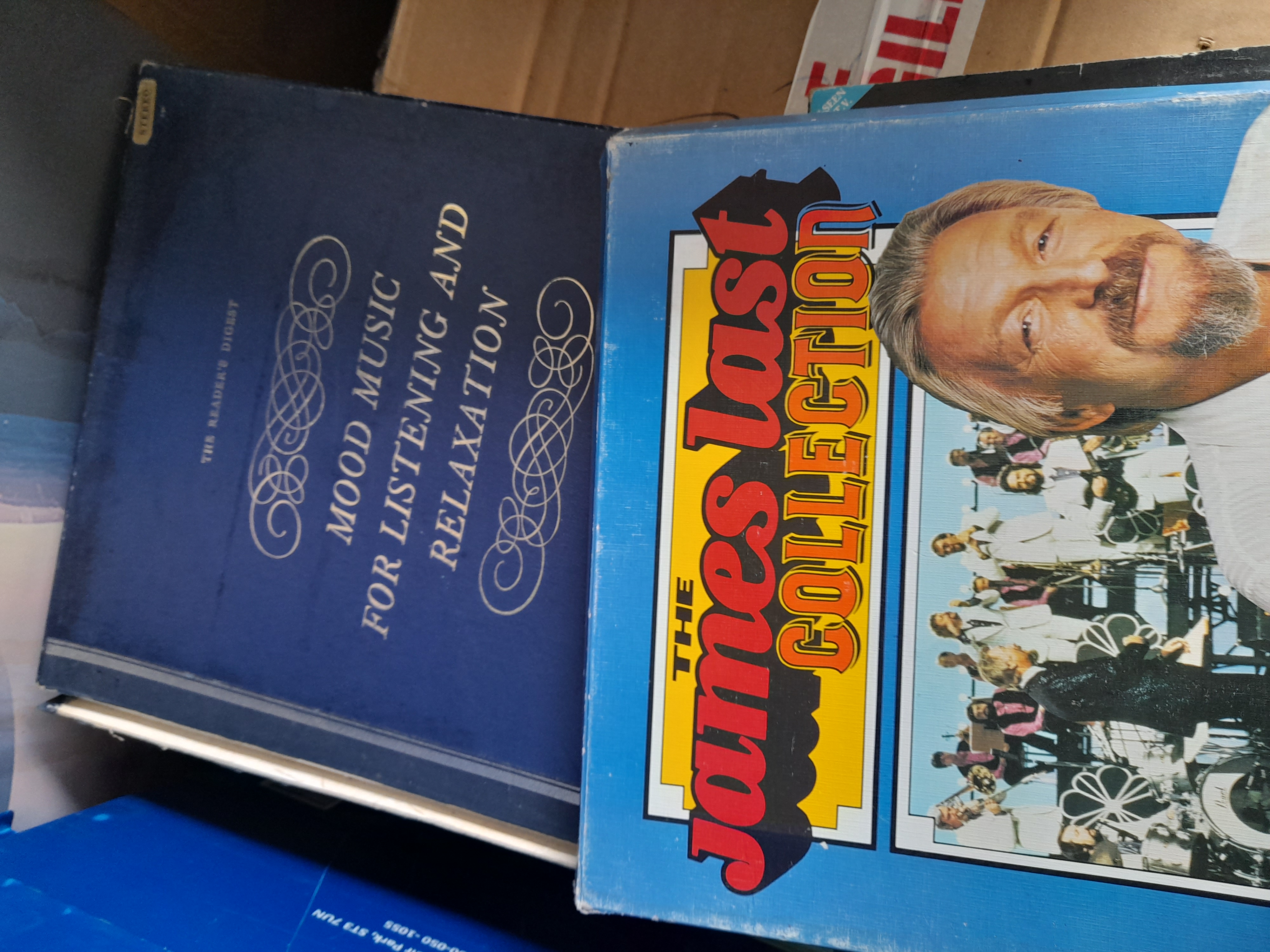 A collection of several vinyl record box sets including Pomp and Ceremony, Mantovani’s Treasury of Melody, and various Reader’s Digest compilations.