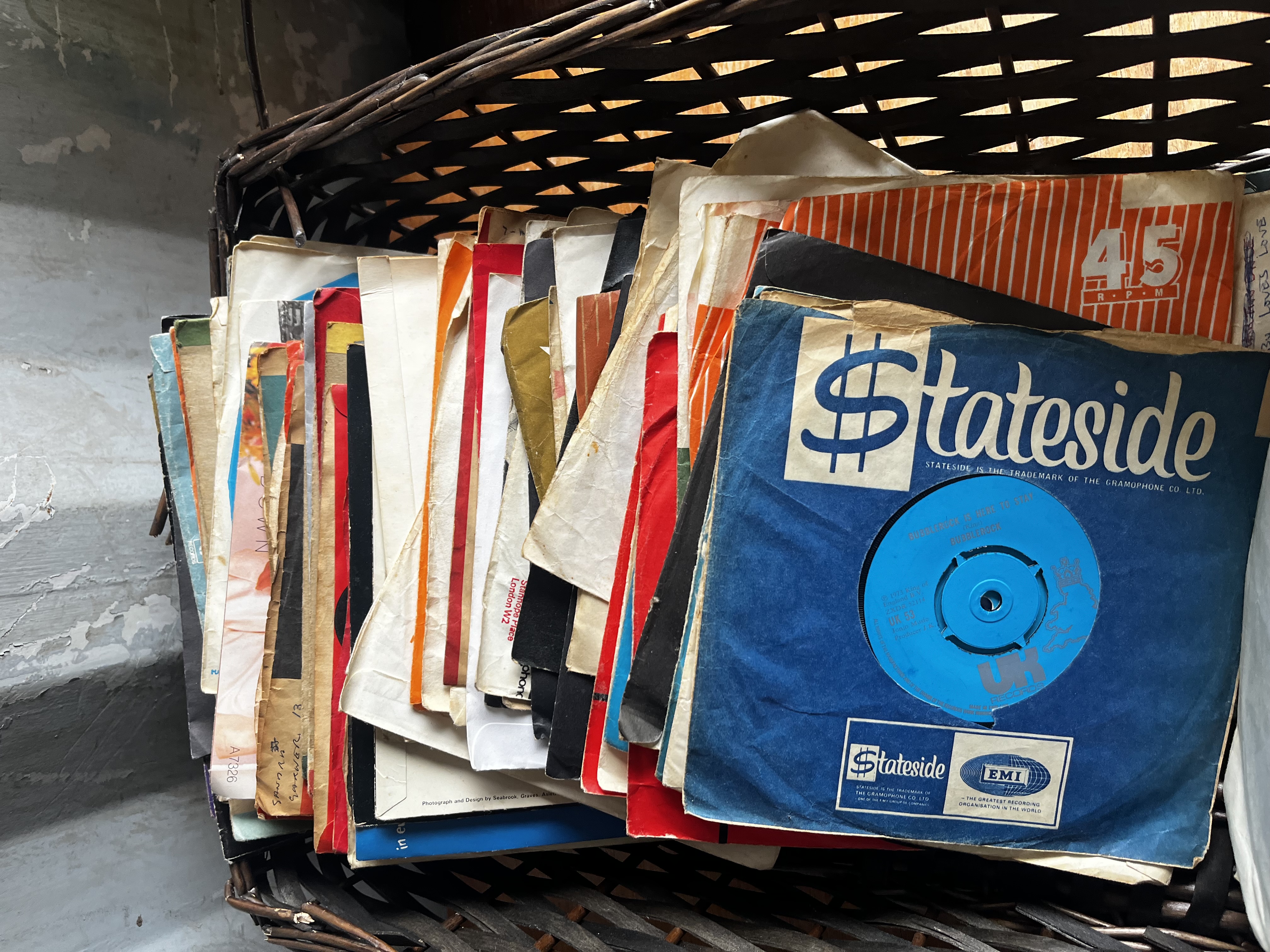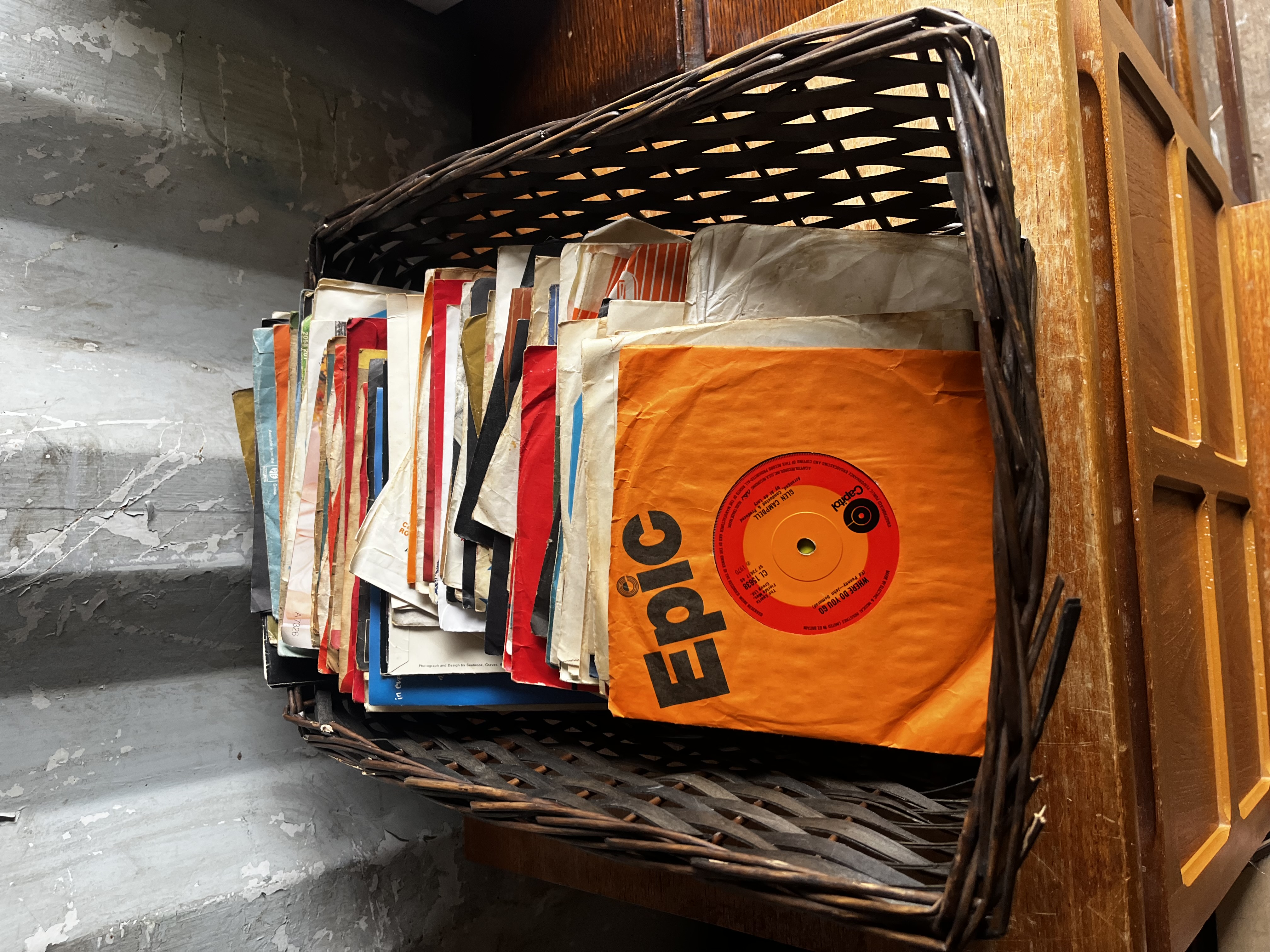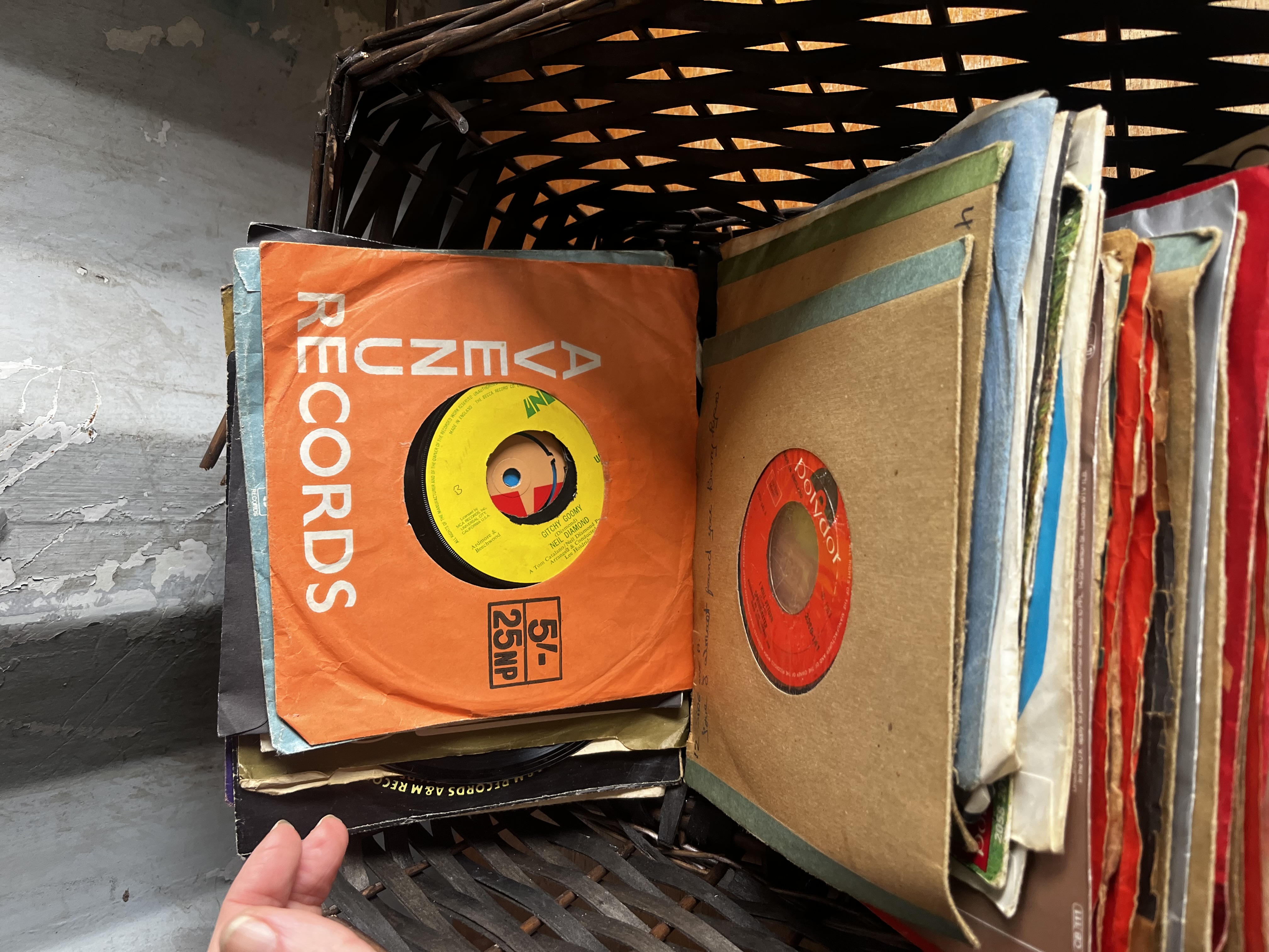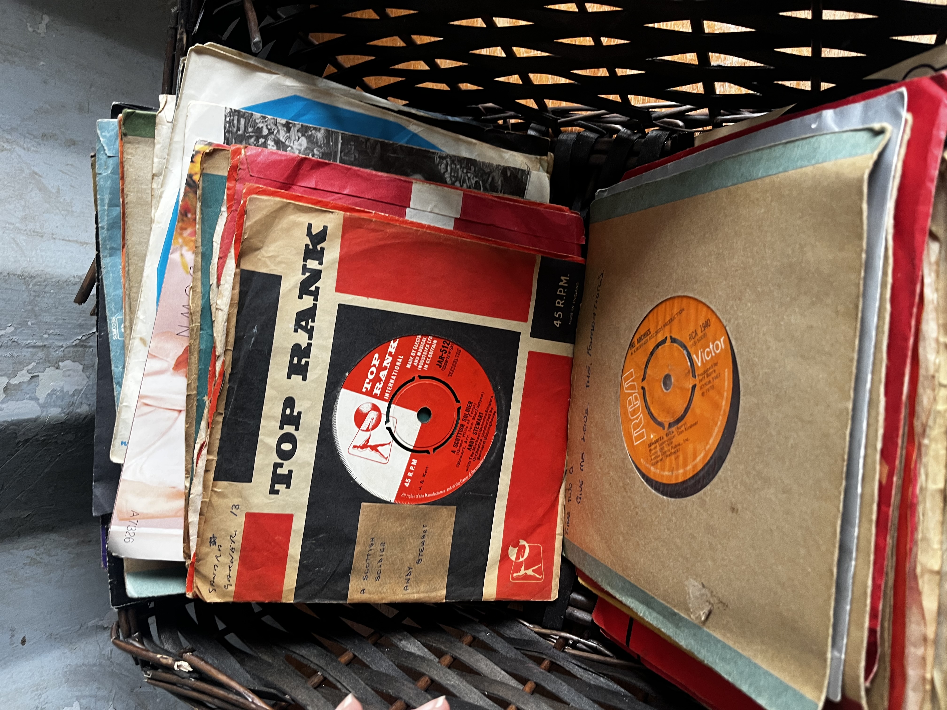 Large job lot From the 70s/80s note: wickerbasket has collapsed during lotting so exchanged for record box