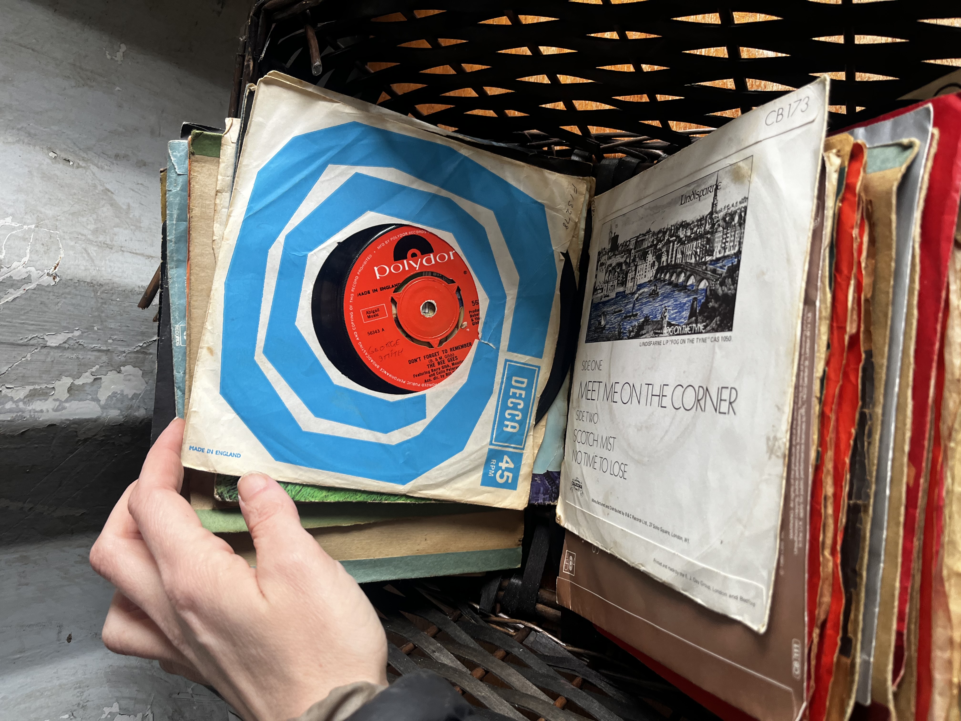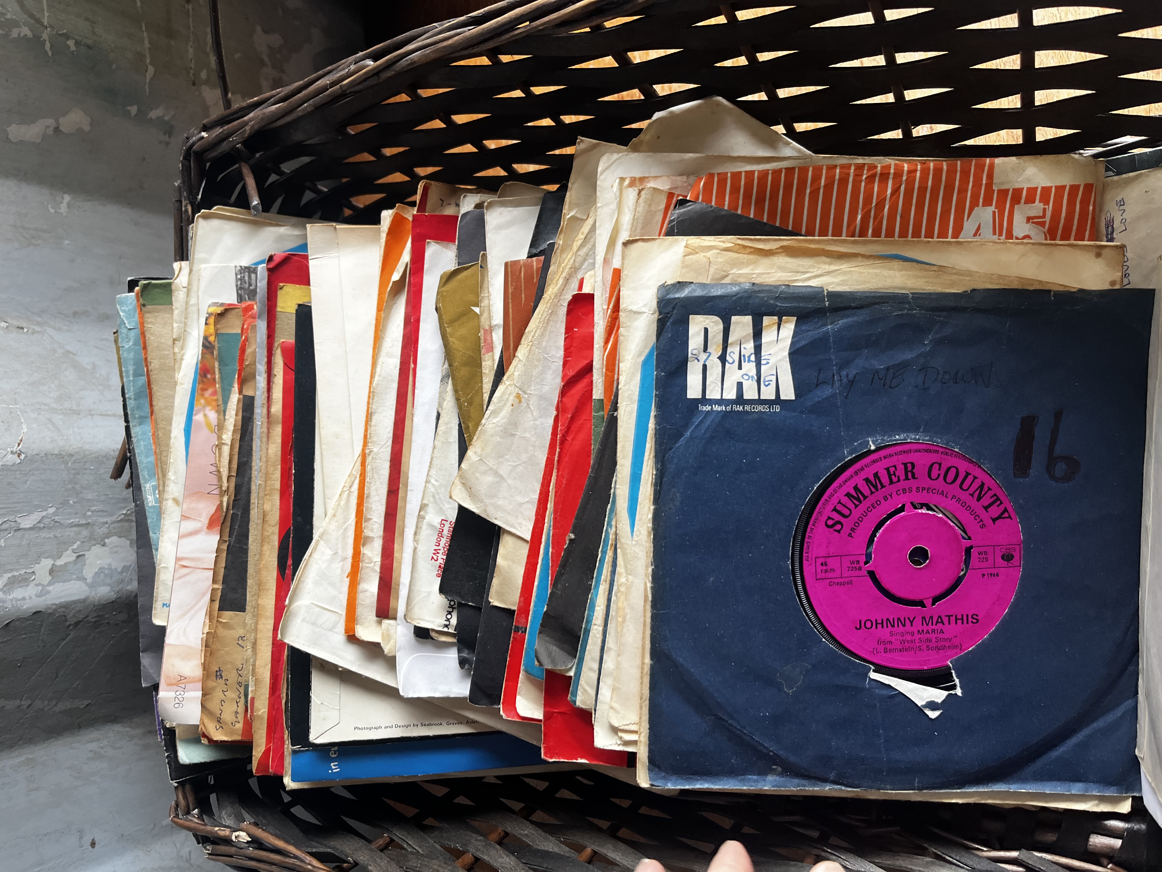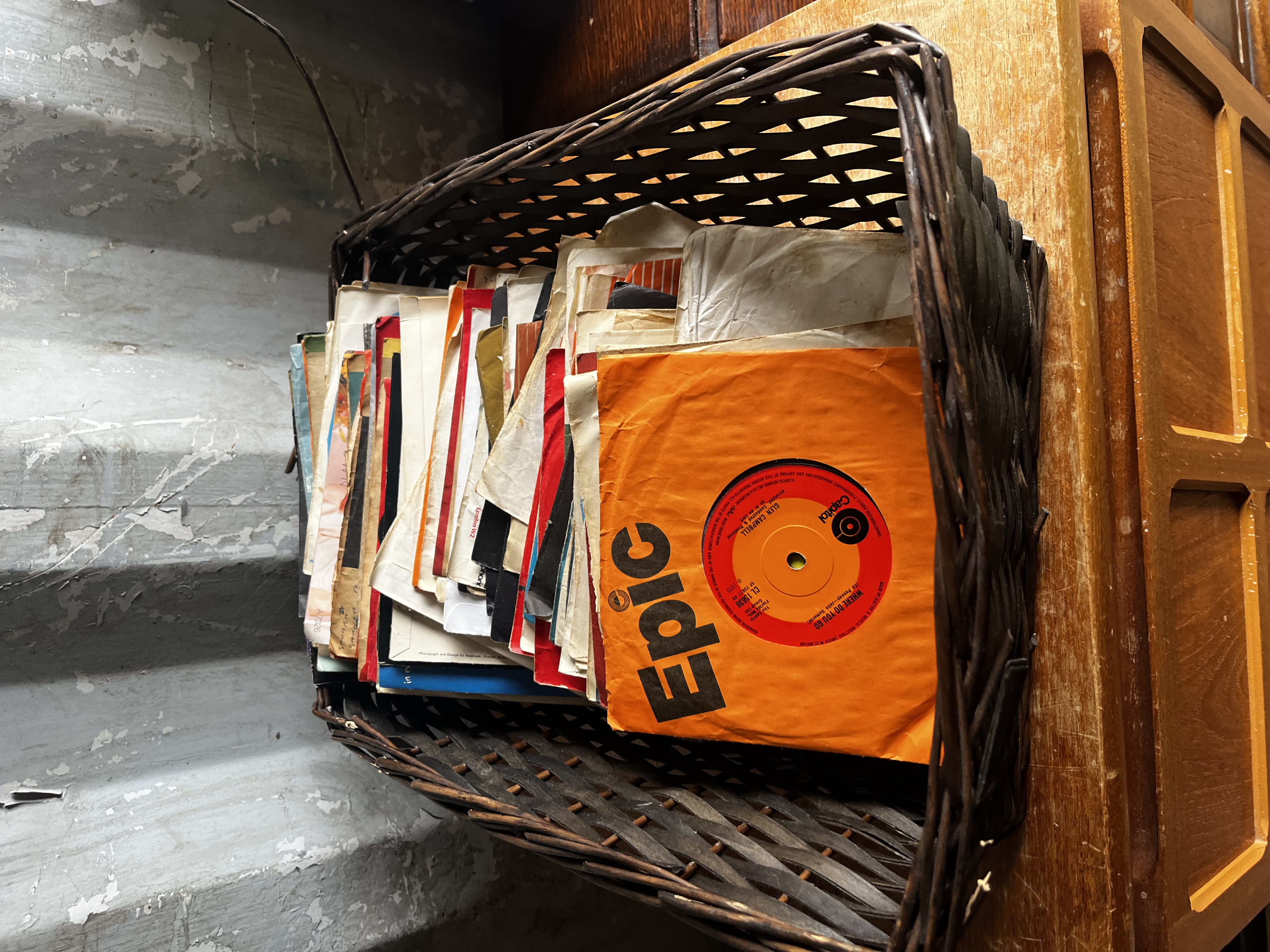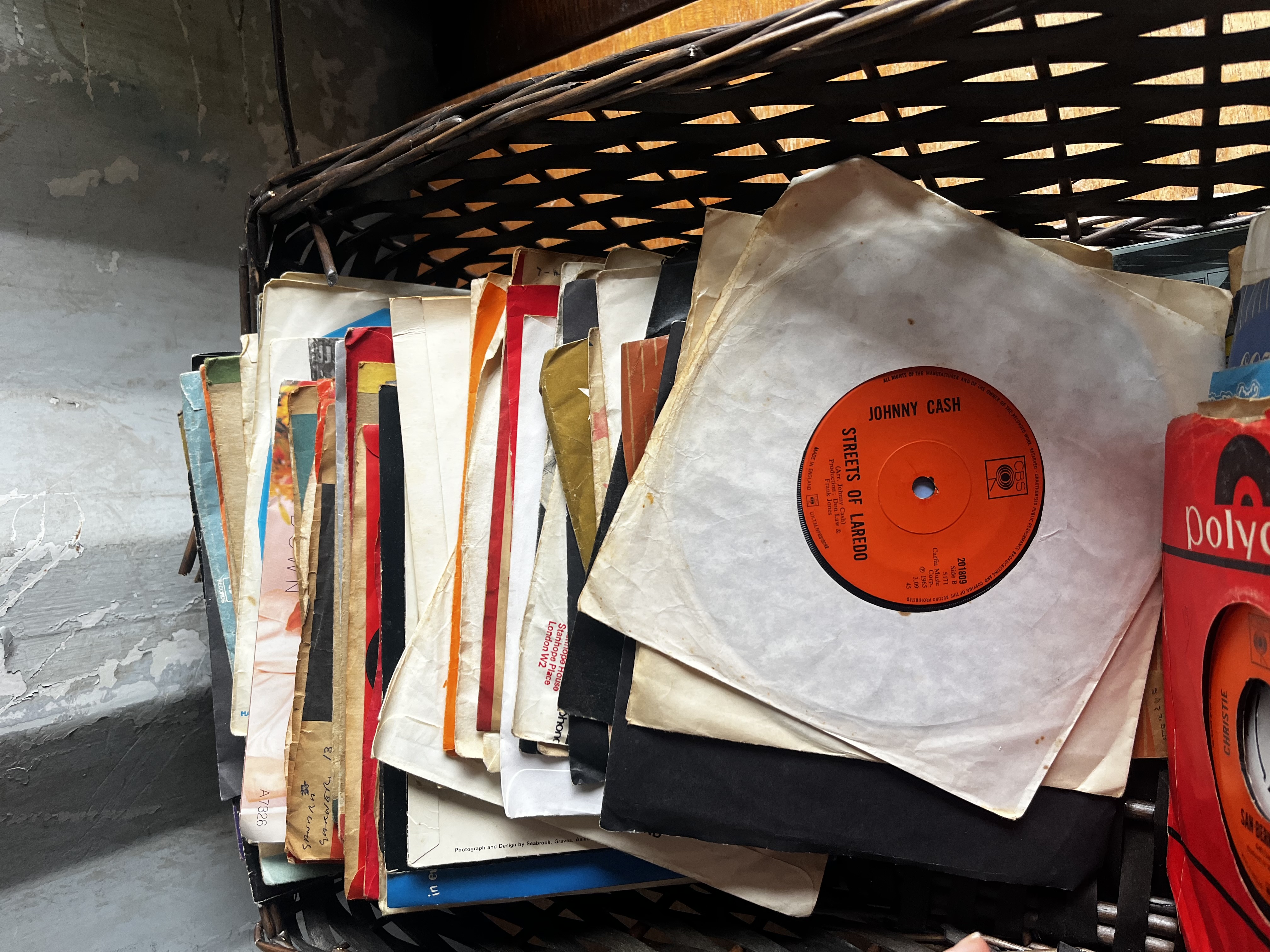 Large job lot From the 70s/80s note: wickerbasket has collapsed during lotting so exchanged for record box