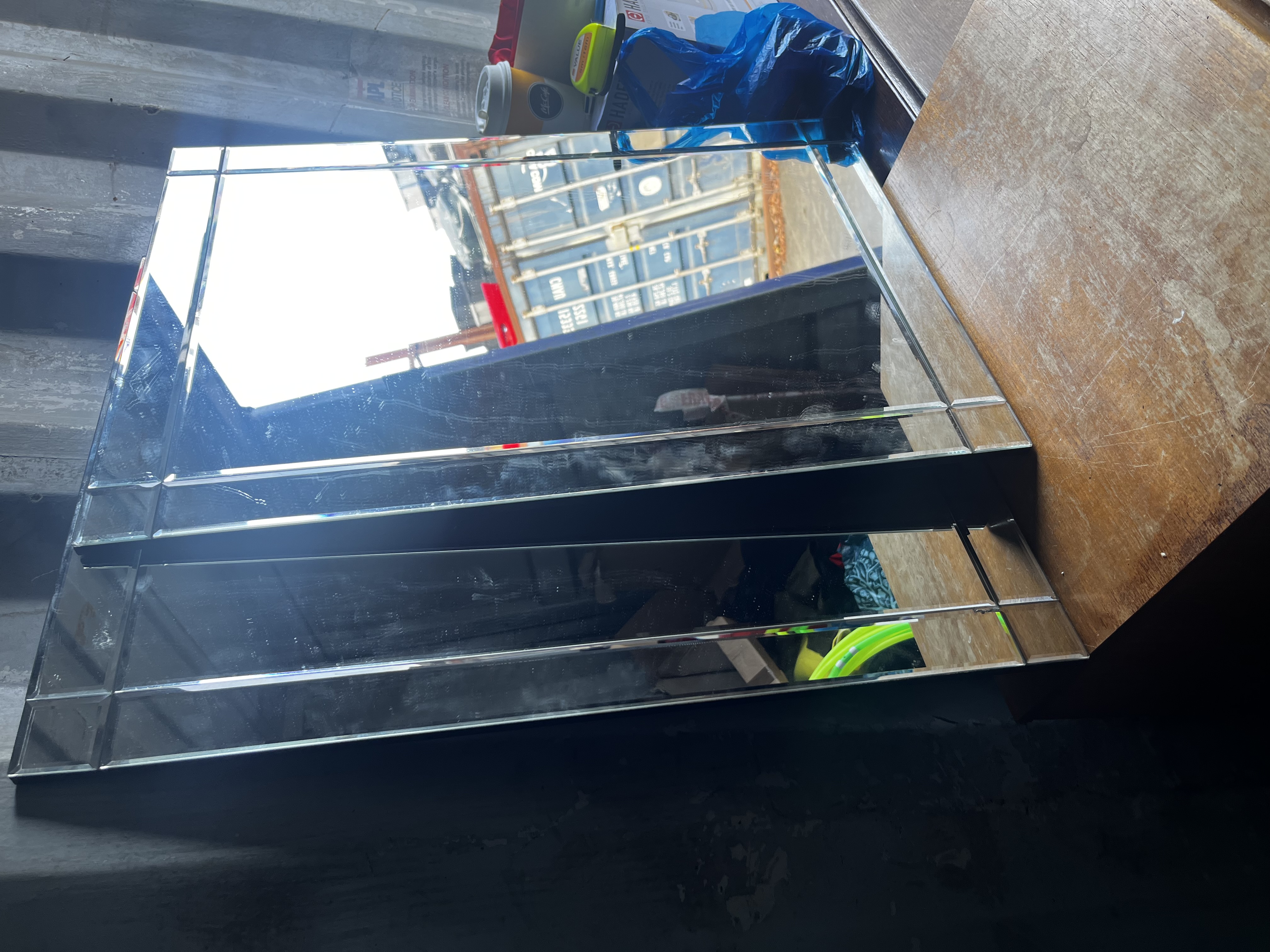 Pair of matching cut glass mirrors
