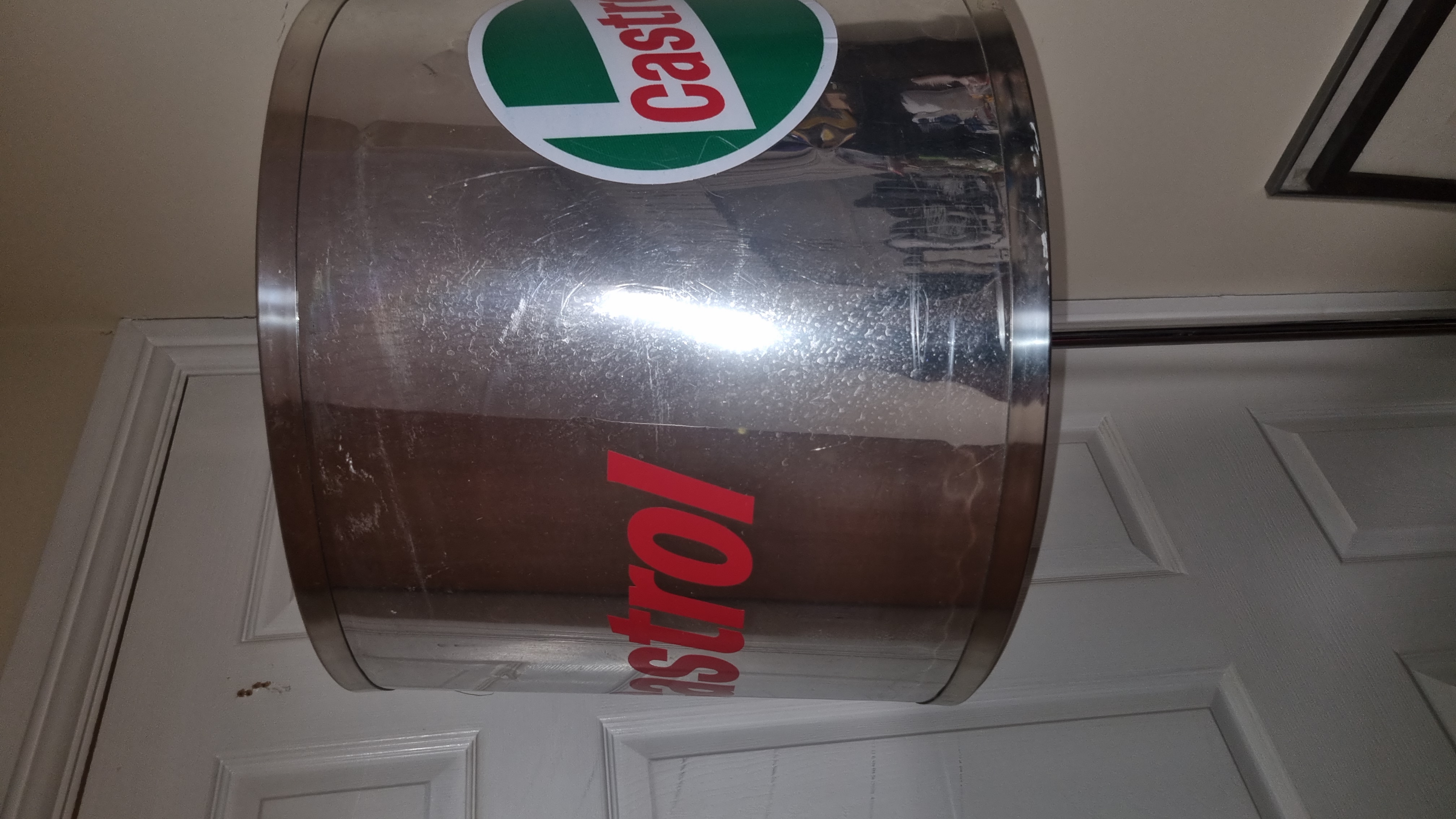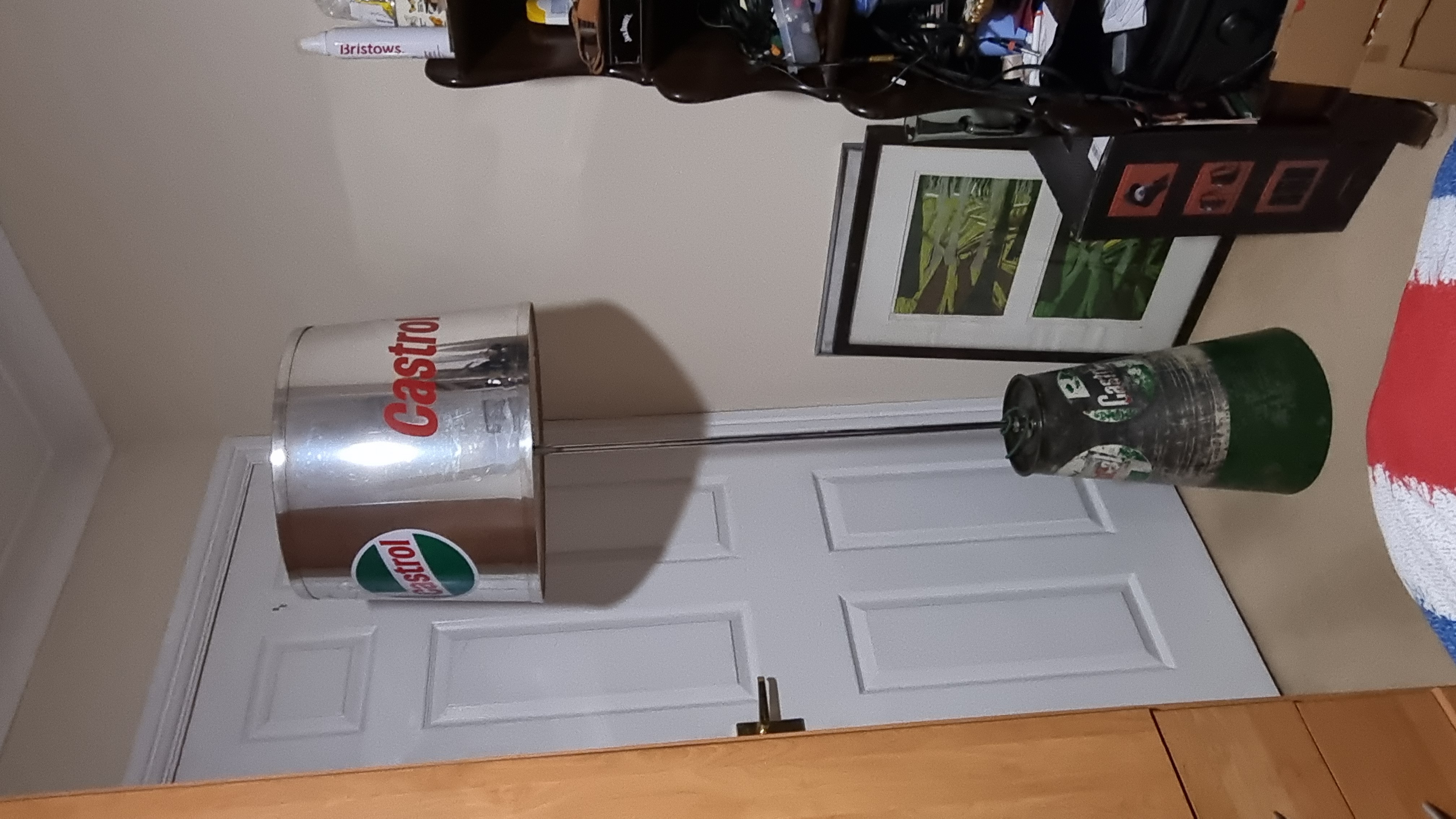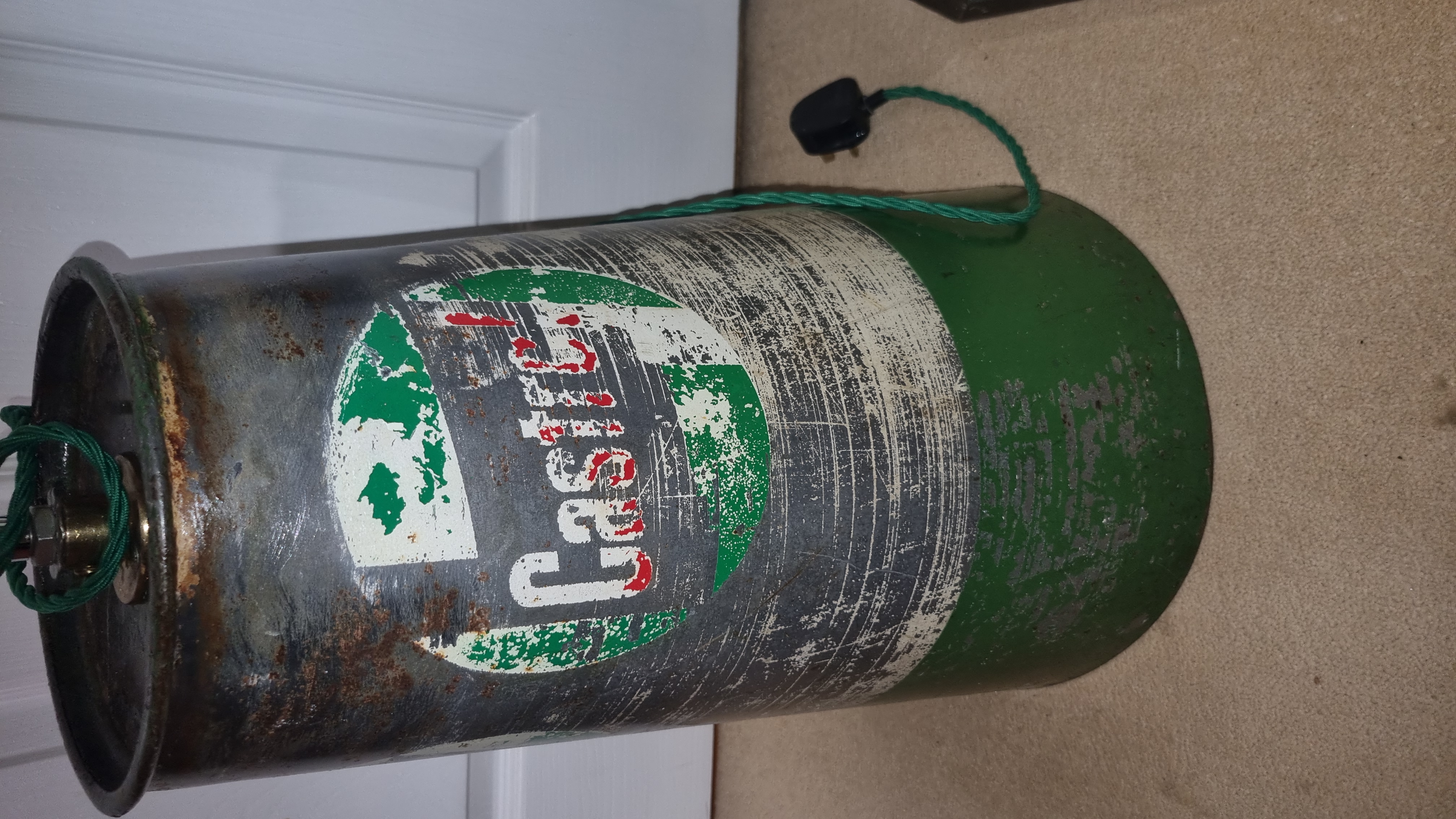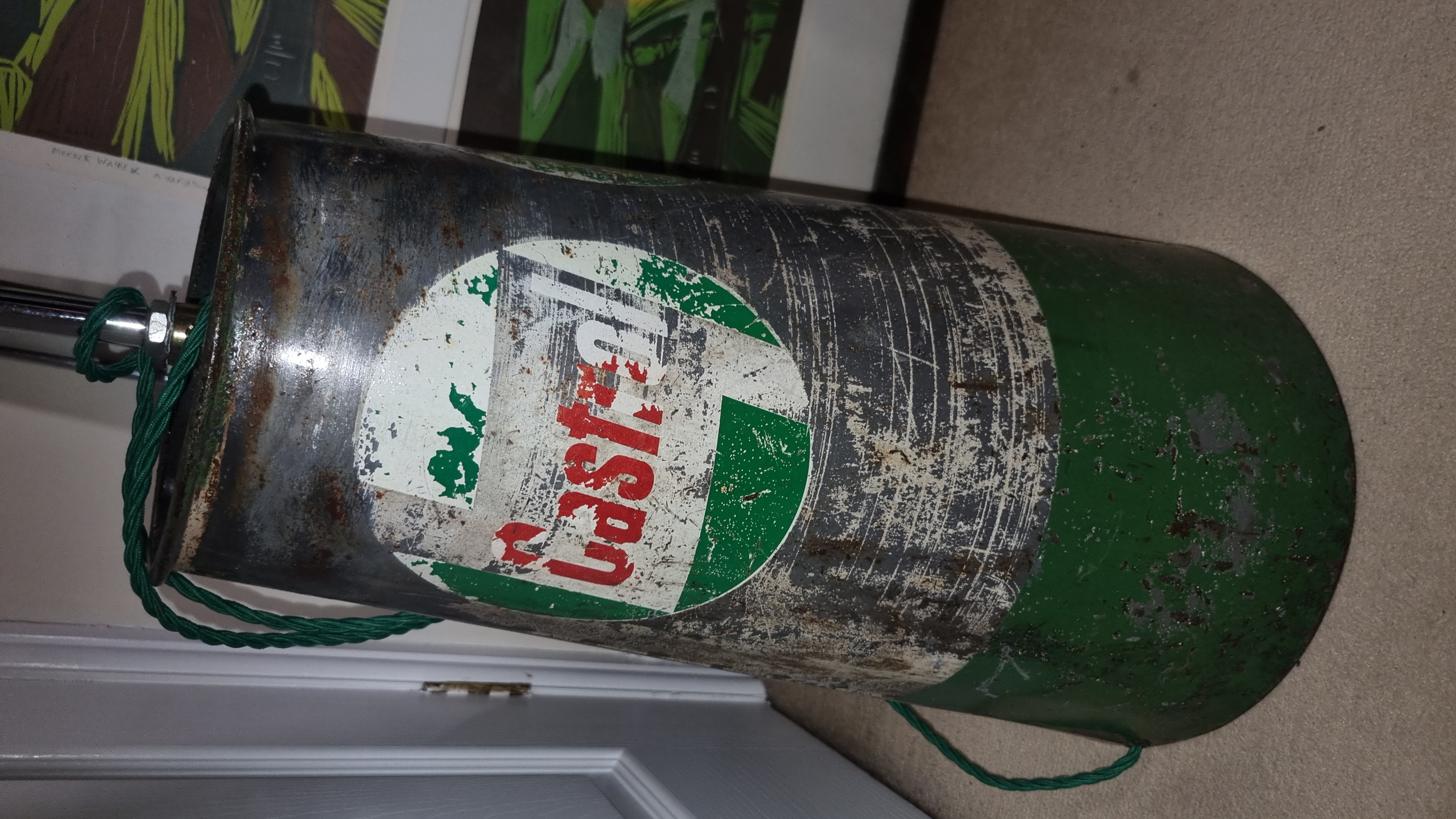 Please check the pictures its a large shaded repurposed oil stand with original graphics and condition be put back to original use if needed , Google the base