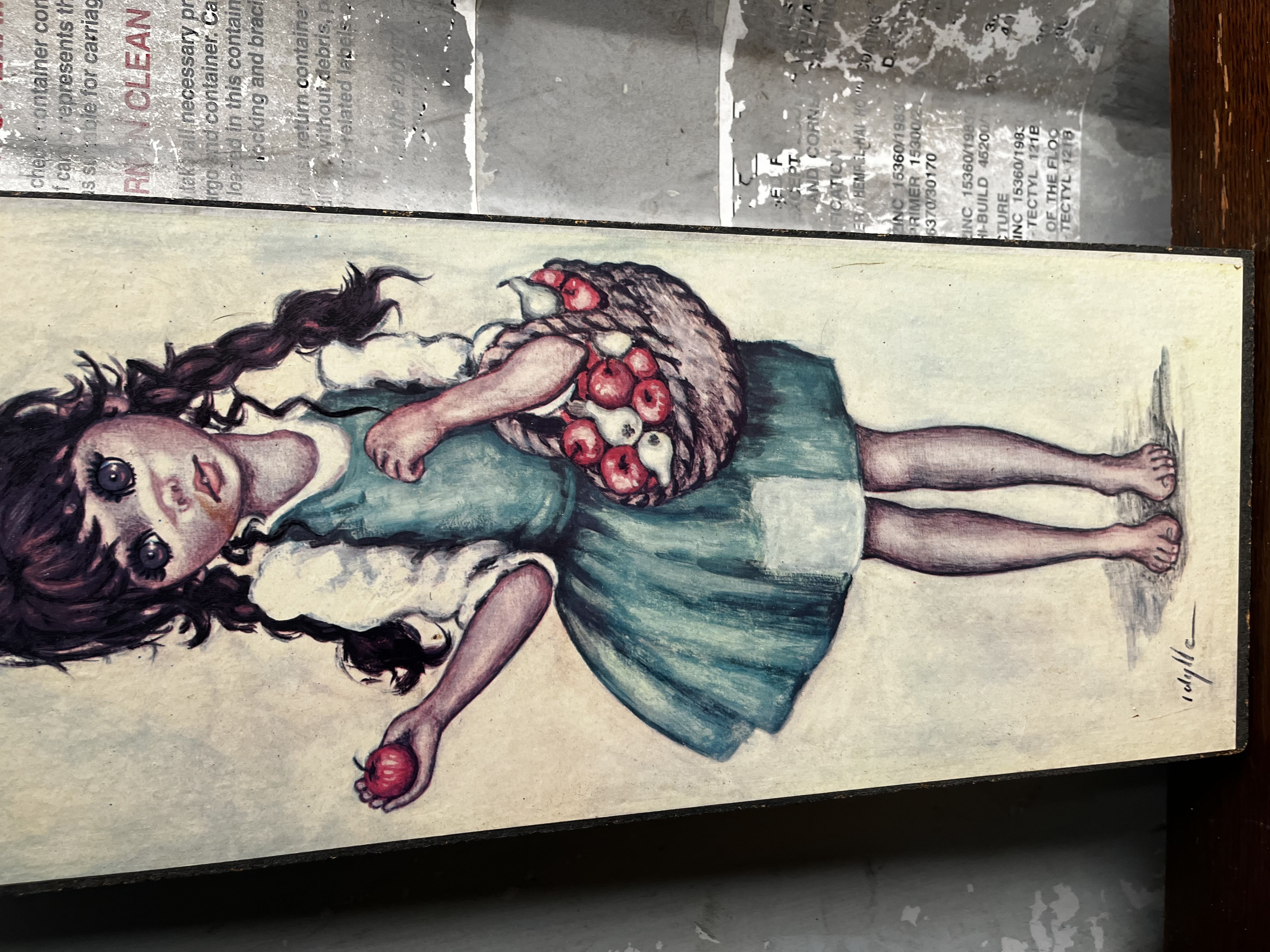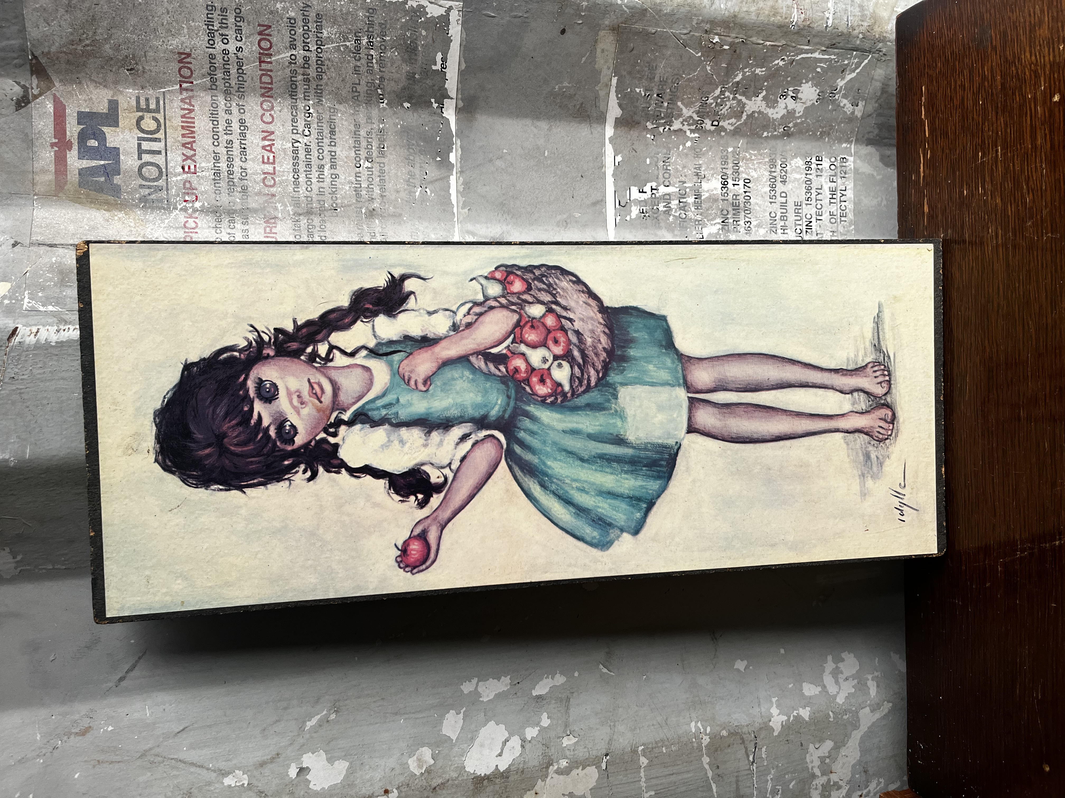 Lot 216: Mid Century Big Eyed Girl on corkboard