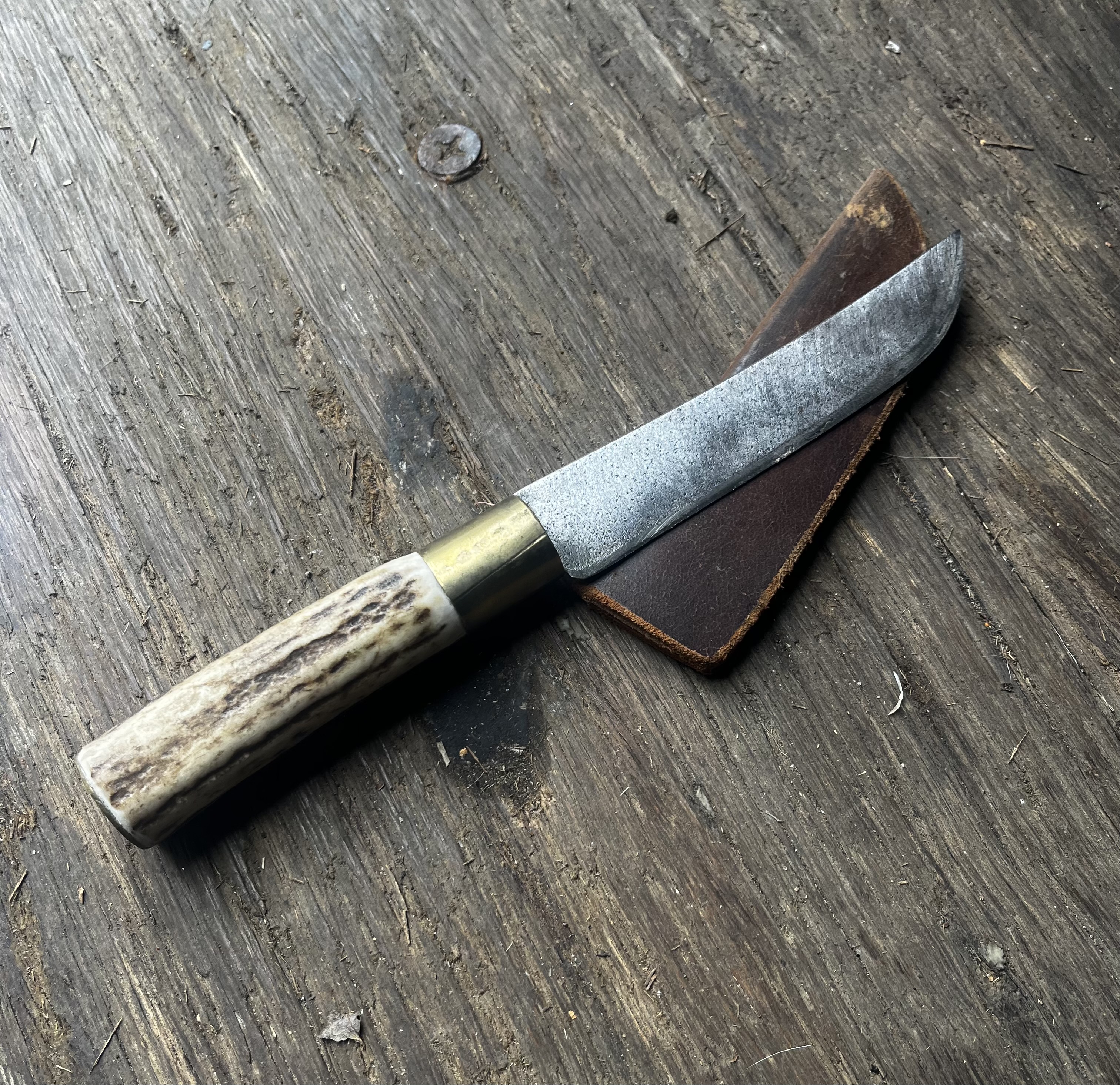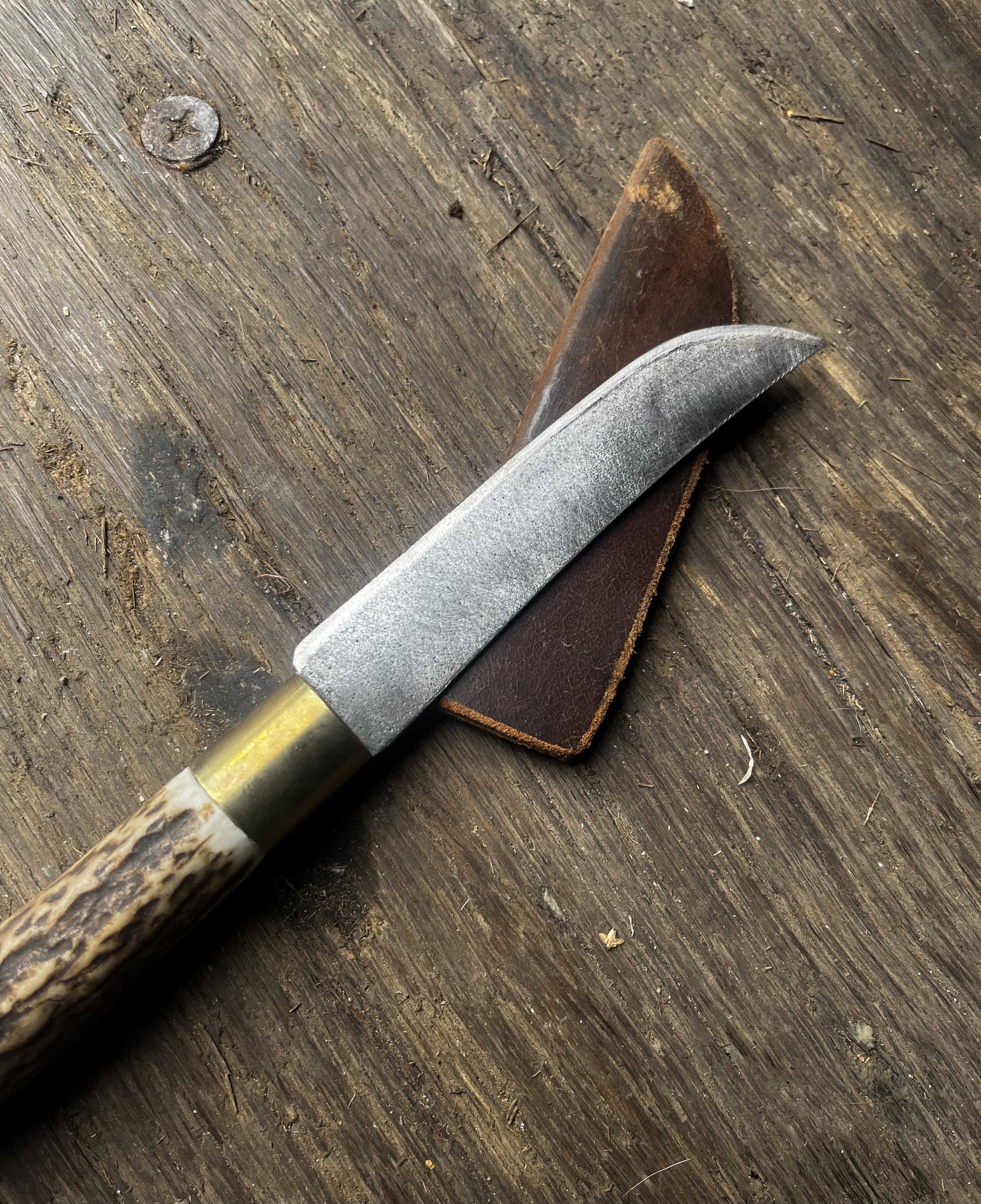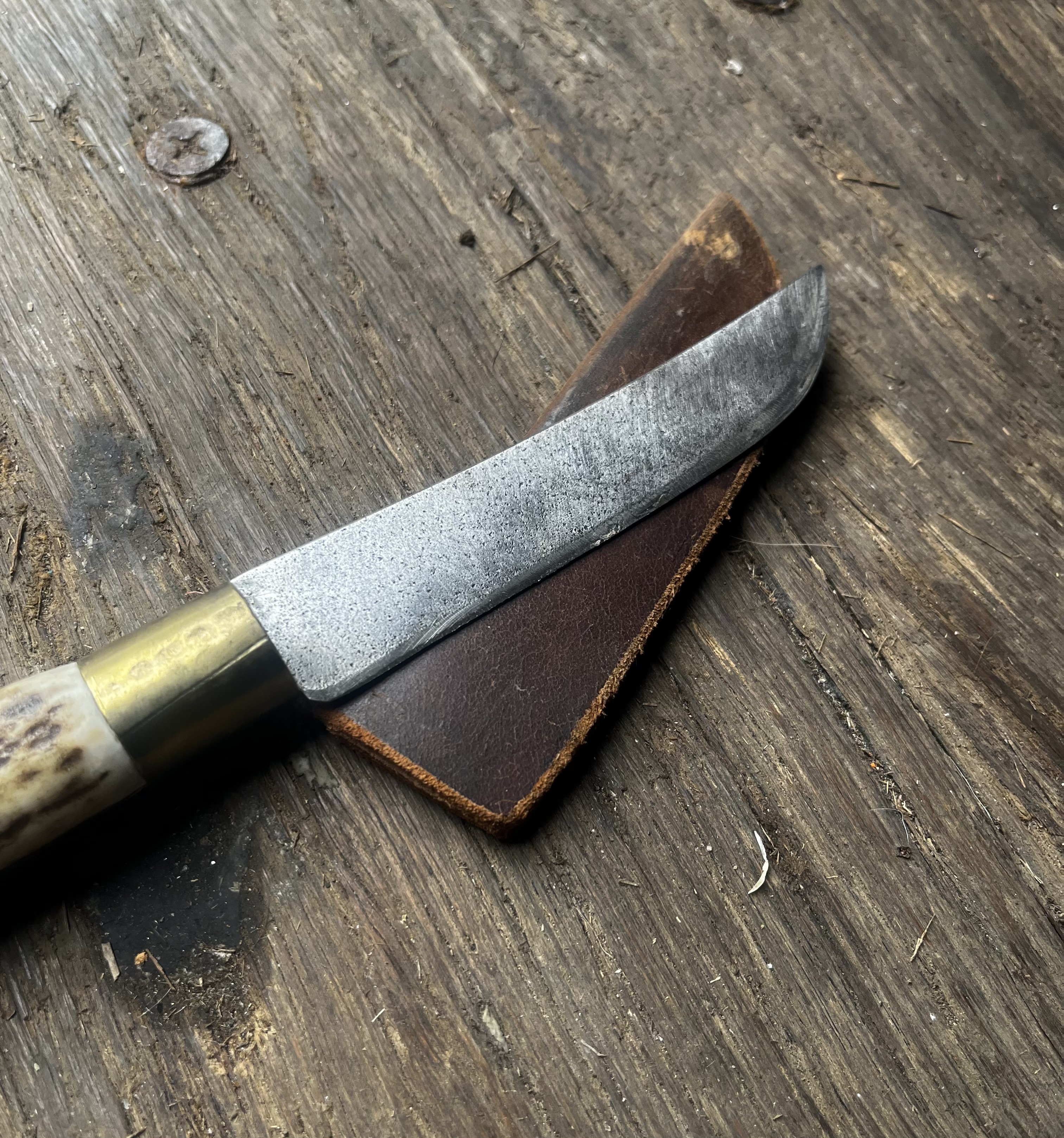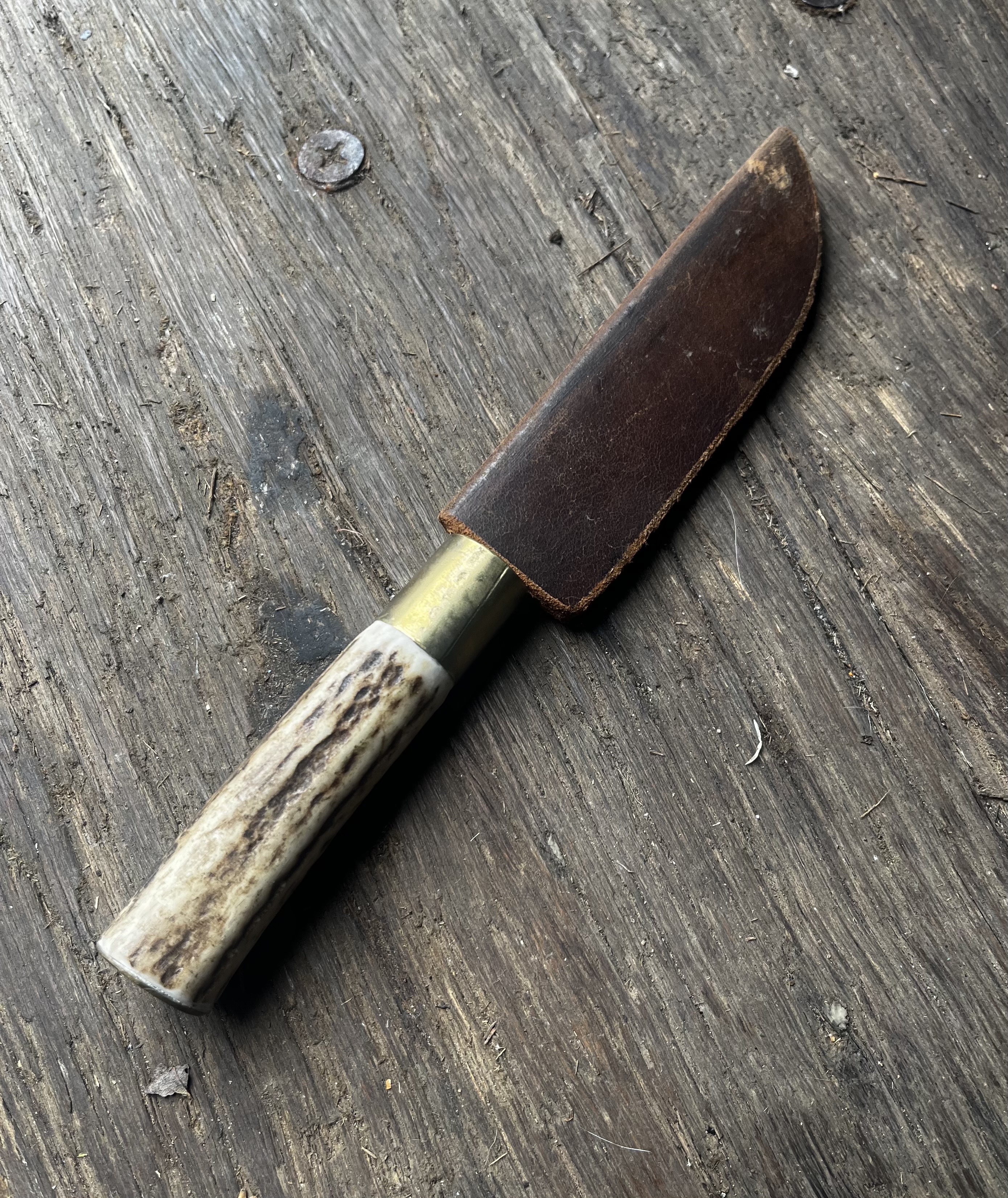 With bone handle in leather sheath