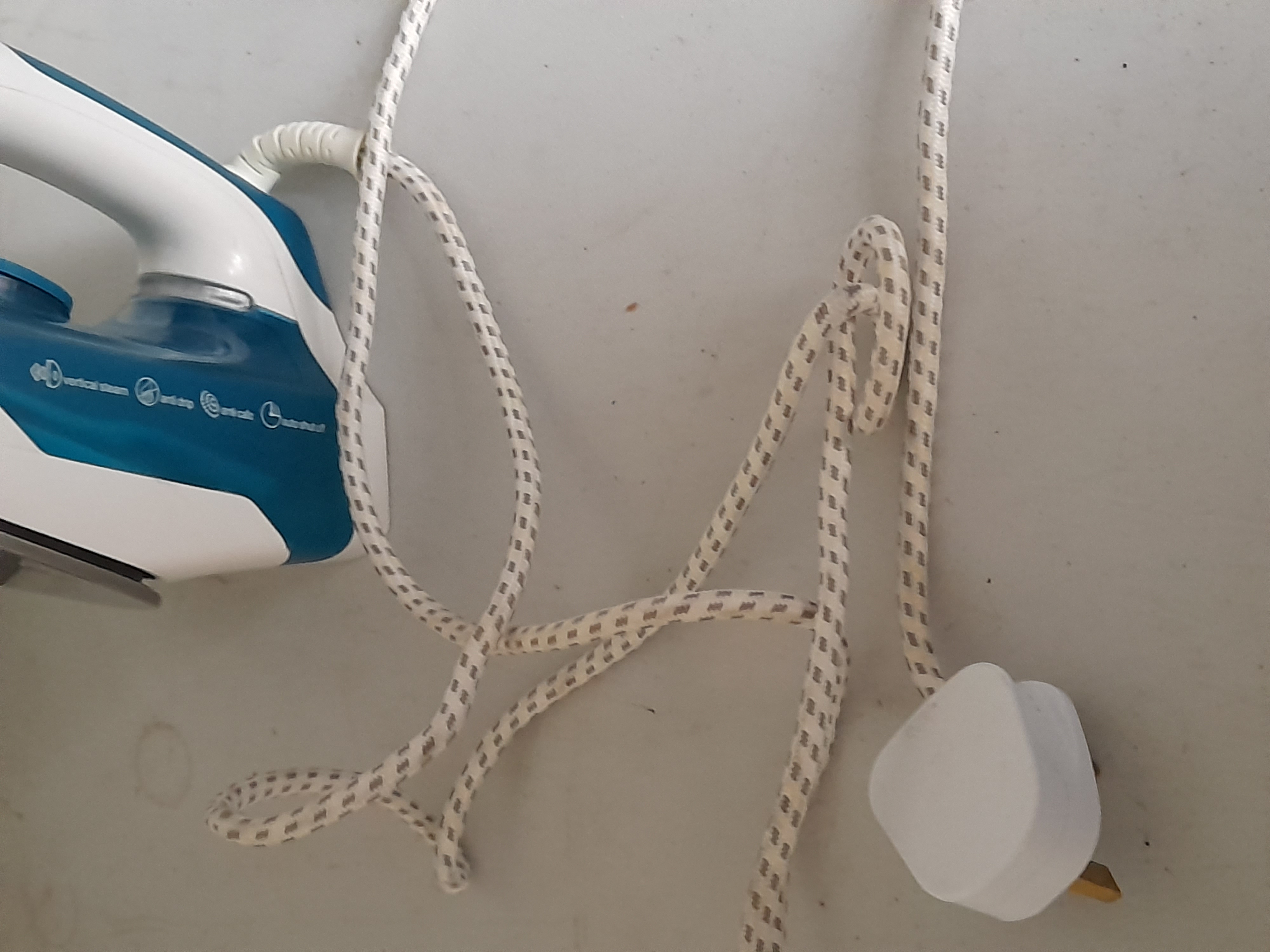 Lot 51: Blue and White Electric Steam Iron with Patterned Cord