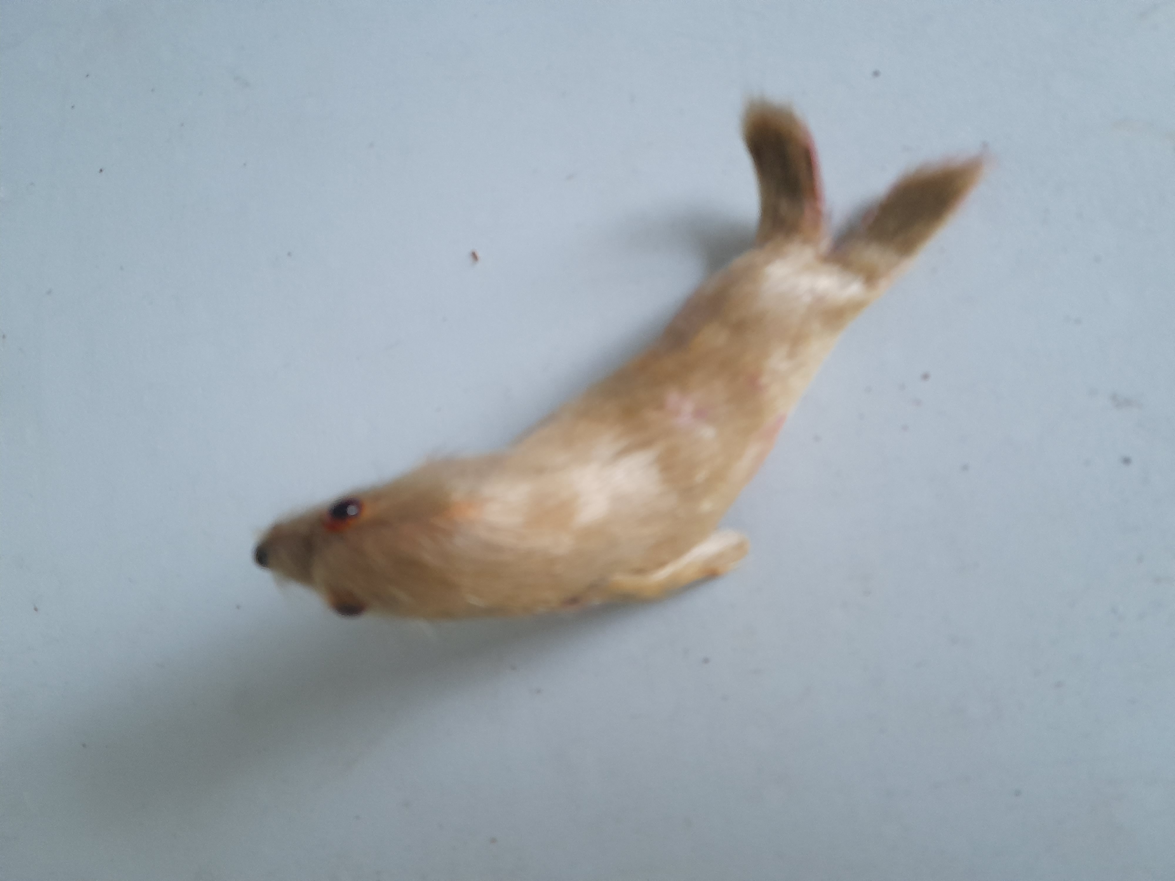 A single tan and brown fur covered figurine depicting a seal with small dark eyes and flippers.