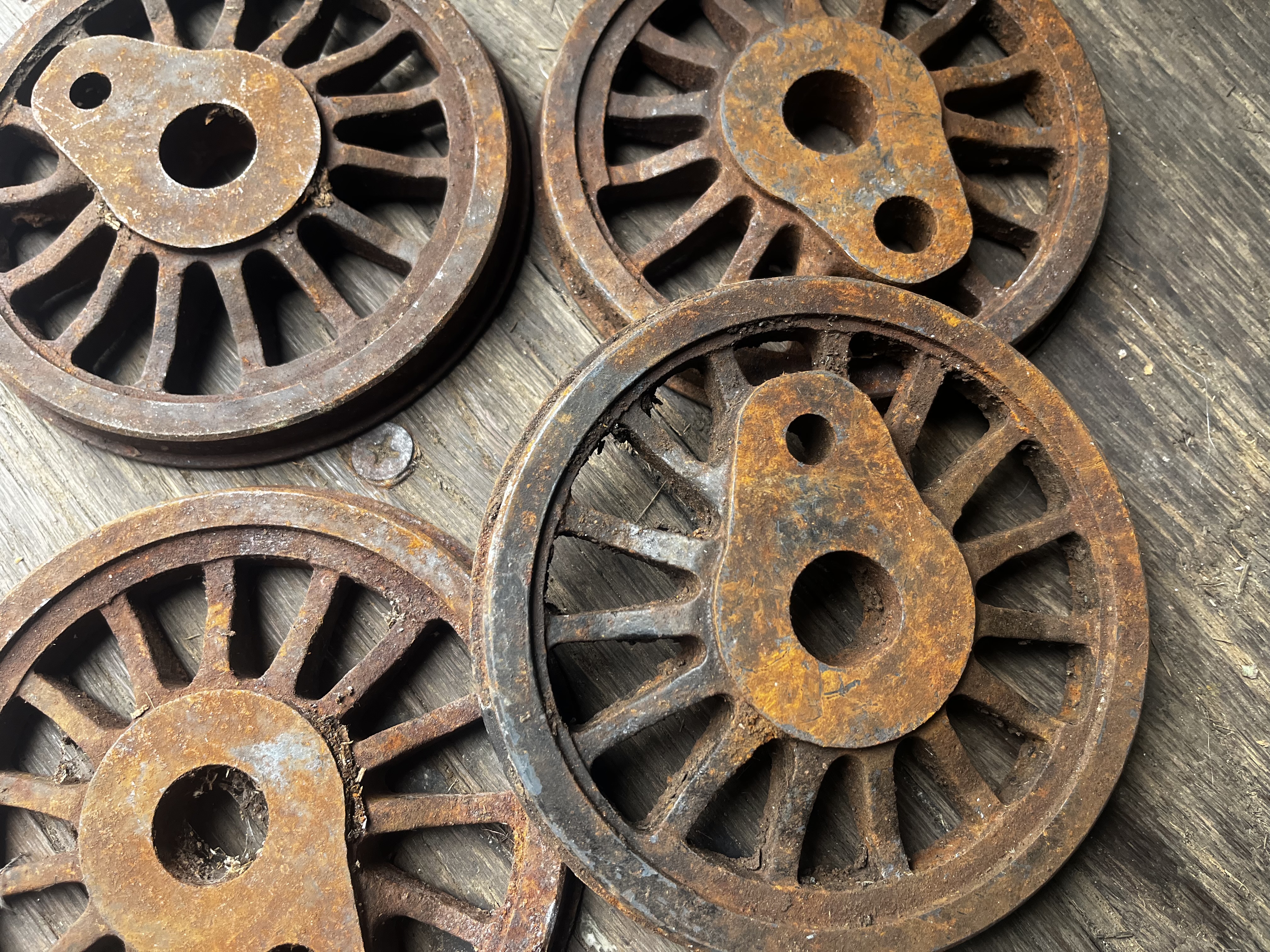 4 cast iron model train wheels
