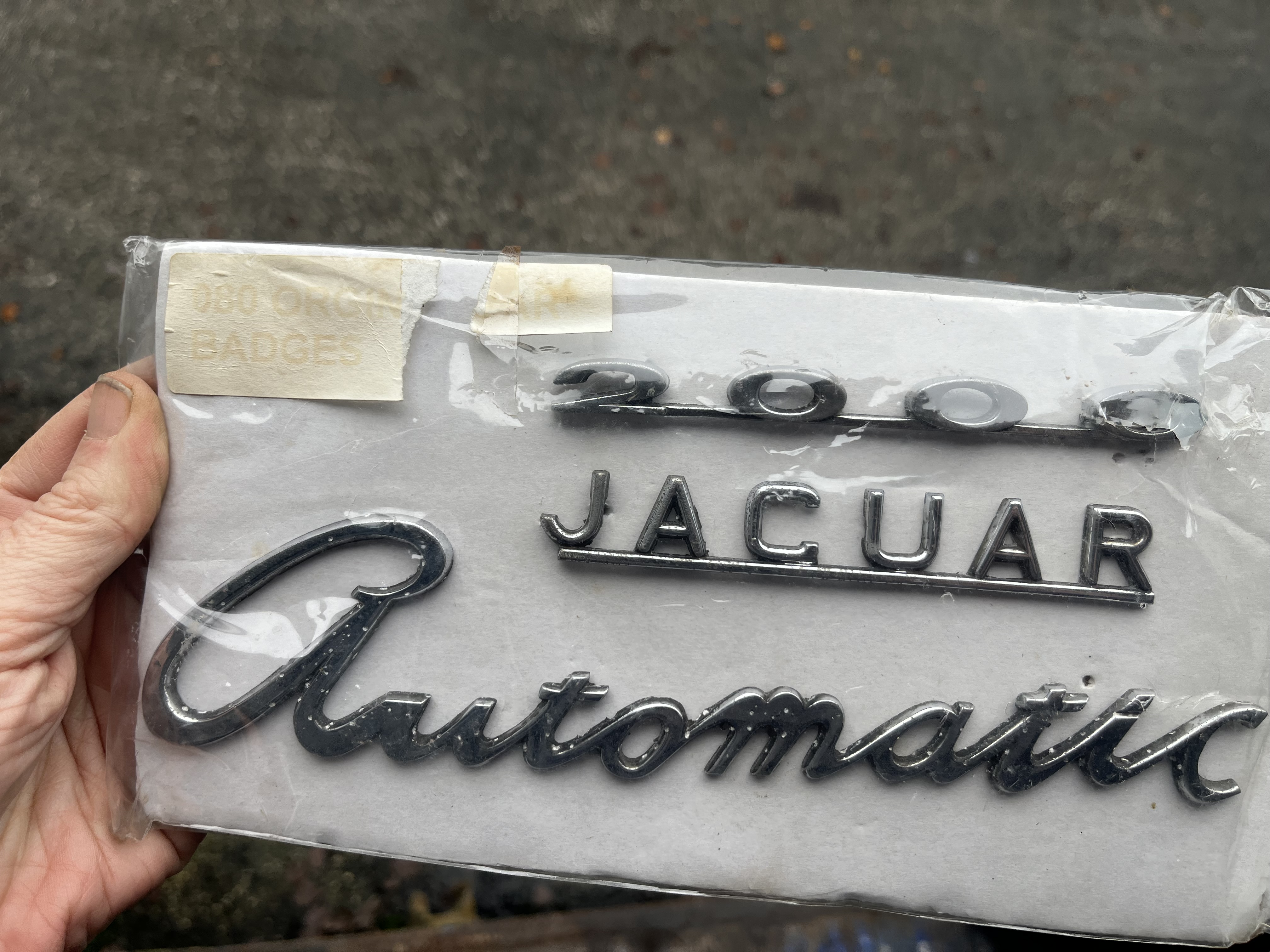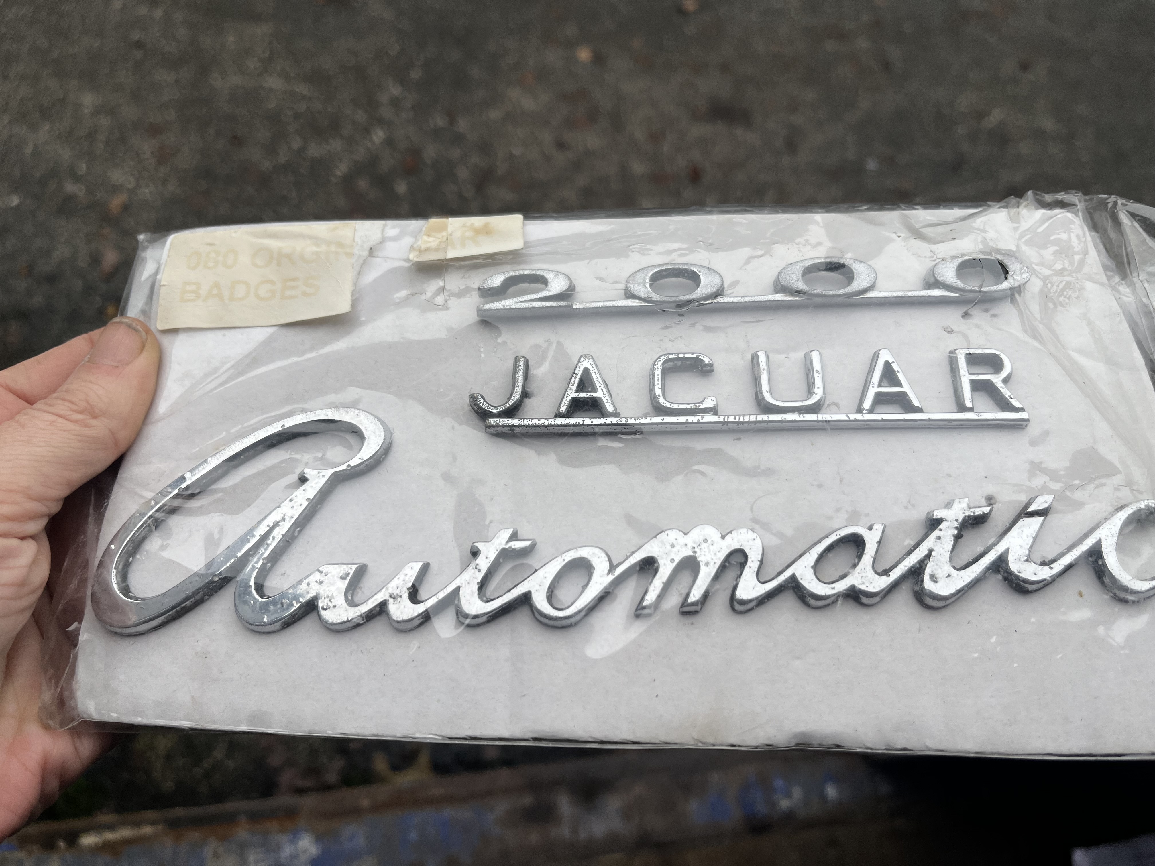 Jaguar car badges on card