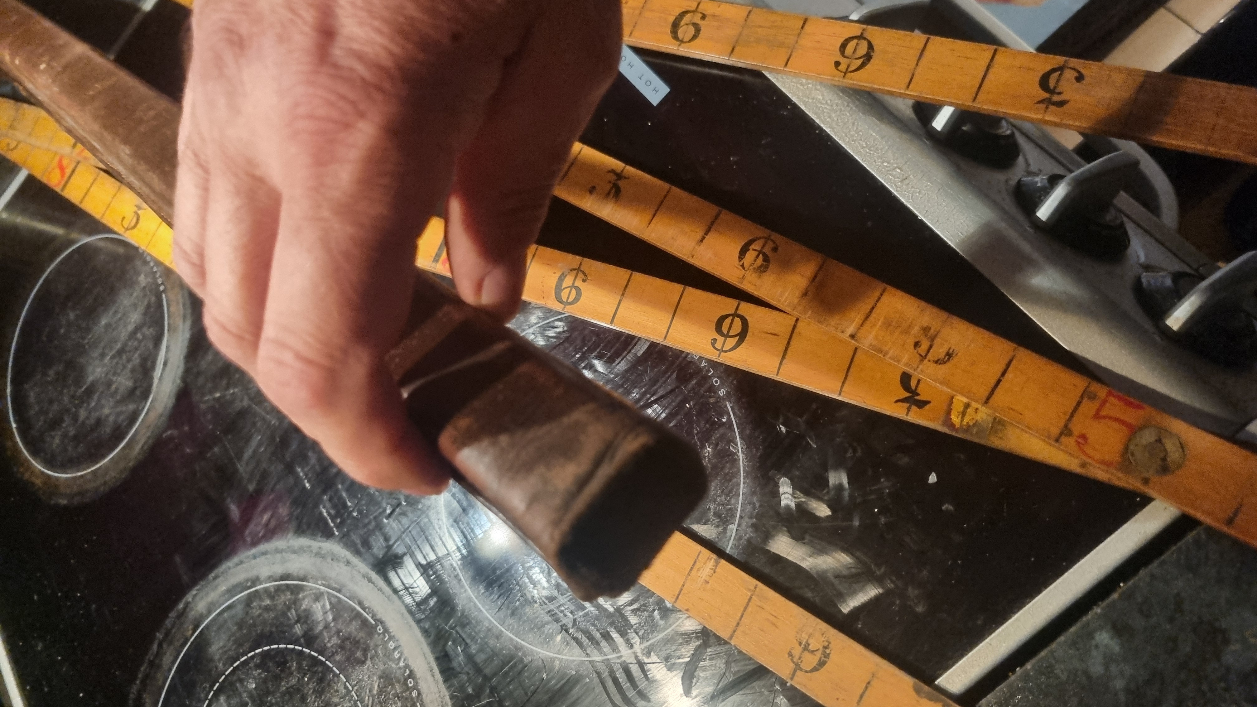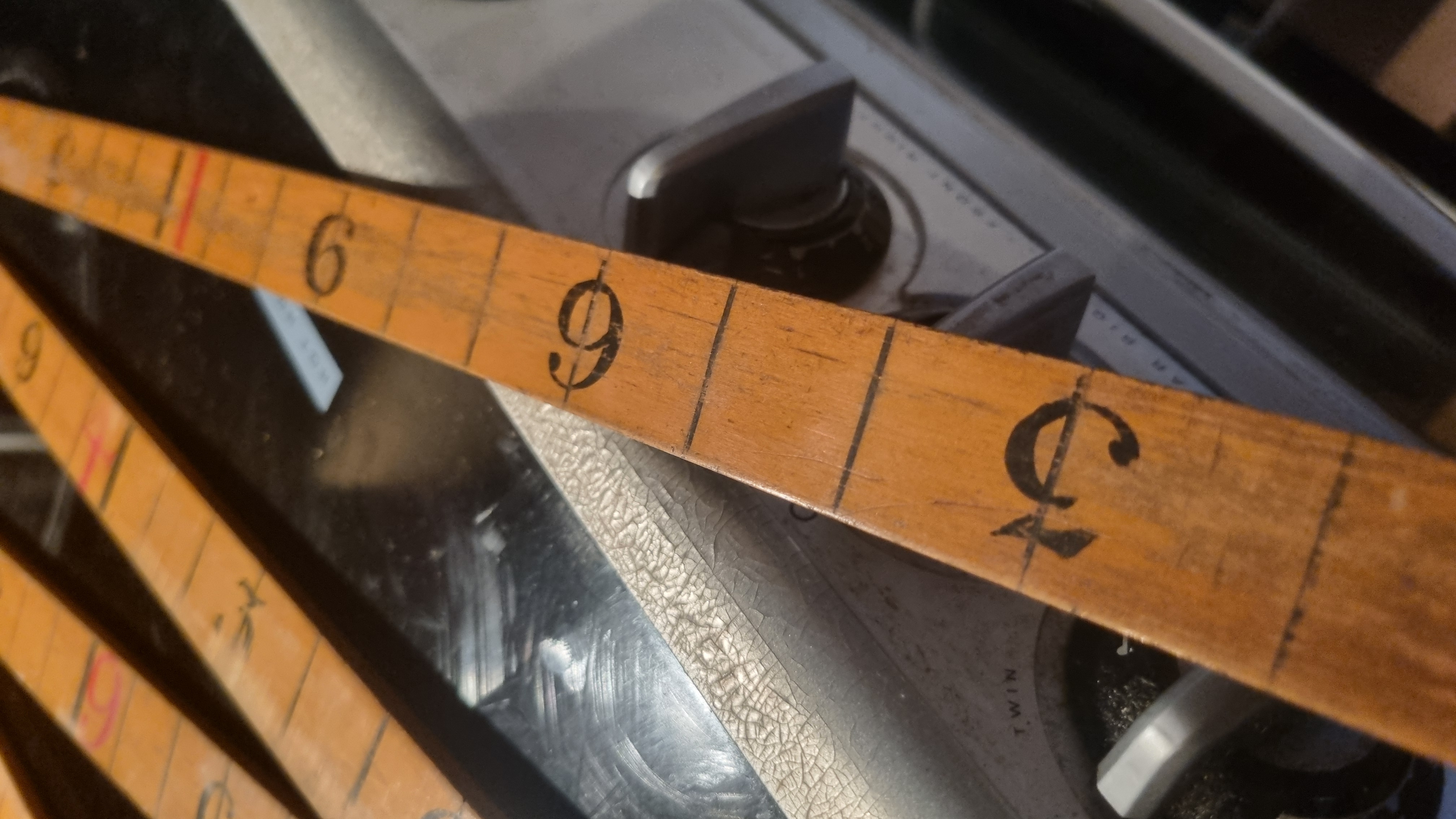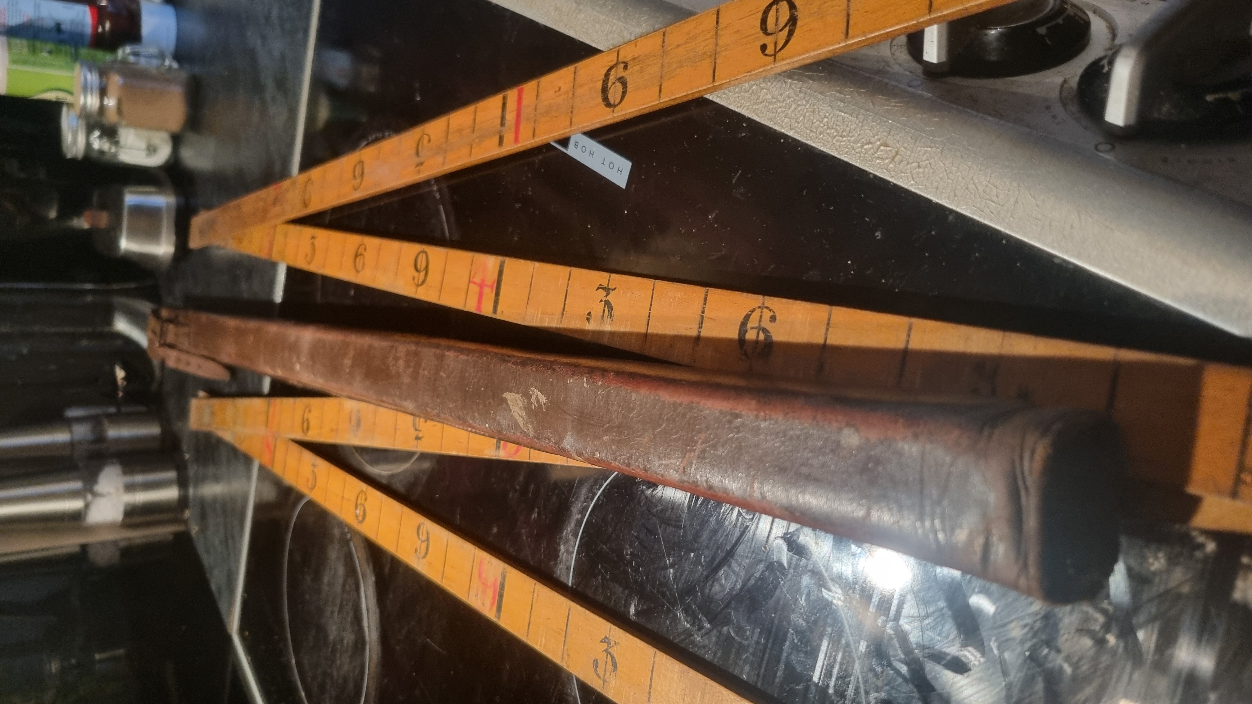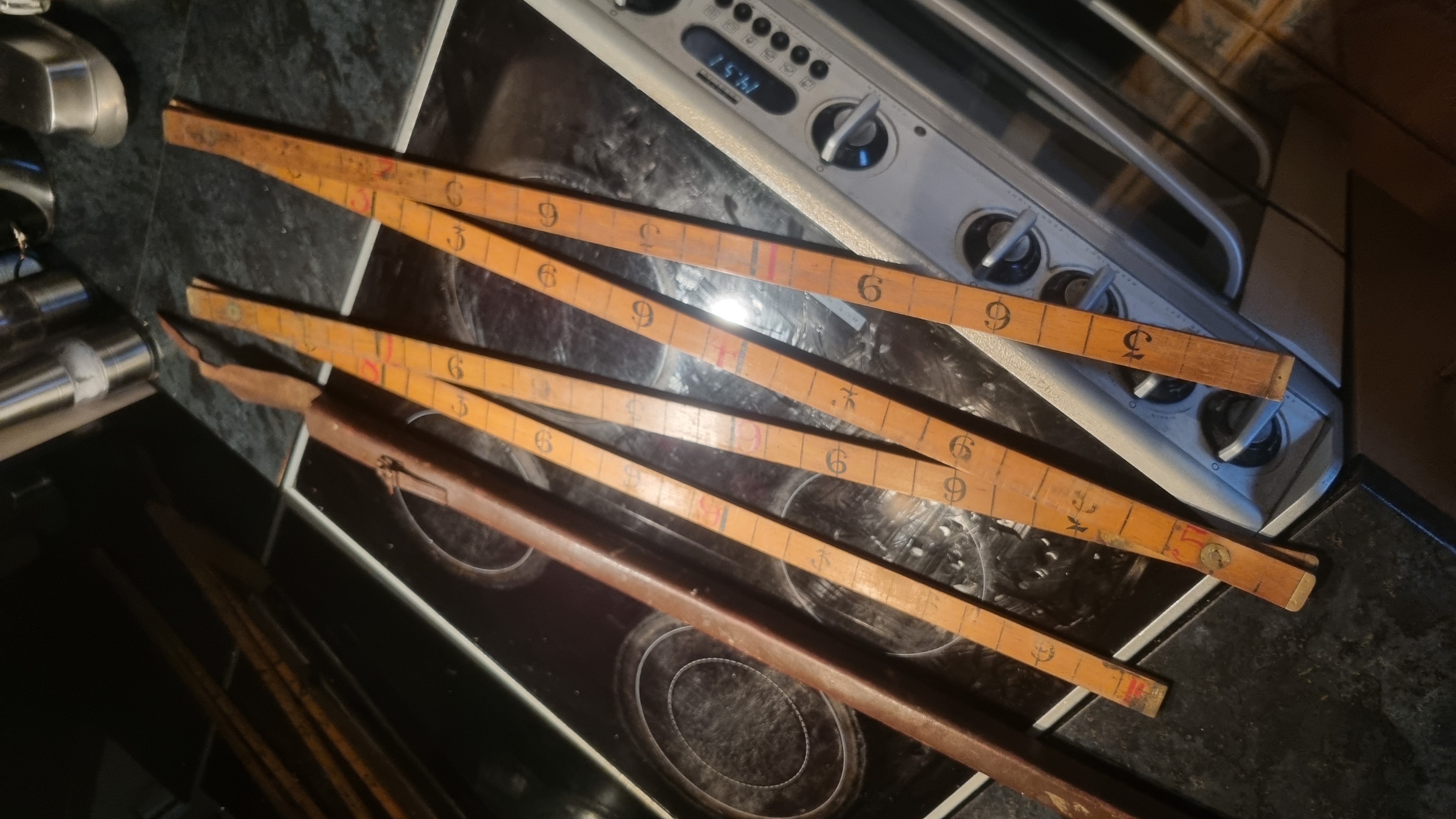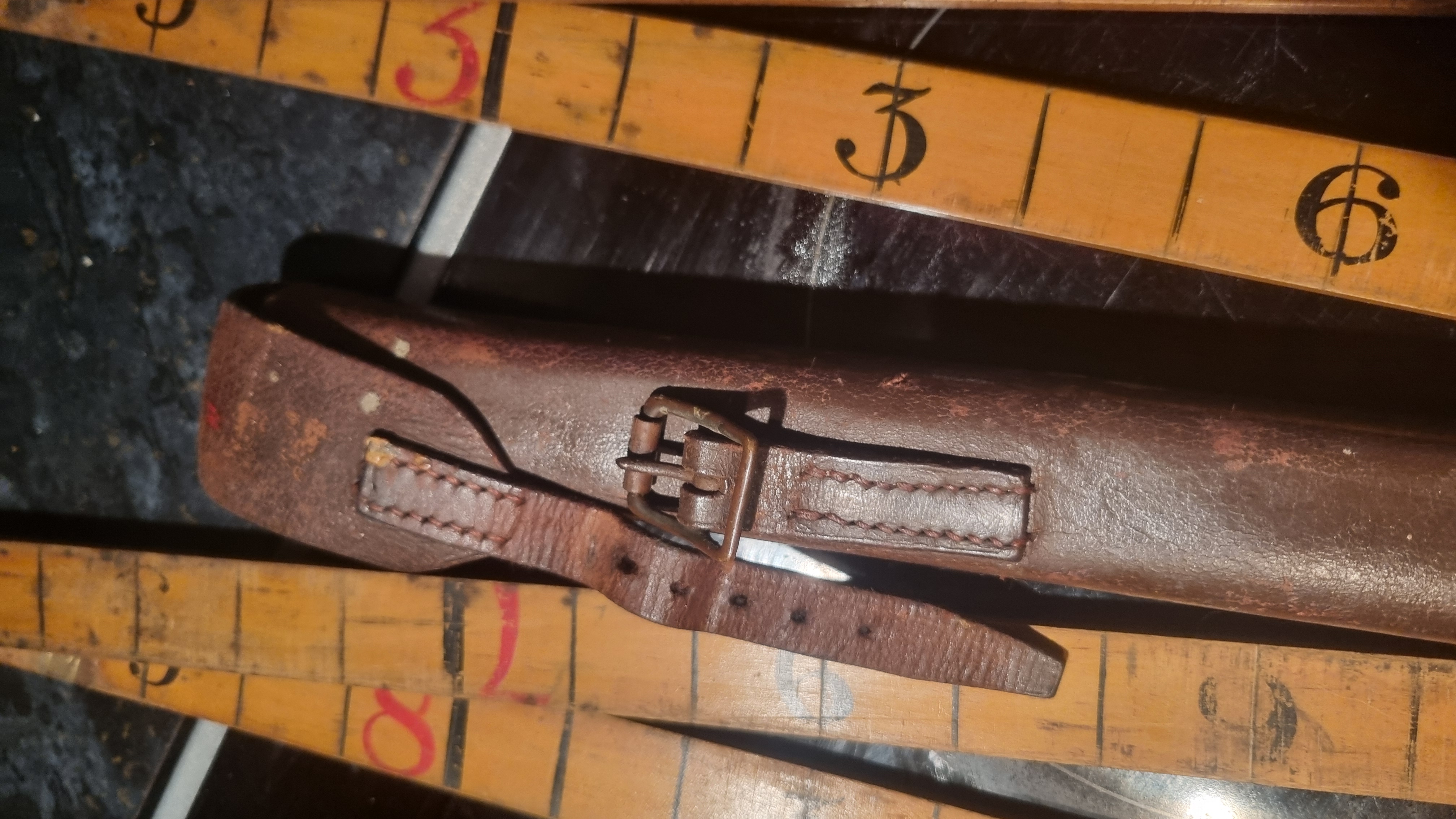 Vintage Leather Cased 10ft Wood and Brass Ruler Made In Engla
