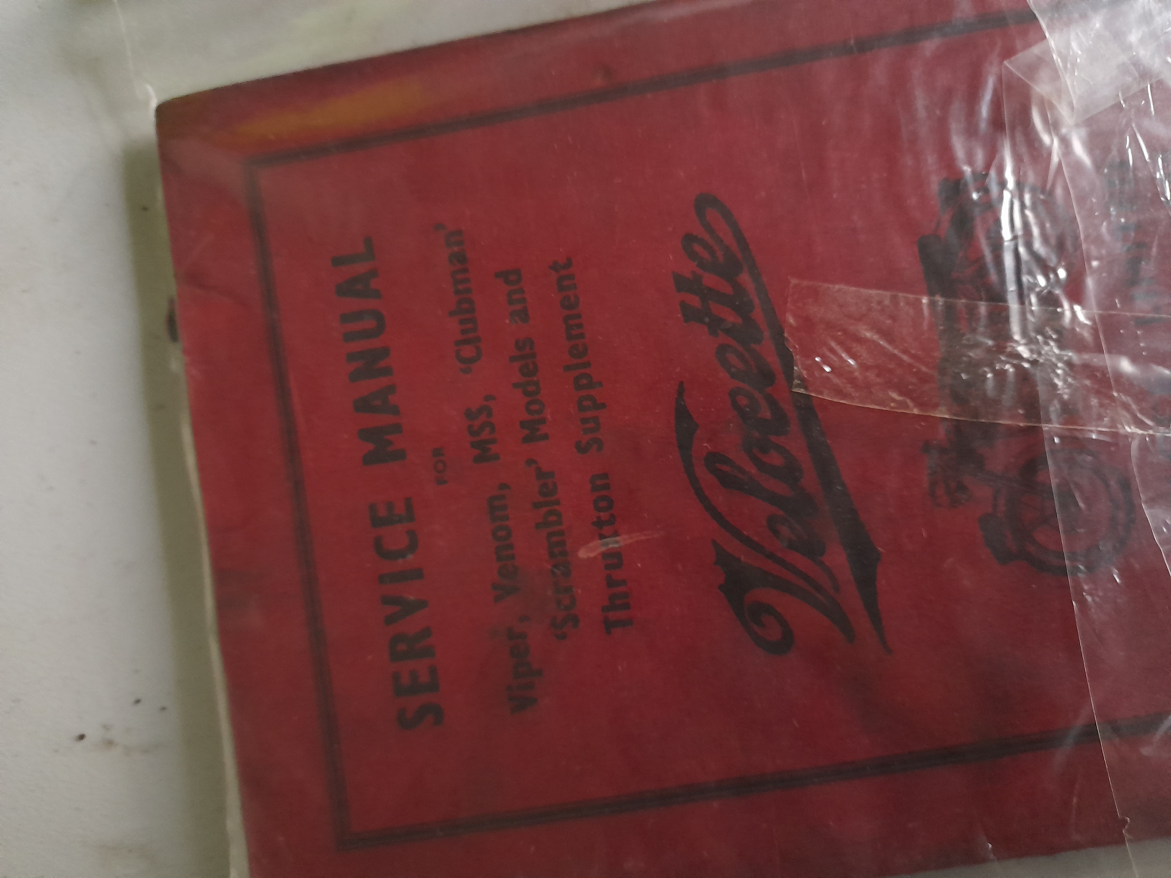 This is an original vintage service manual for Velocette motorcycles, produced by Veloce Ltd. of Birmingham, England. The manual features the distinctive red cardstock cover with black printing and the cursive Velocette logo. This technical guide covers several of the firm’s most notable single-cylinder models, including the Viper, Venom, MSS, Clubman, and Scrambler. Crucially, it includes the Thruxton Supplement, which dates this edition to the mid-to-late 1960s following the 1965 launch of the high-performance Thruxton model. The item appears to be an authentic period publication rather than a modern reproduction. Dimensions: Approximately 210mm x 140mm.