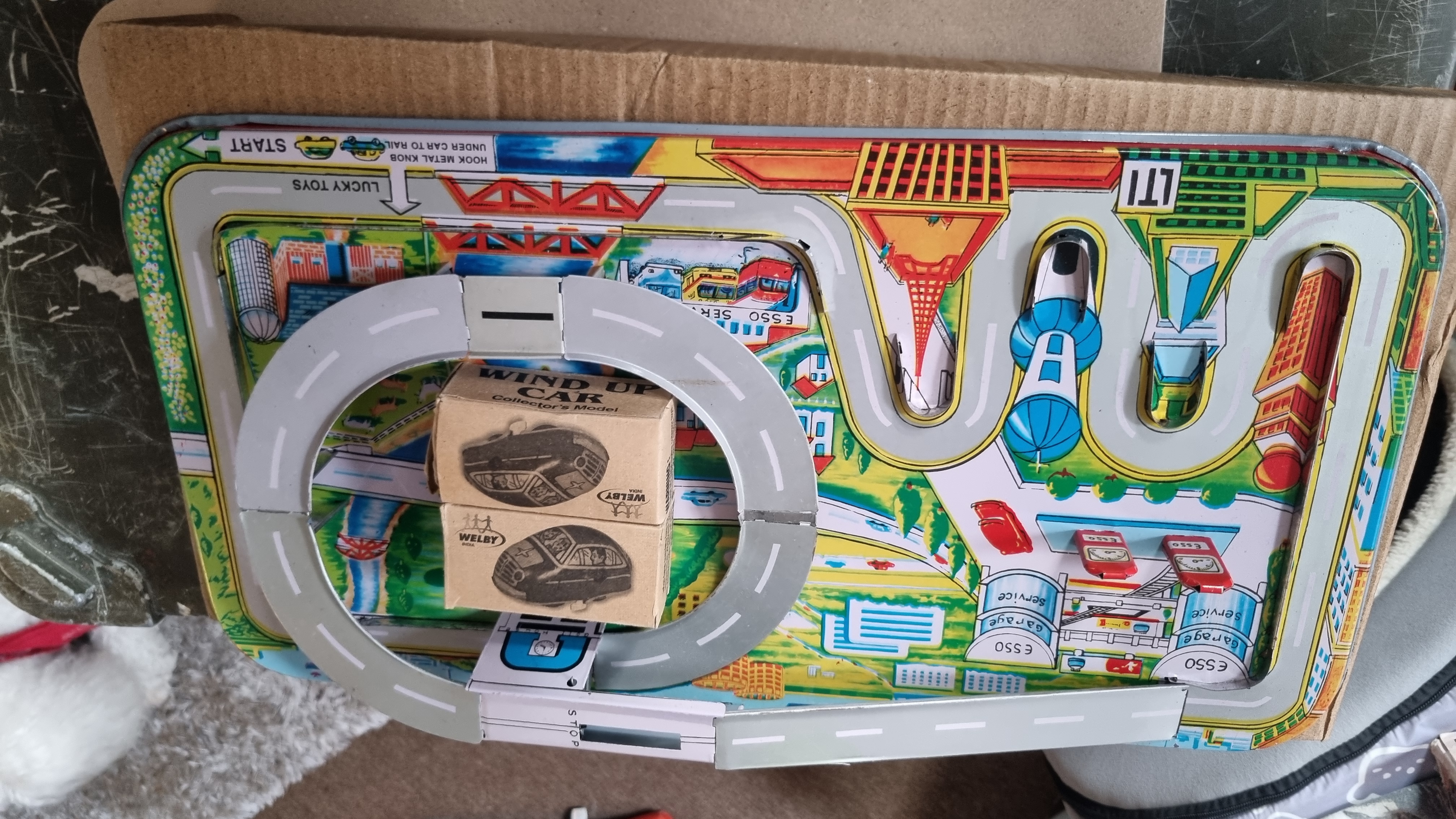 Welby clockwork car set and track fully working condition