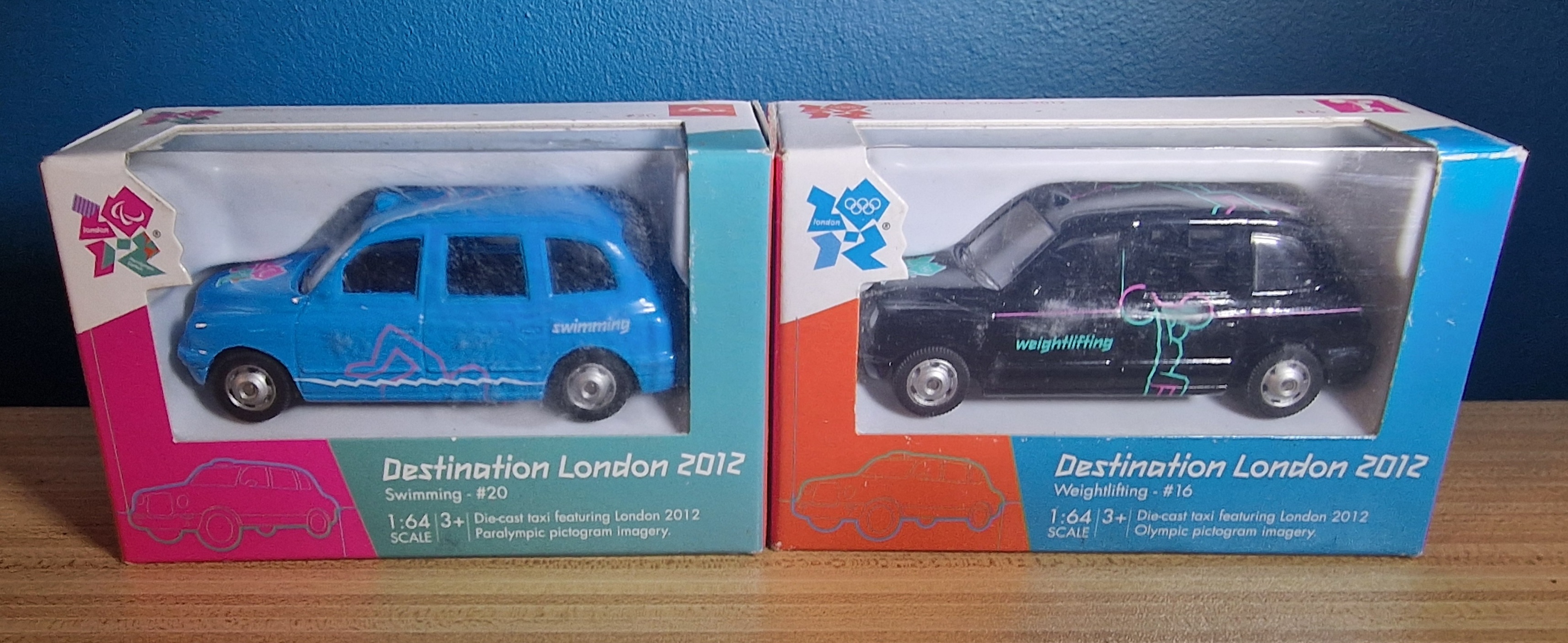A collectible Corgi “Destination London 2012” die-cast taxi model, released in celebration of the London 2012 Olympic Games. This is model #16 in the series, representing the sport of Weightlifting.