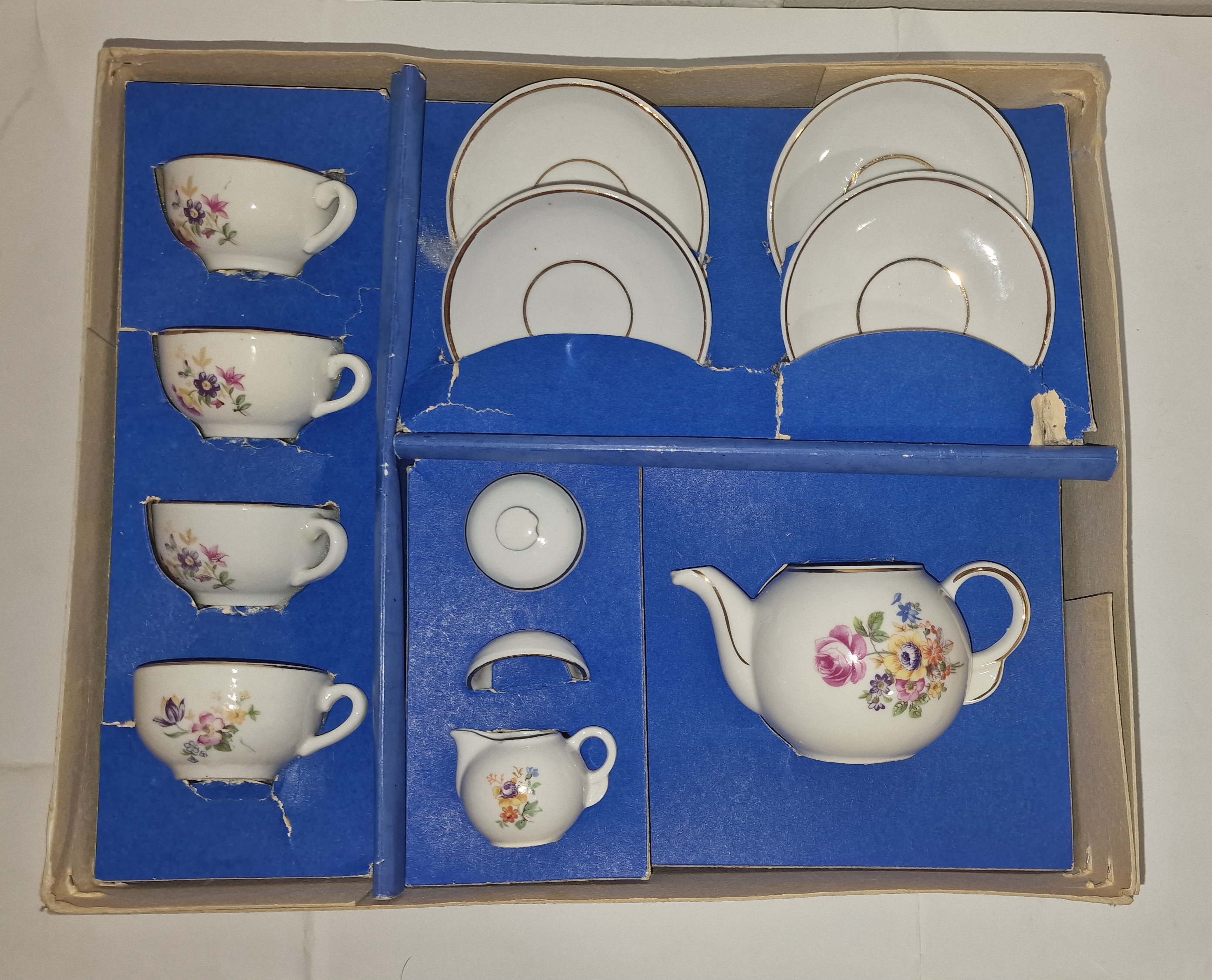 A charming Codeg vintage children’s china tea set, complete and presented in its original box. Codeg was a well-known British toy manufacturer active from the 1940s through the 1970s, specialising in finely crafted miniature ceramics and toy sets that captured the imagination of generations.