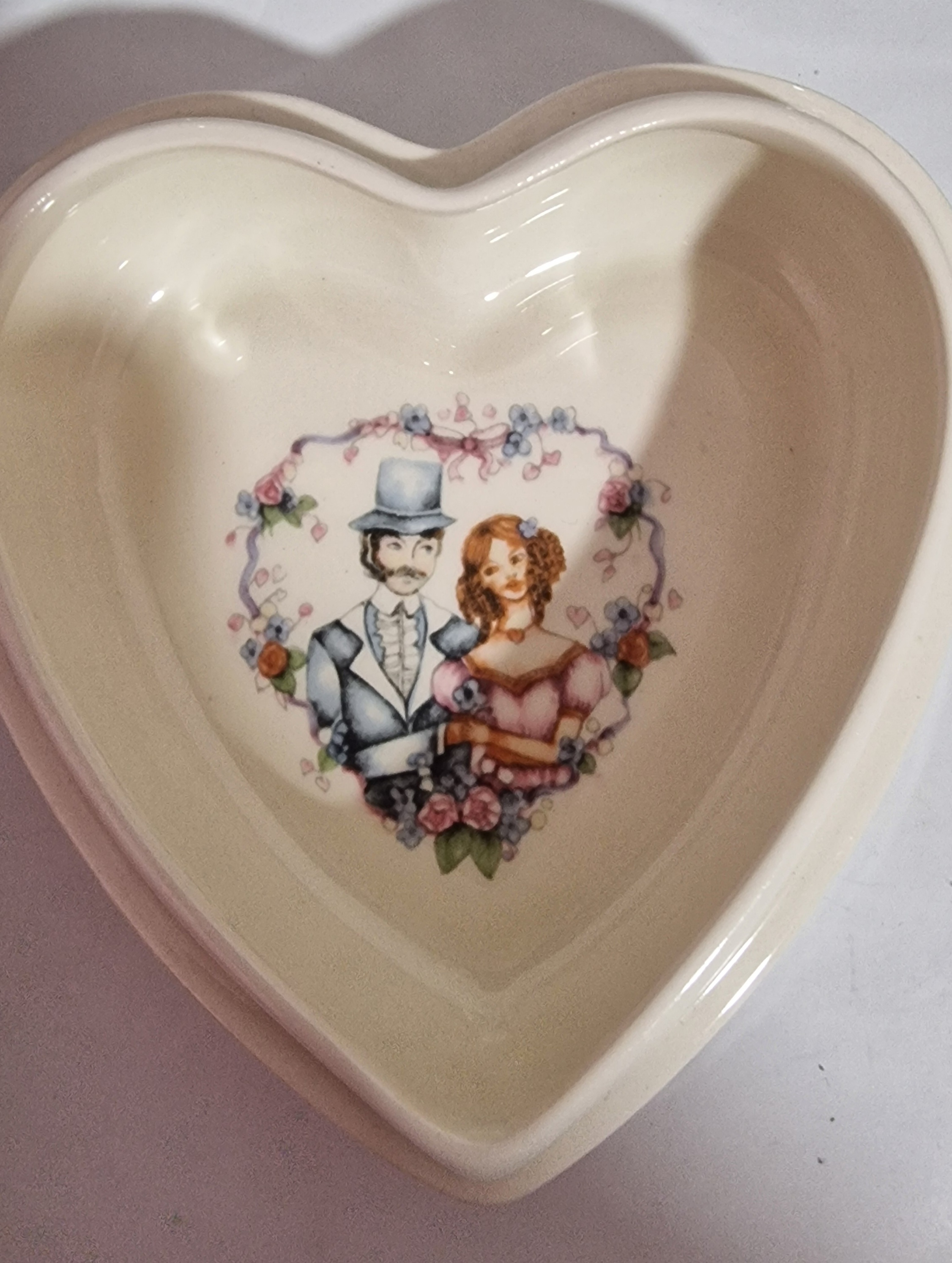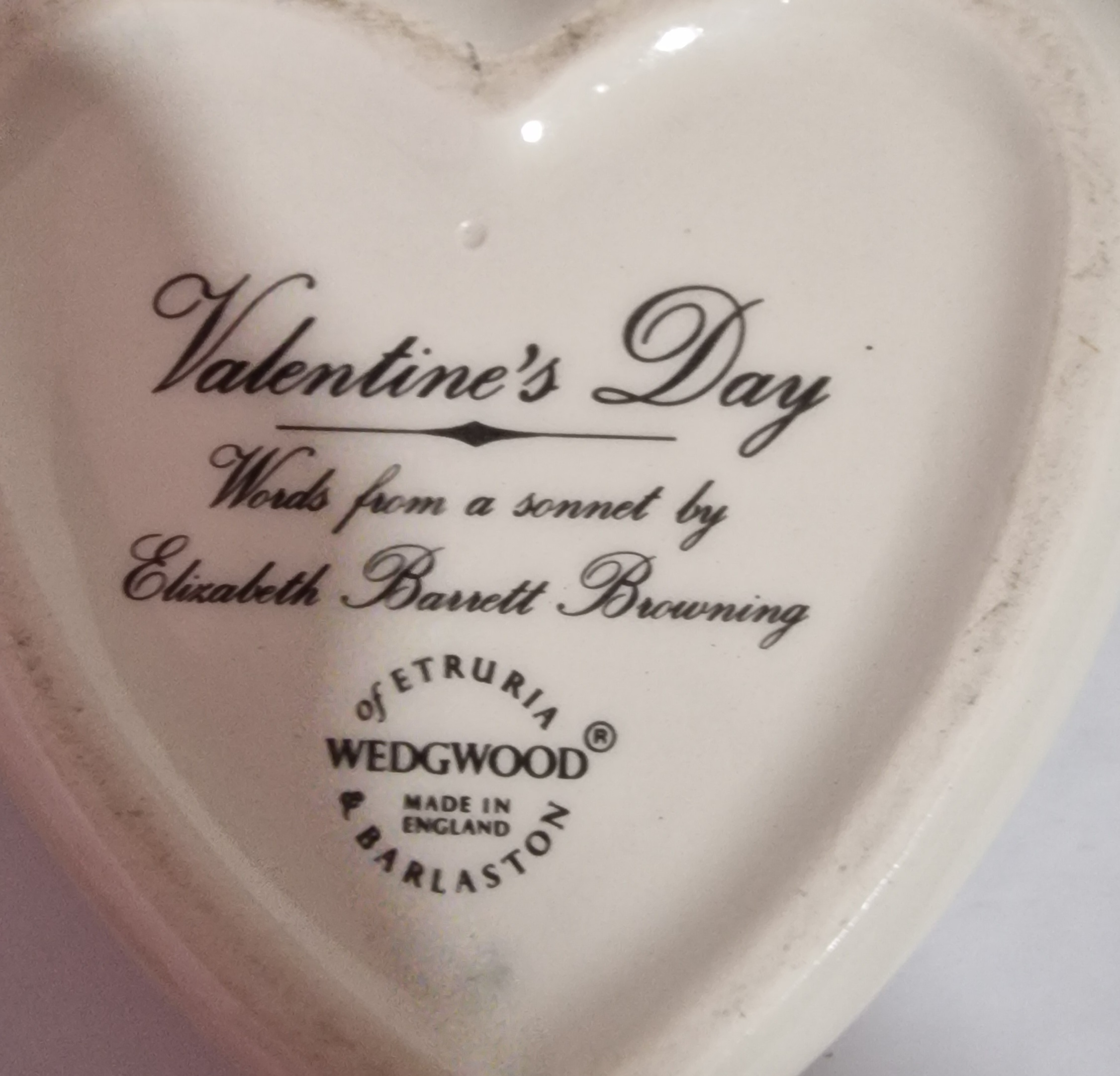 The highlight is a delicate Wedgwood heart-shaped trinket box, adorned with a fine floral pattern and a sentimental inscription on the lid, characteristic of Wedgwood’s classic craftsmanship and timeless appeal.