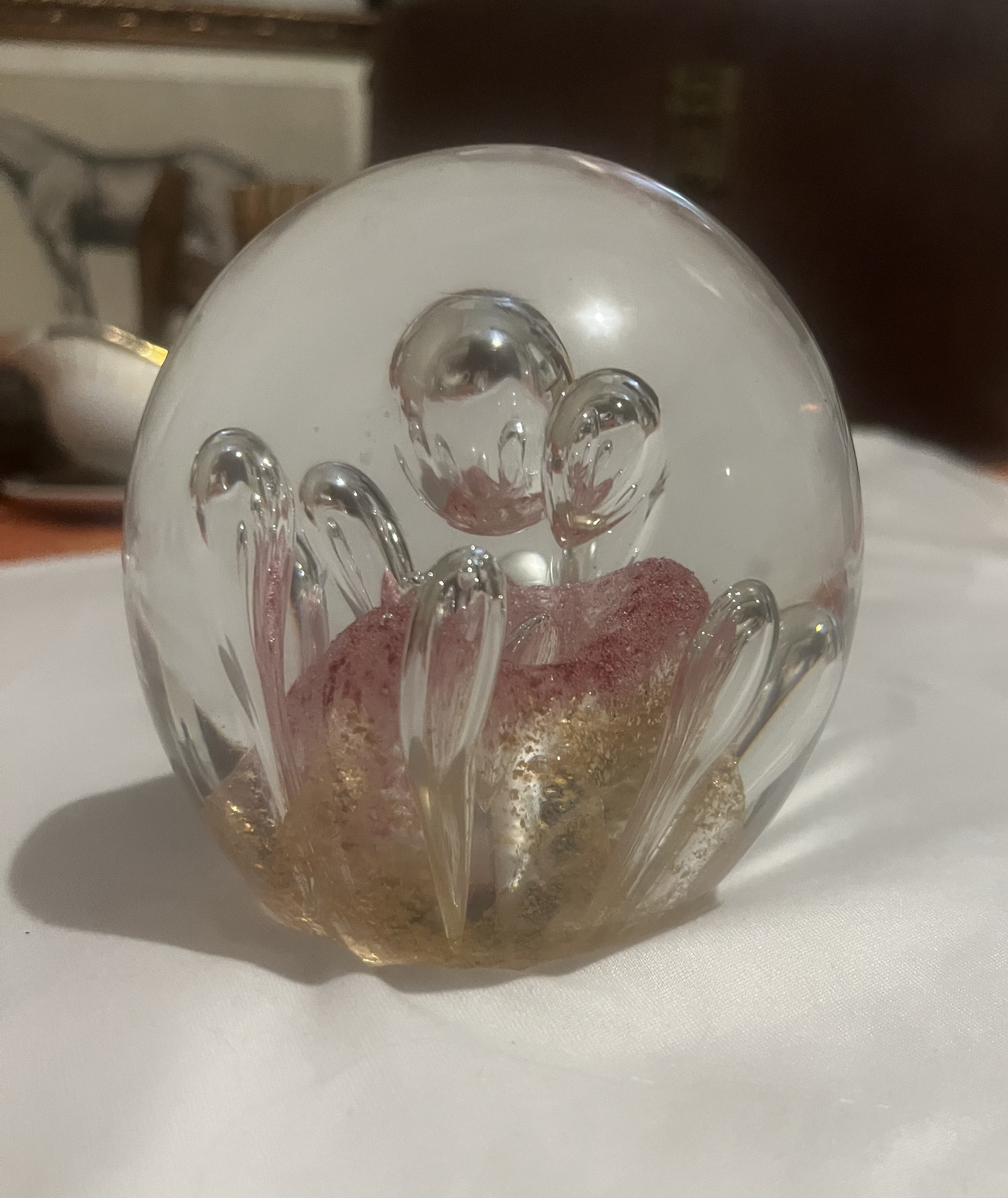 An eye-catching piece for collectors of studio or art glass, or a distinctive decorative accent for desk, shelf, or display cabinet.