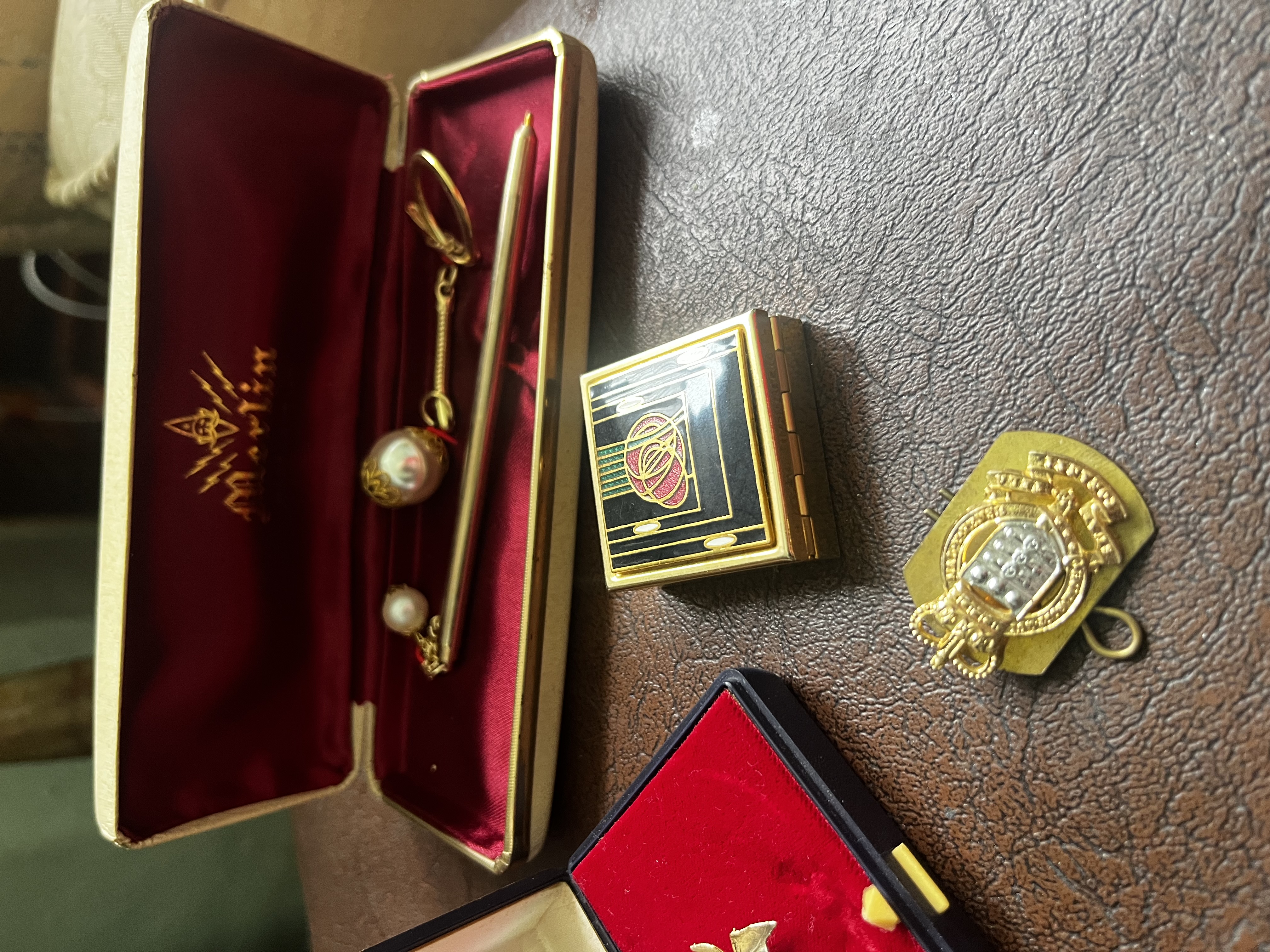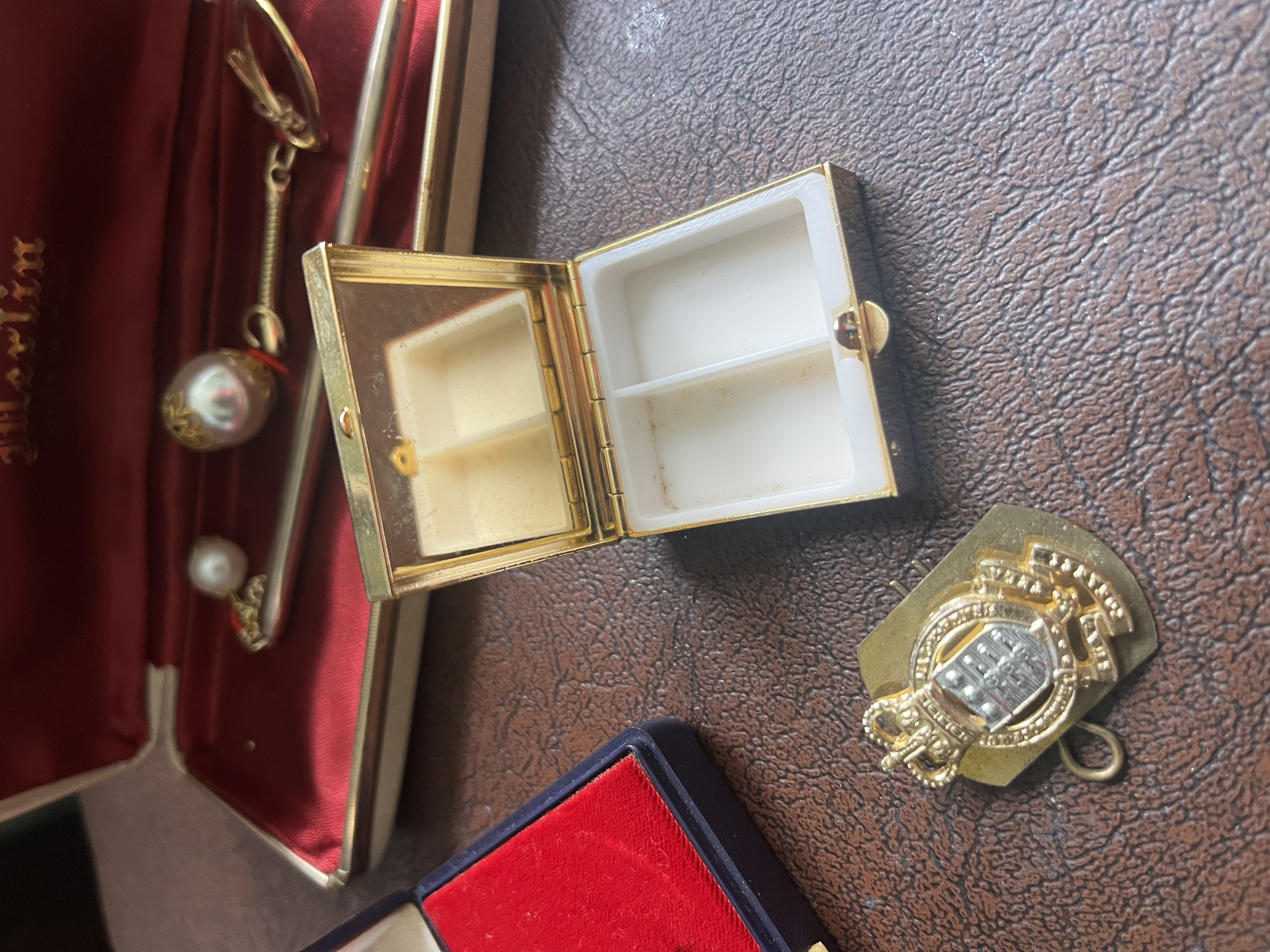 A varied and decorative group of four vintage items spanning jewellery, military history, and classic giftware — ideal for collectors or as a curated mixed lot for resale or display.