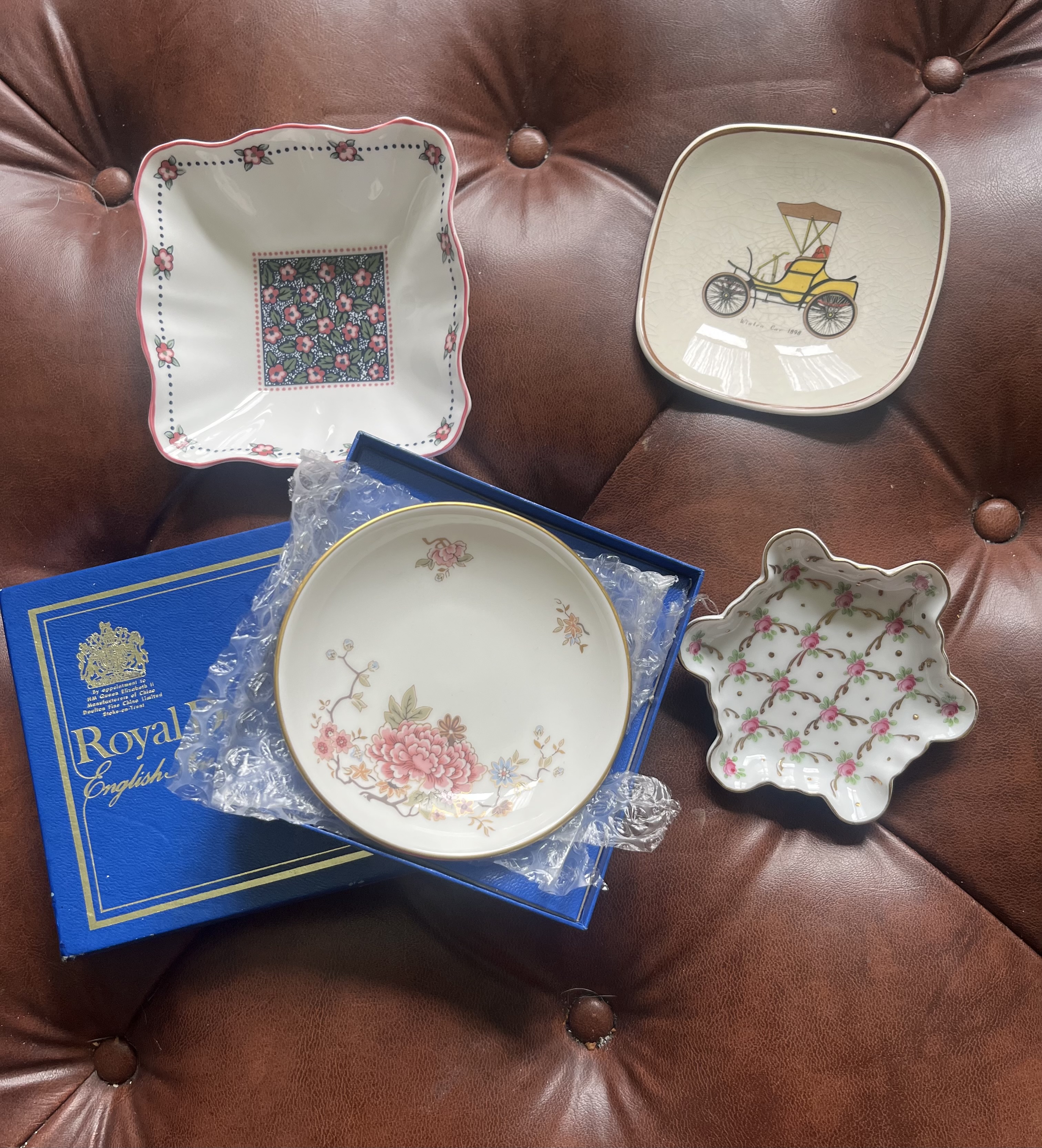 • Royal Albert “Serena” dish – square, featuring a 1904 electric car illustration