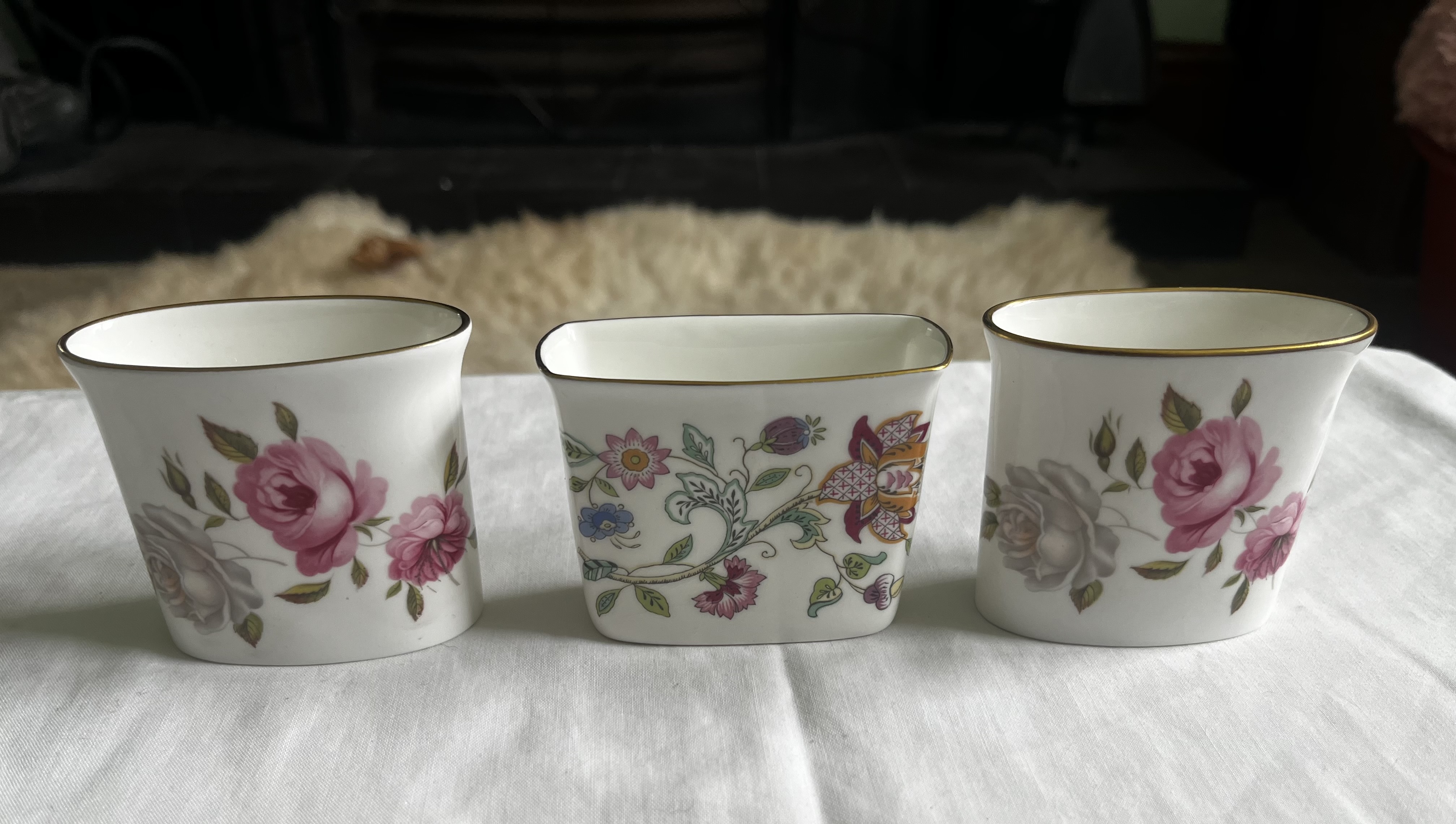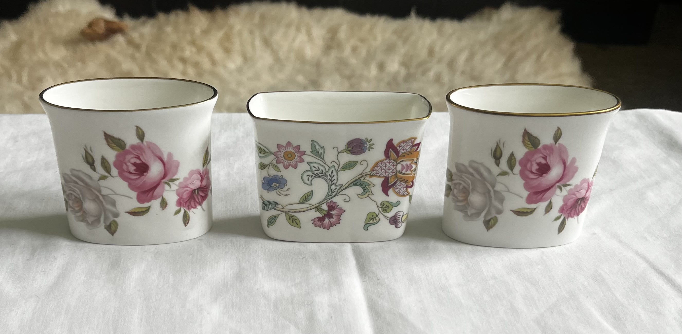 All three are marked to the base. A charming and practical trio, ideal for collectors of decorative tableware or as ornamental mantel accents.