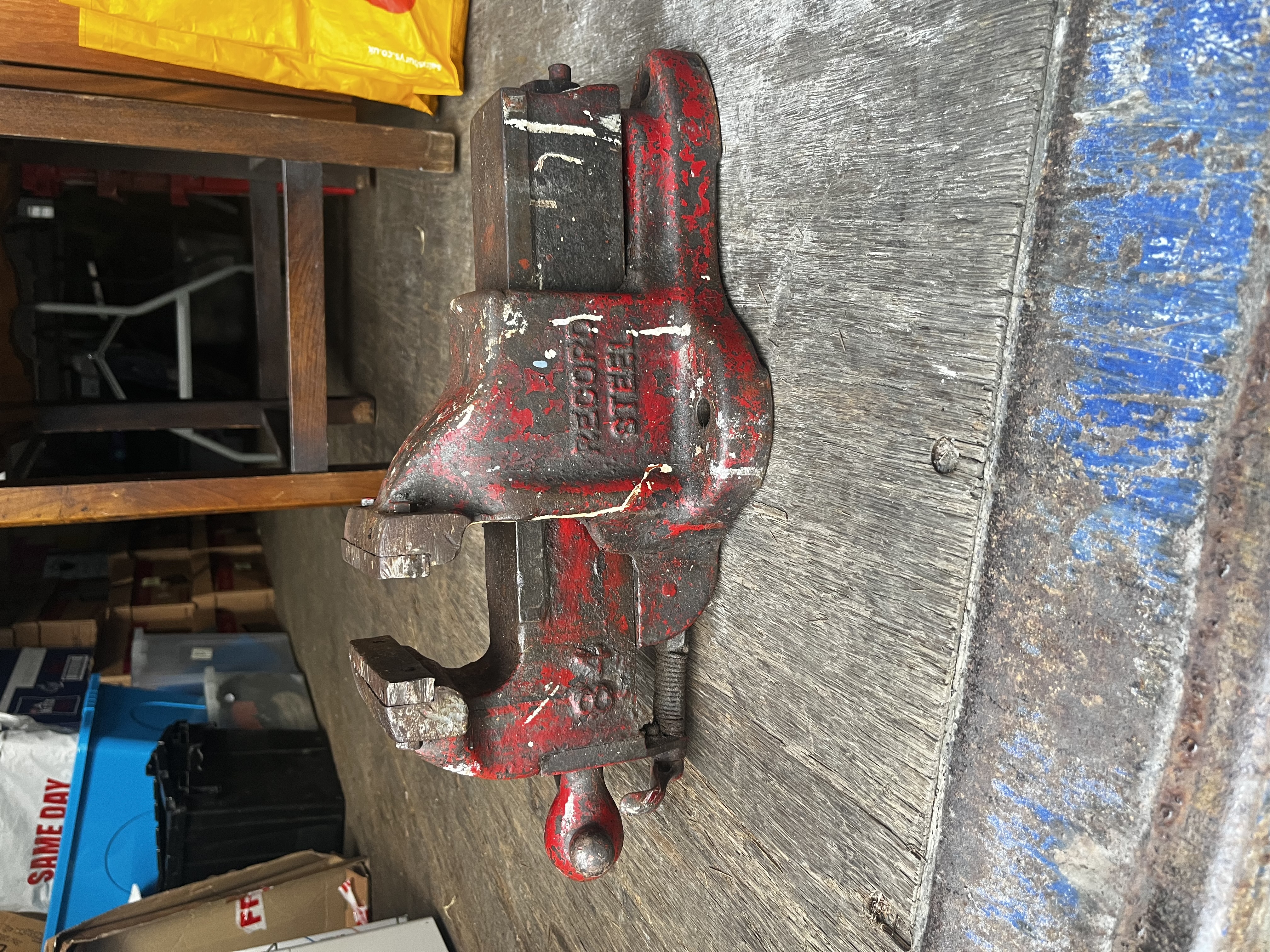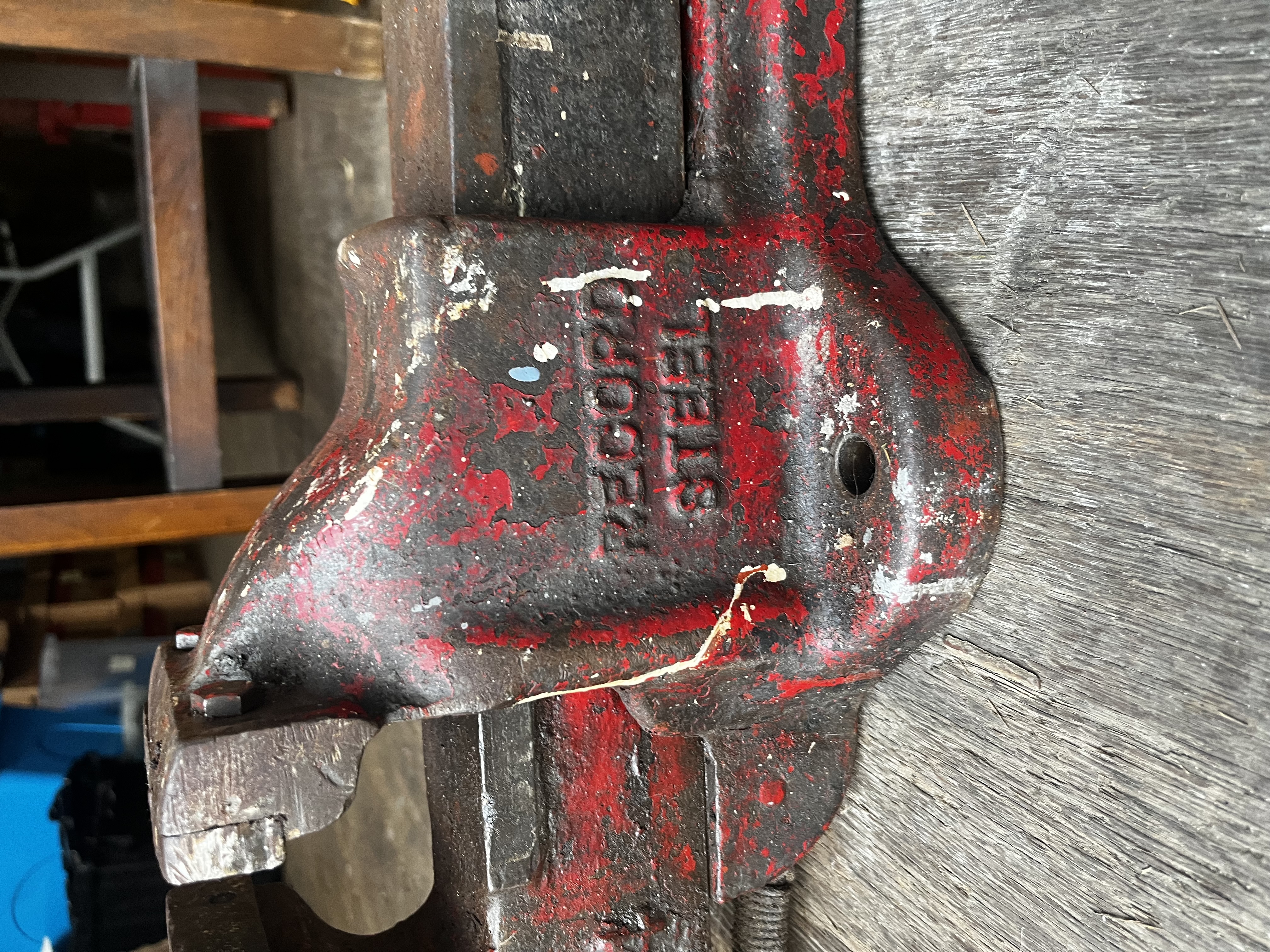 A heavy-duty Record Steel quick-release bench vice, model No. 35, designed for secure clamping during woodworking, metalworking, and other workshop tasks: