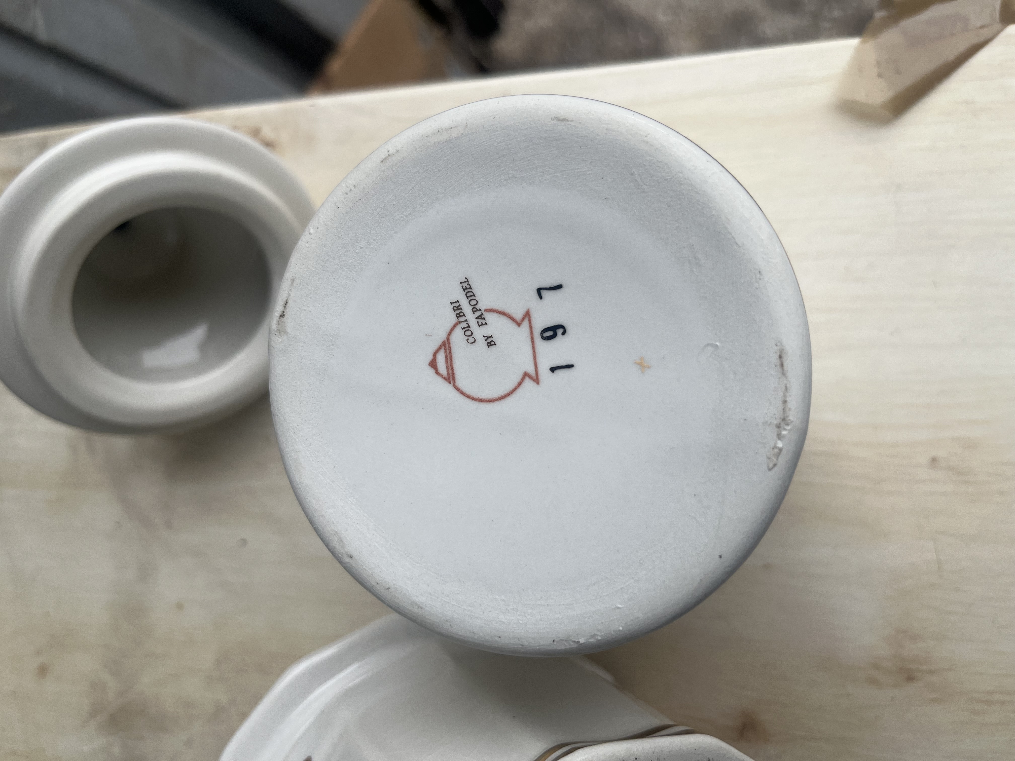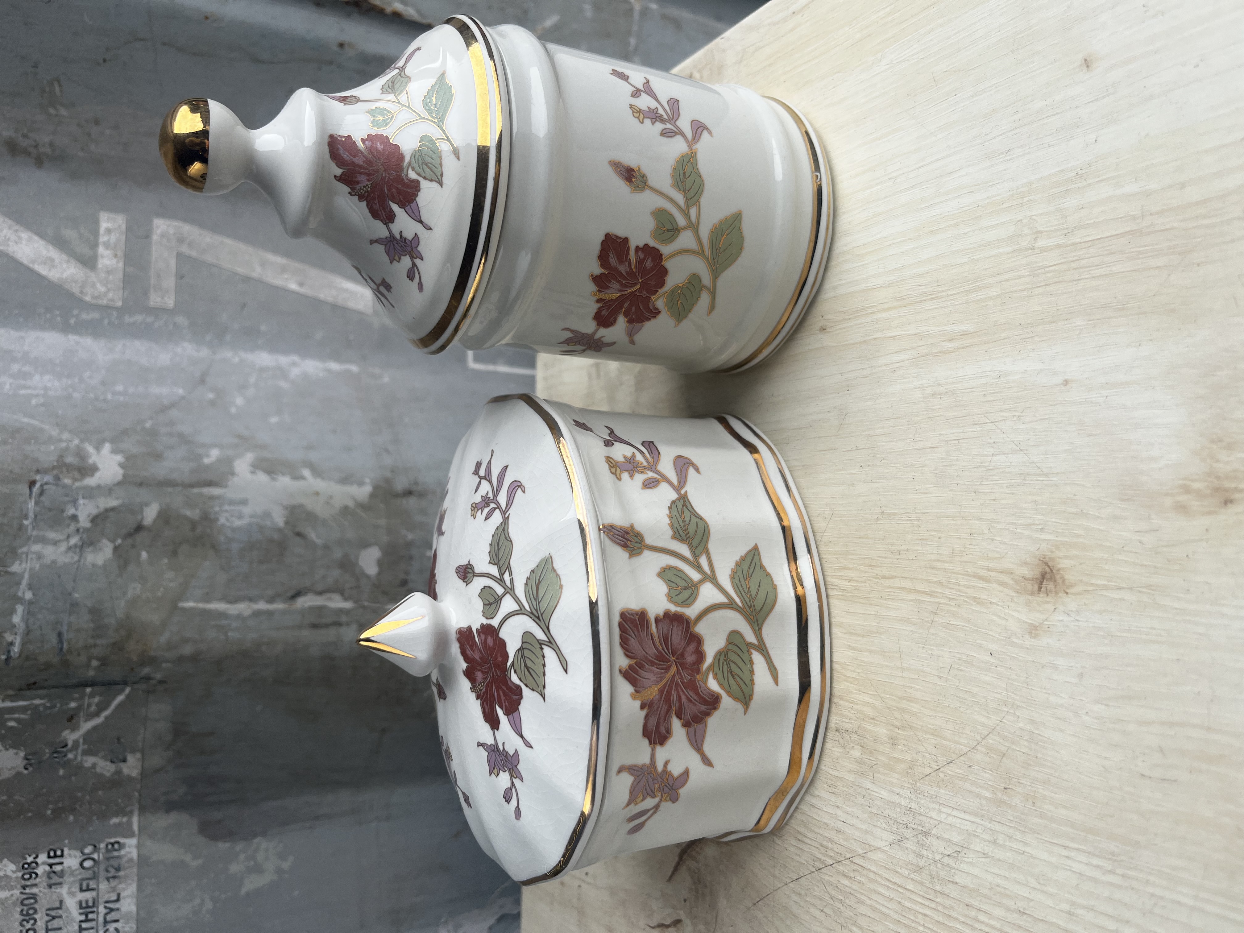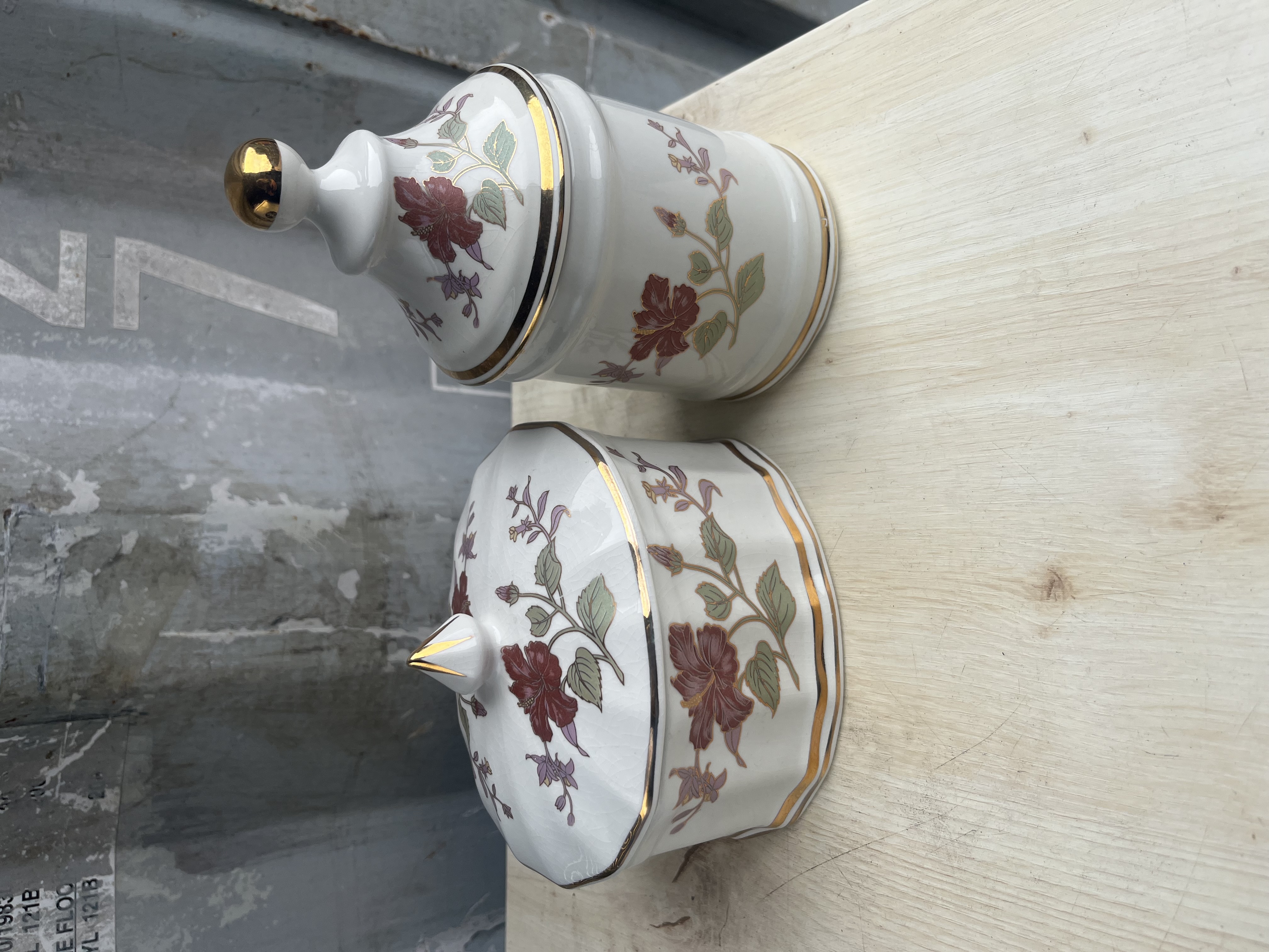 Lot 106: A pair of vintage porcelain lidded dishes by Fapodel, Portugal,