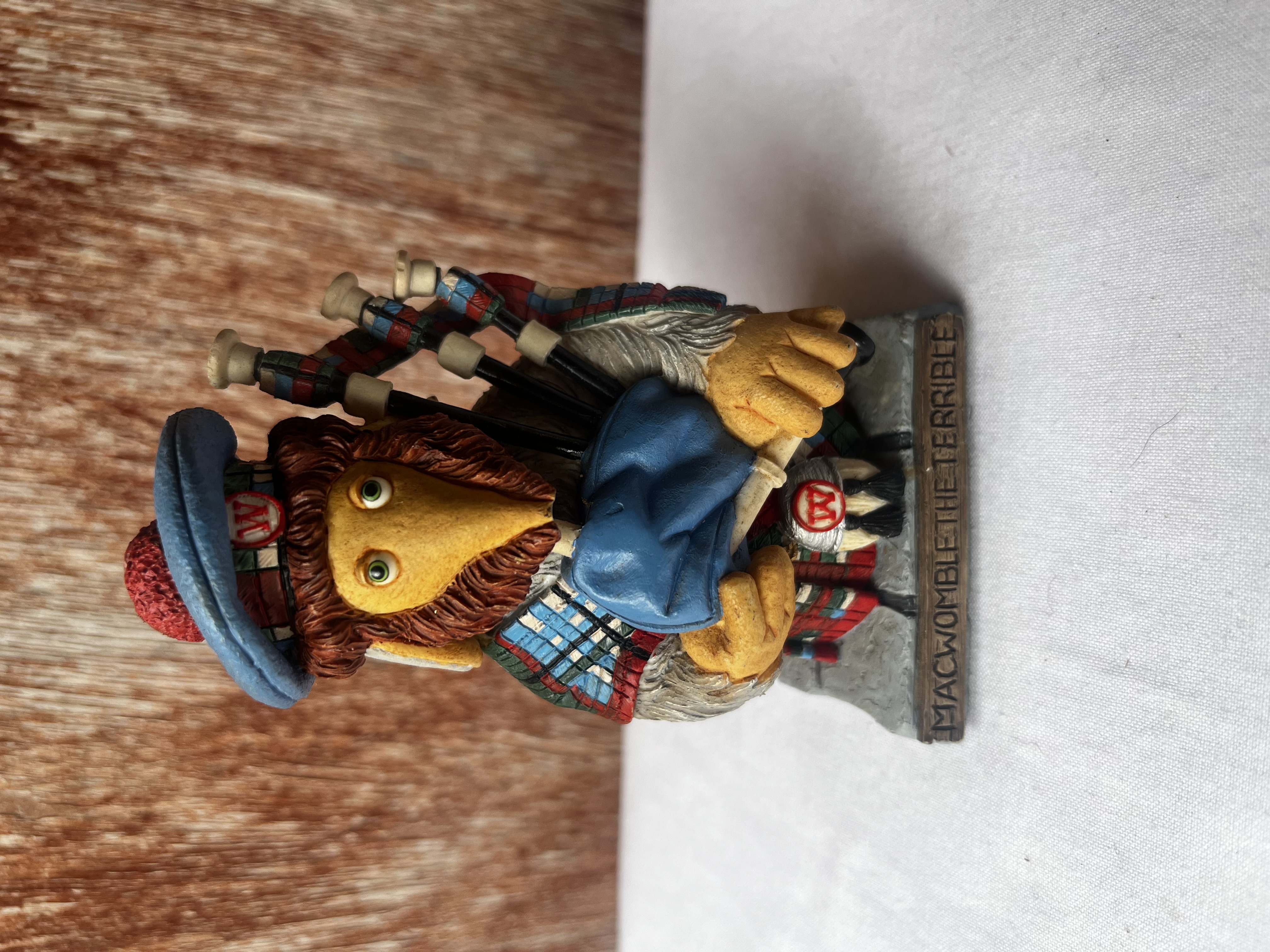 • Details: Hand-painted collectible figurine capturing MacWomble’s distinctive tartan attire and bagpipes.