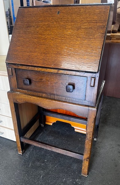 Lot 26: Mid Century Antique Bureau Writing Desk Table Complete with Lock and Key