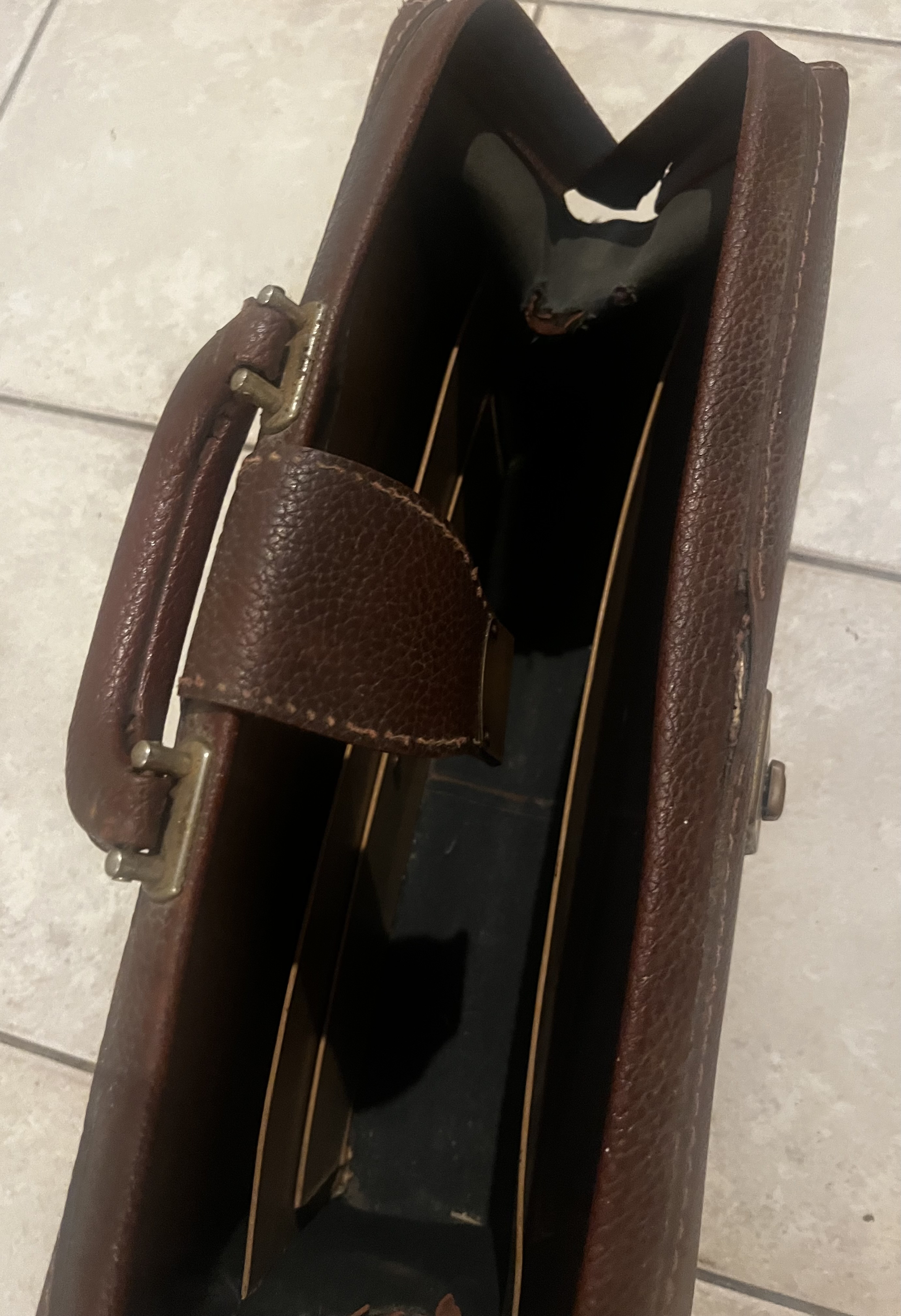 A classic 1960s leather briefcase in warm tan, with all the character and charm of mid-century design: