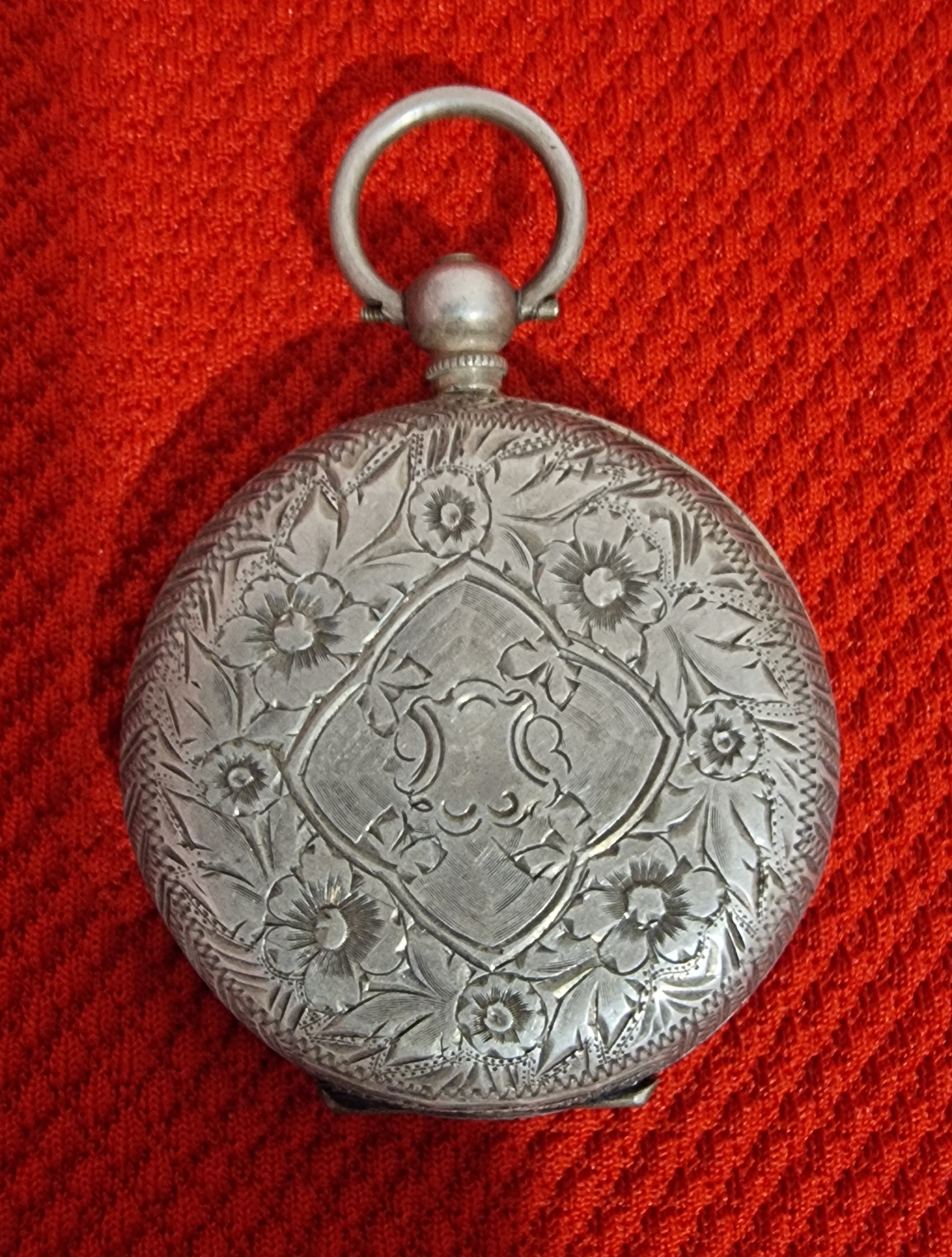 Lot 7: Vintage 935 Silver Pocket Watch – Floral Engraved Case, Roman Numerals