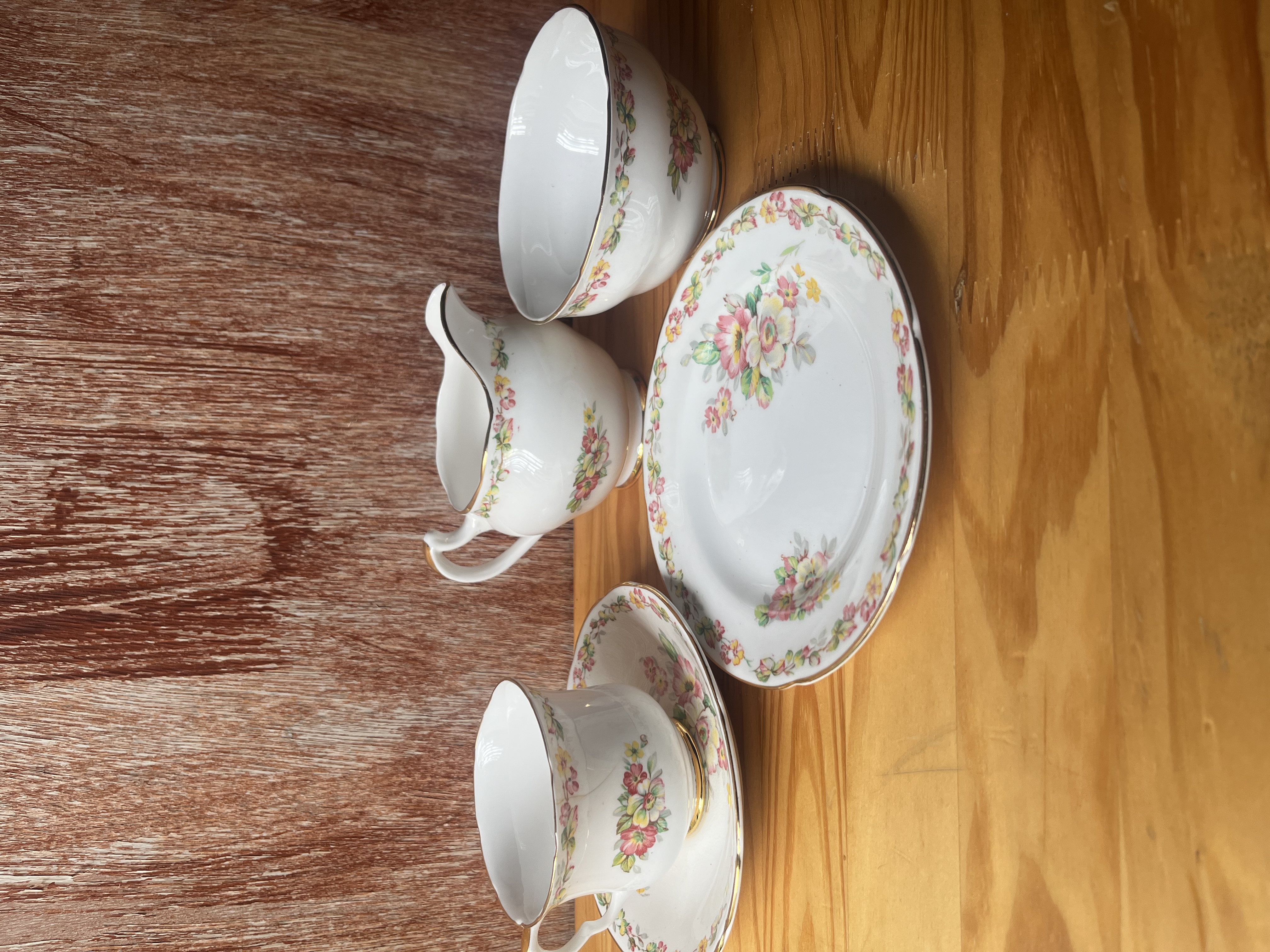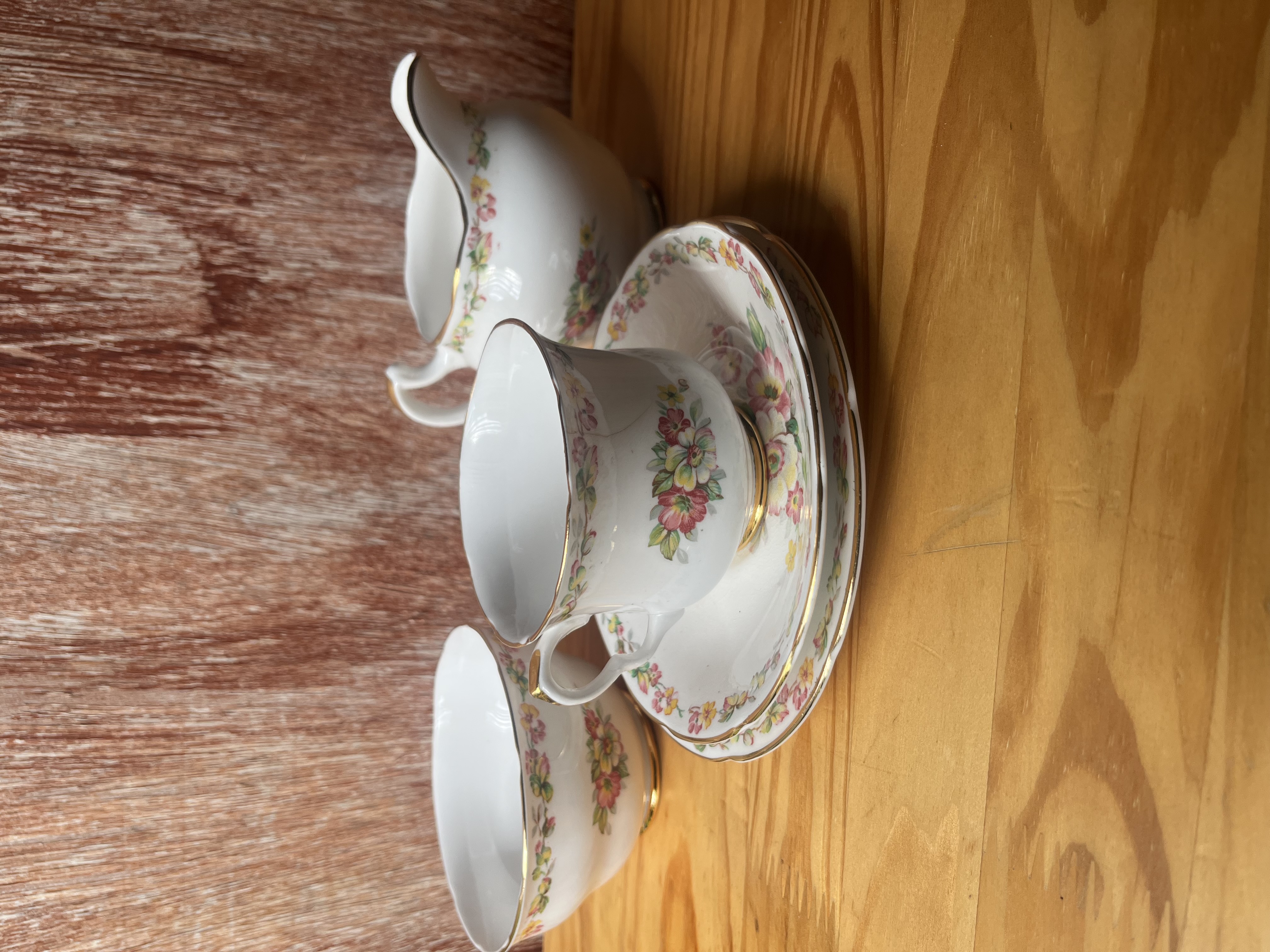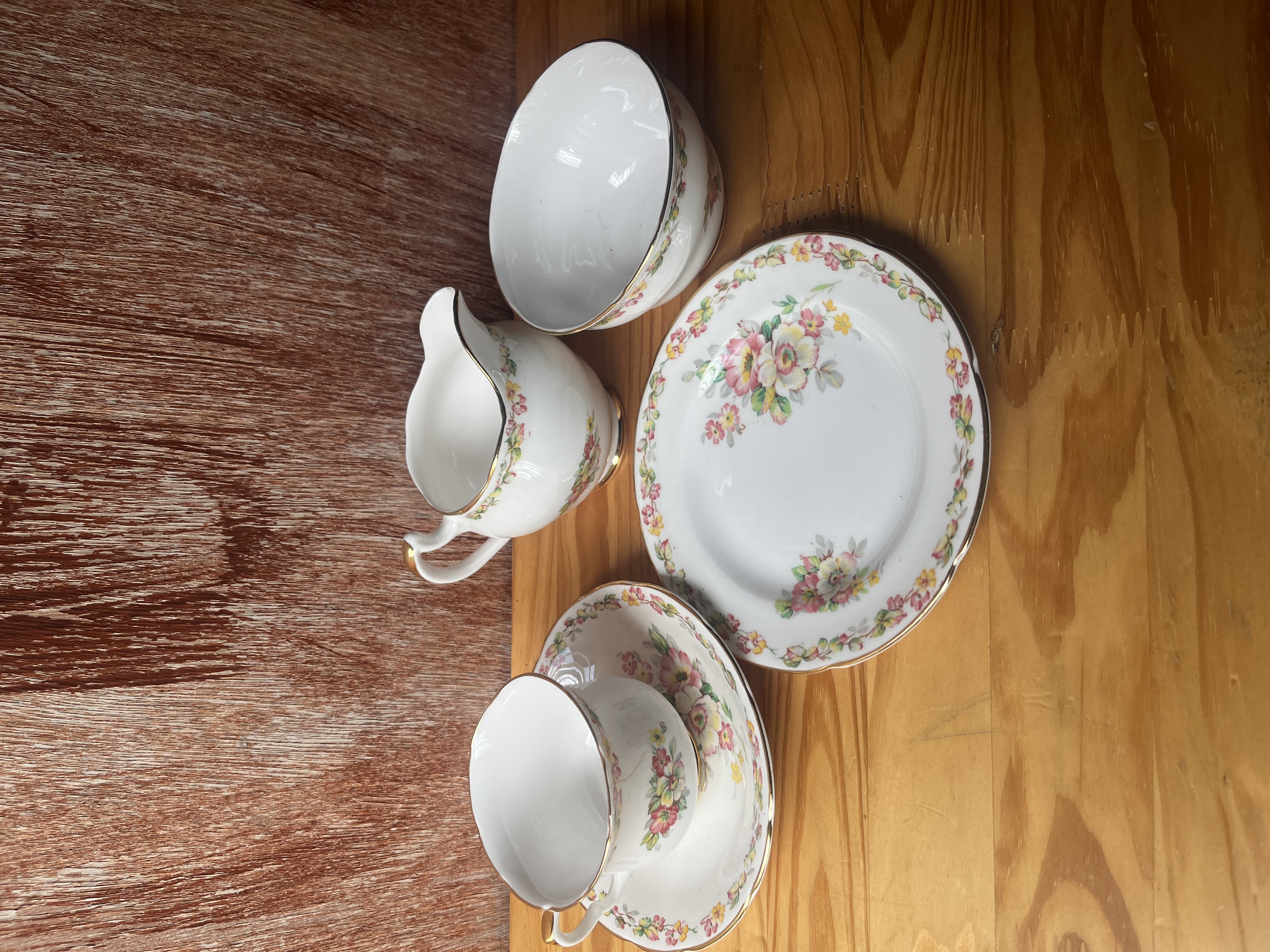 Paragon/Royal Albert “Belinda” tea set, a discontinued fine bone china collection known for its delicate floral design and gold trim.