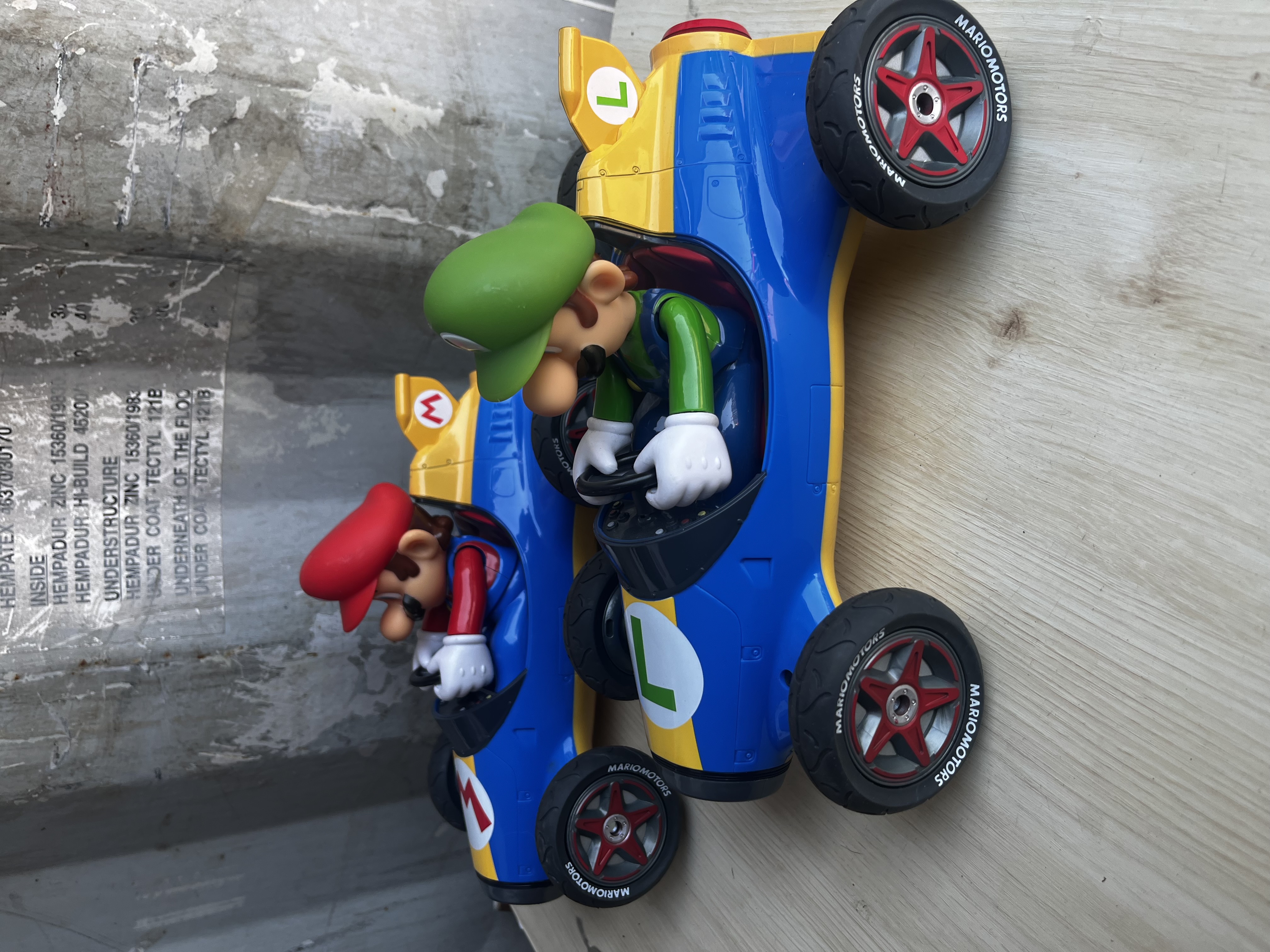 These RC cars are officially licensed Nintendo products, featuring the iconic Mach 8 karts from the Mario Kart video game series.