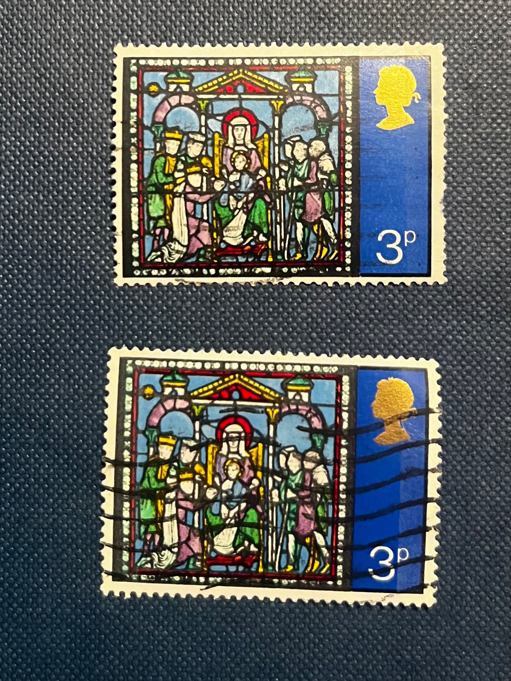 A Pair of Great Britain 1971 Christmas 3p 'Adoration of the Magi' Stamps