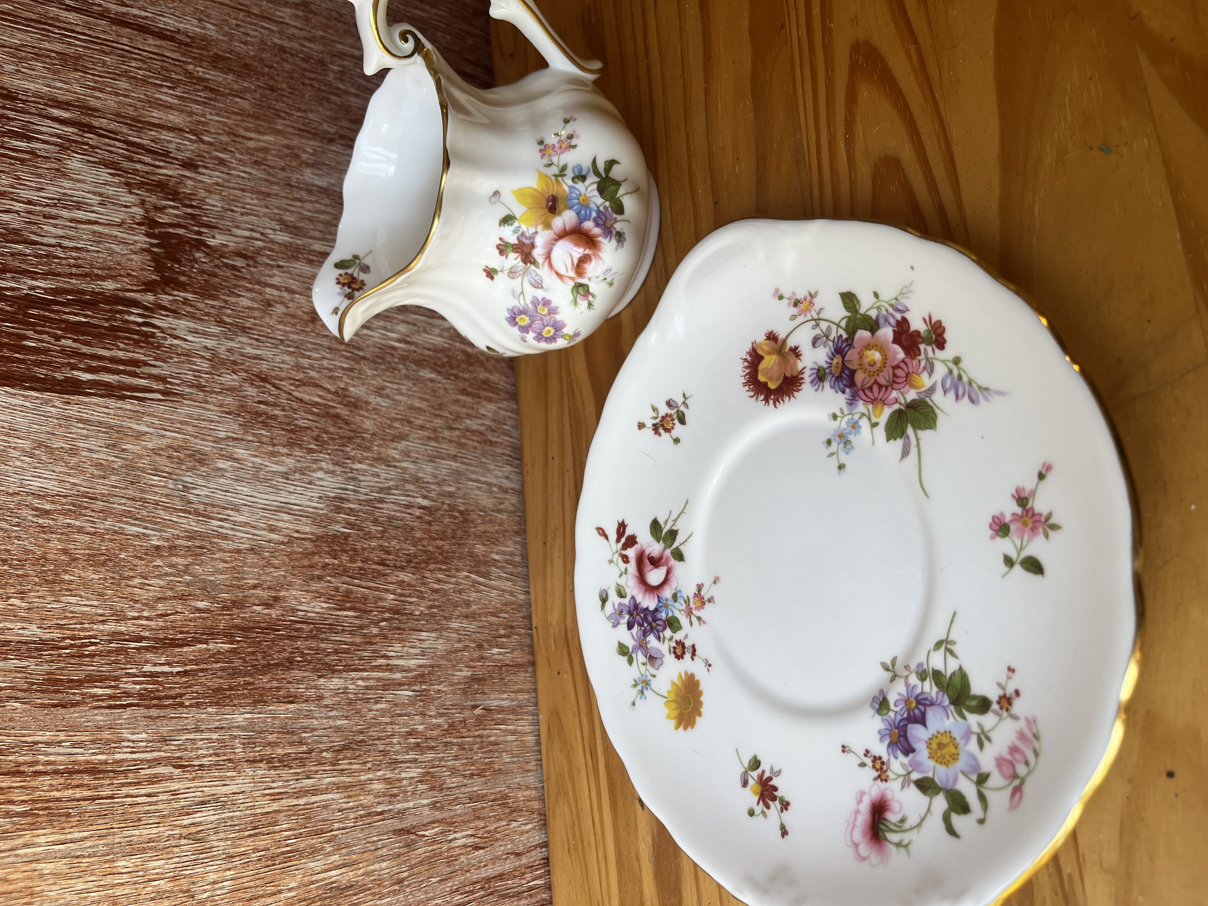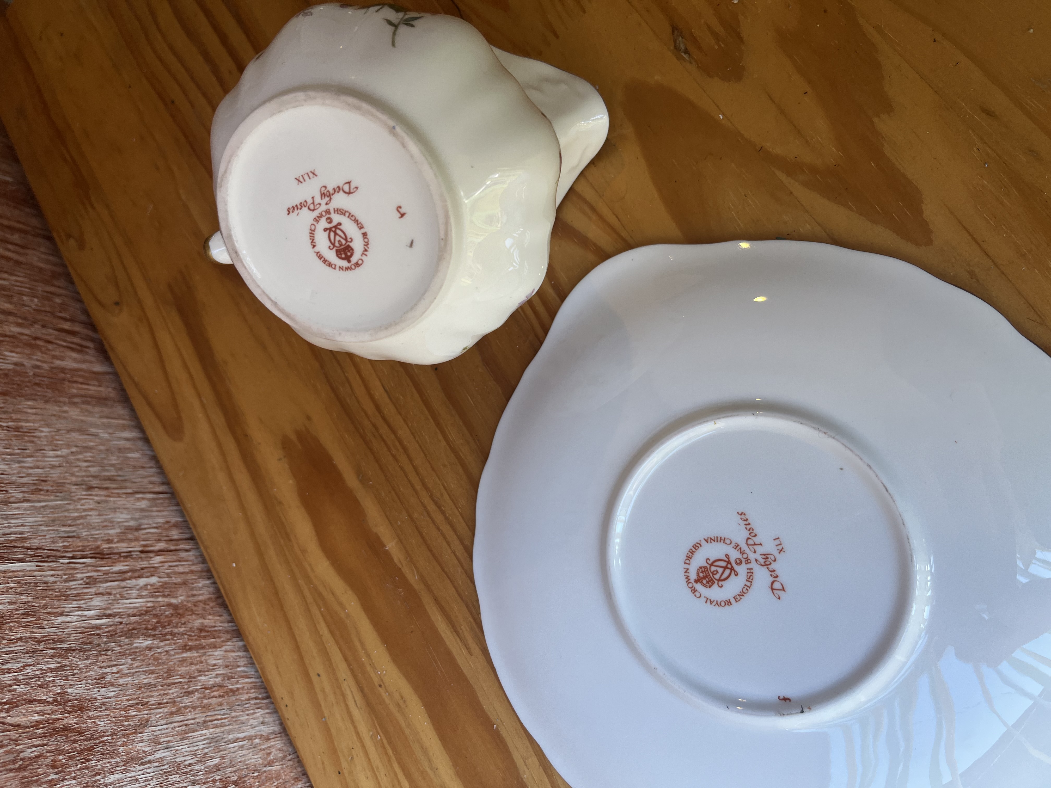 Lot 150: Royal Crown Derby Derby Posies creamer and plate set