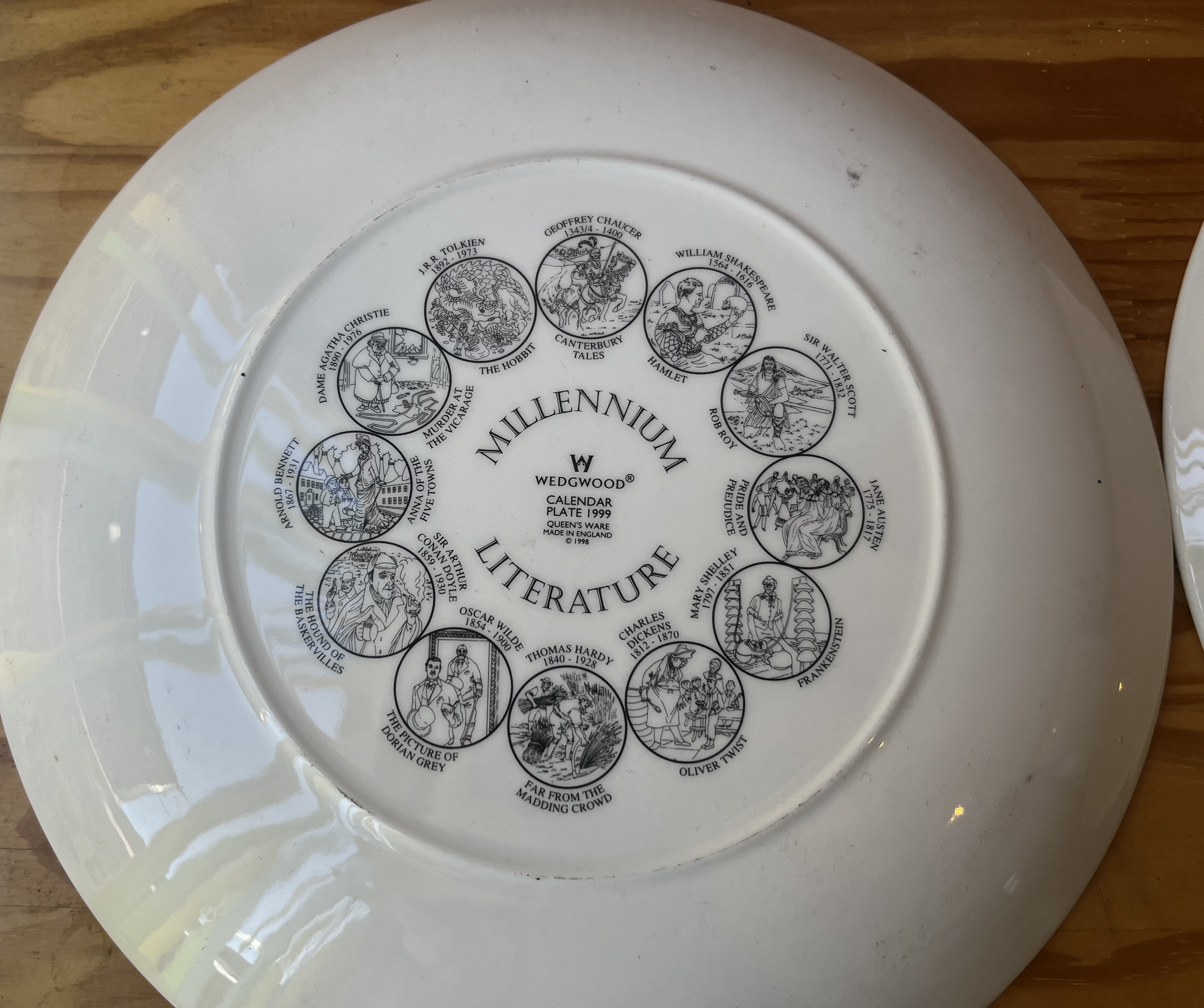 Both plates are part of Wedgwood’s Queen’s Ware collection, made in England to commemorate the Millennium