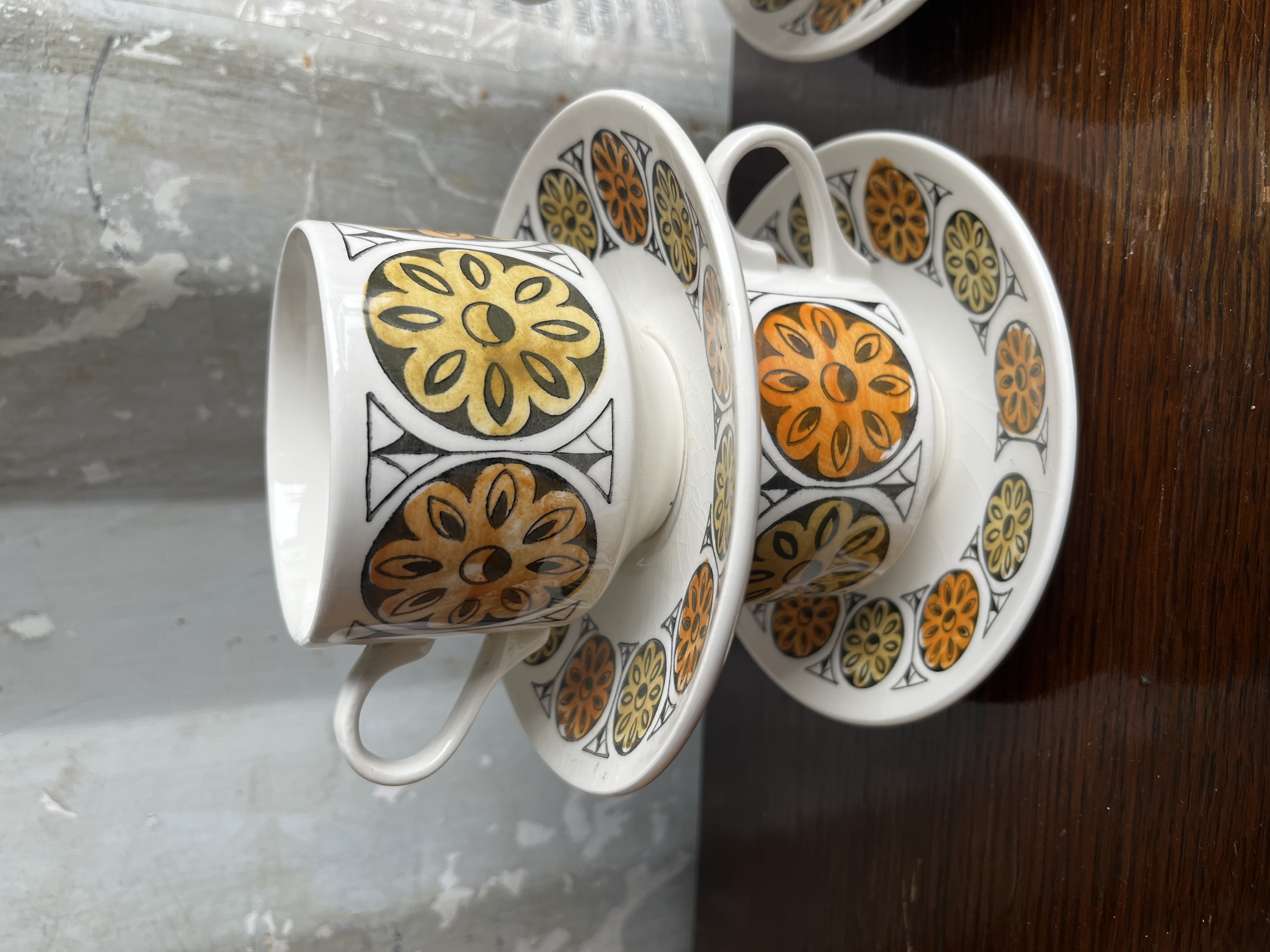 Lot 120: Set of 4 retro English pottery cups & Saucers