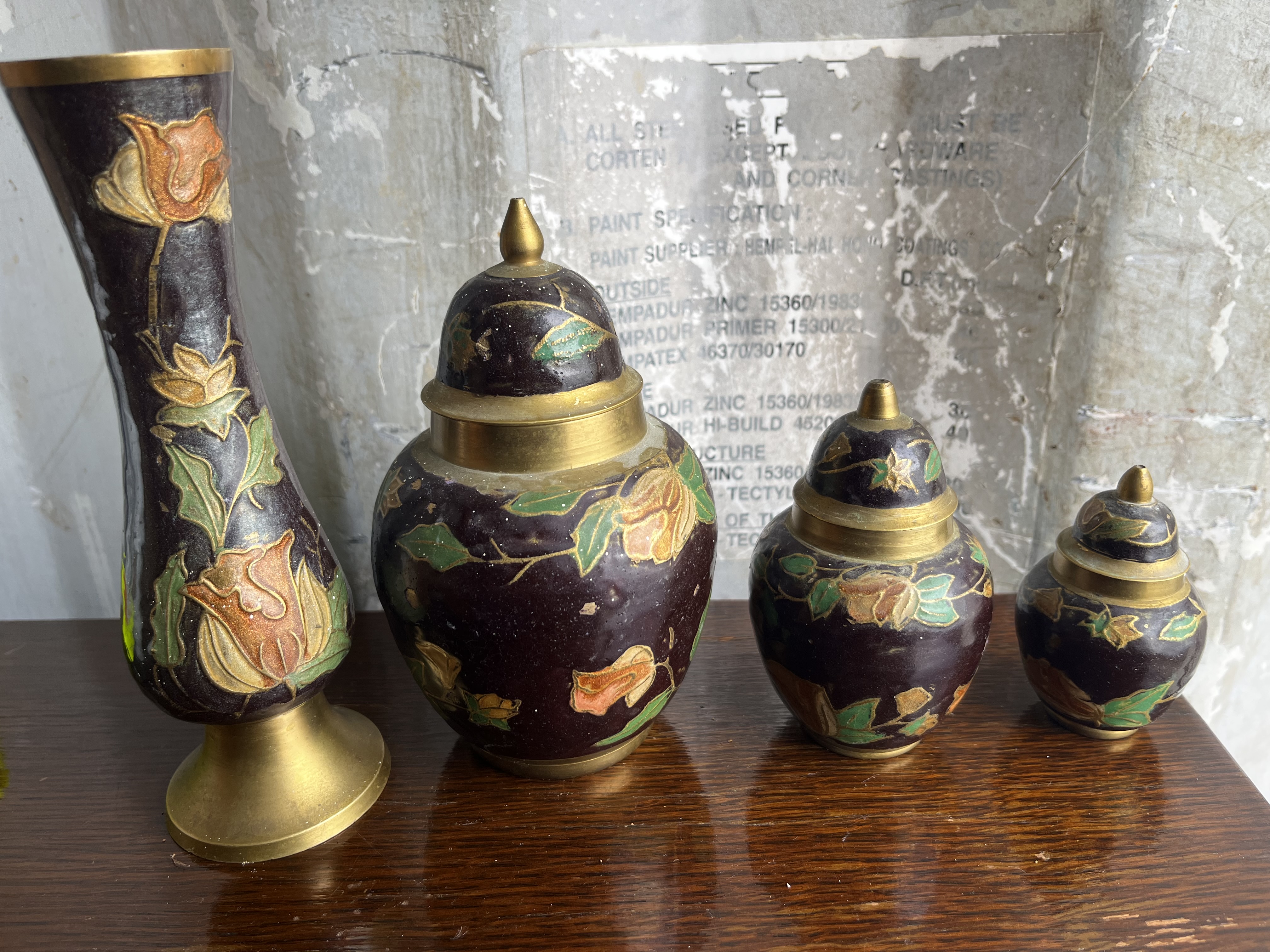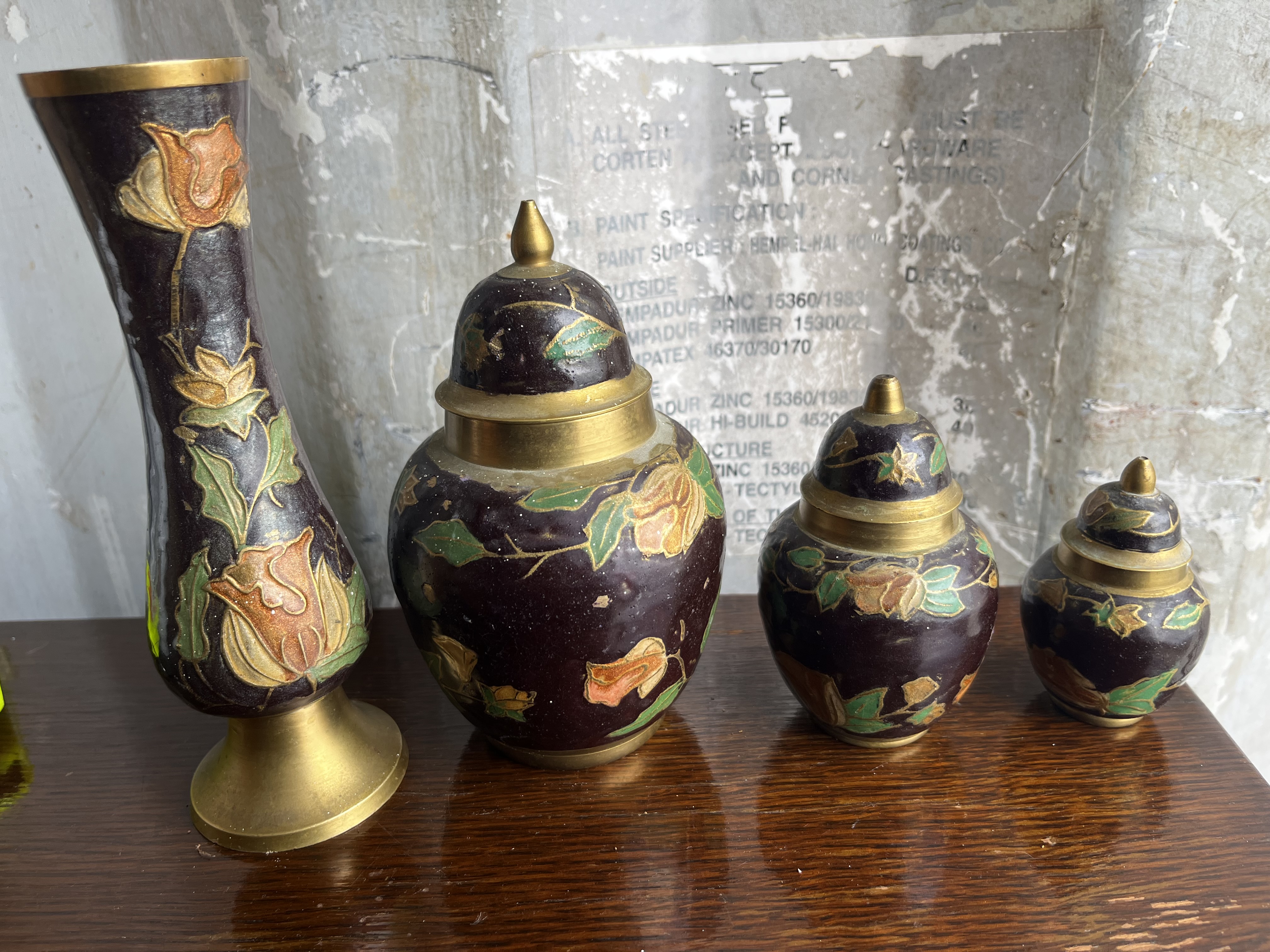 Lot 136: Set of 4 brass enamelled Items