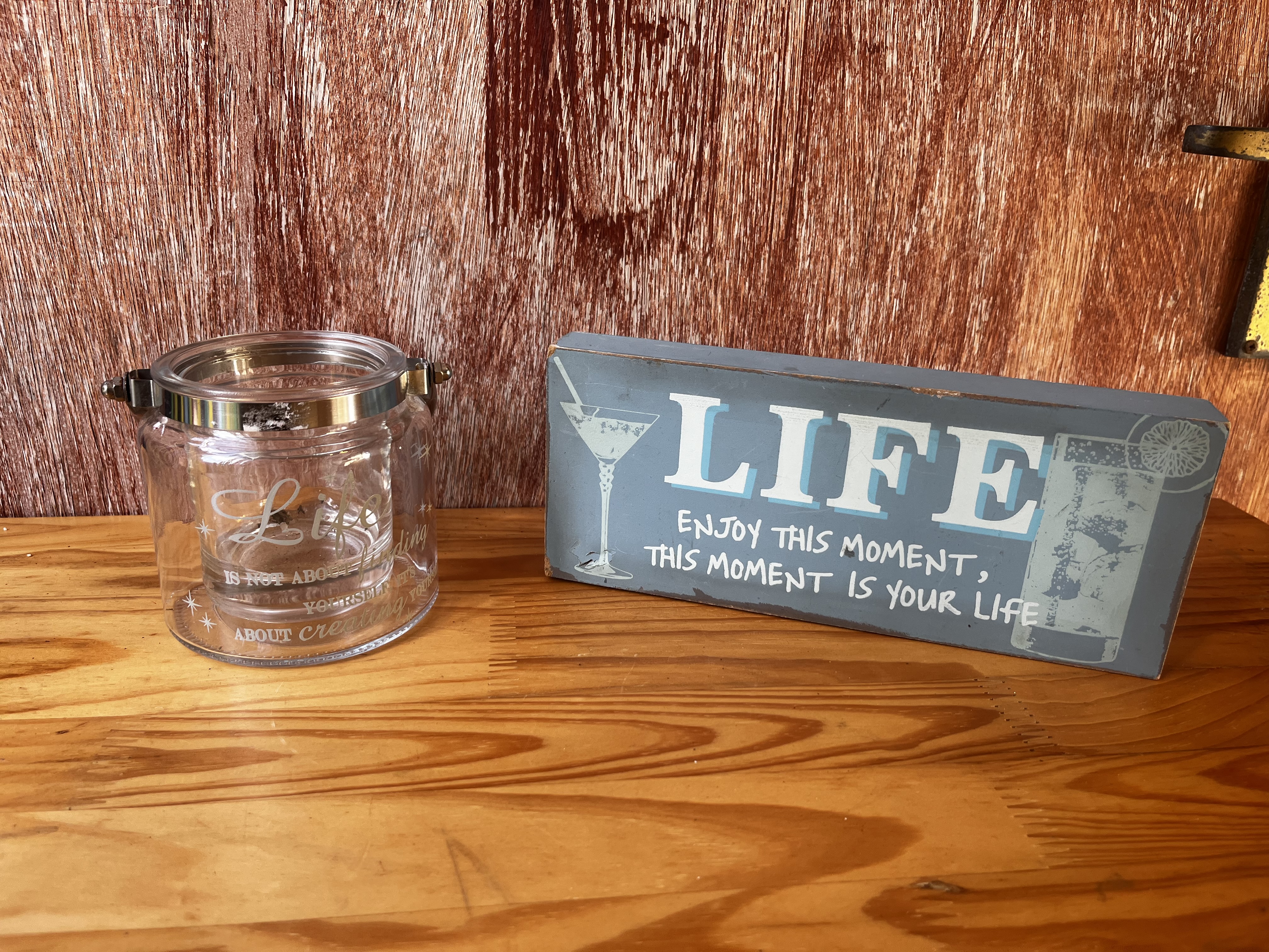 Glass Candle holder and decorative wall sign