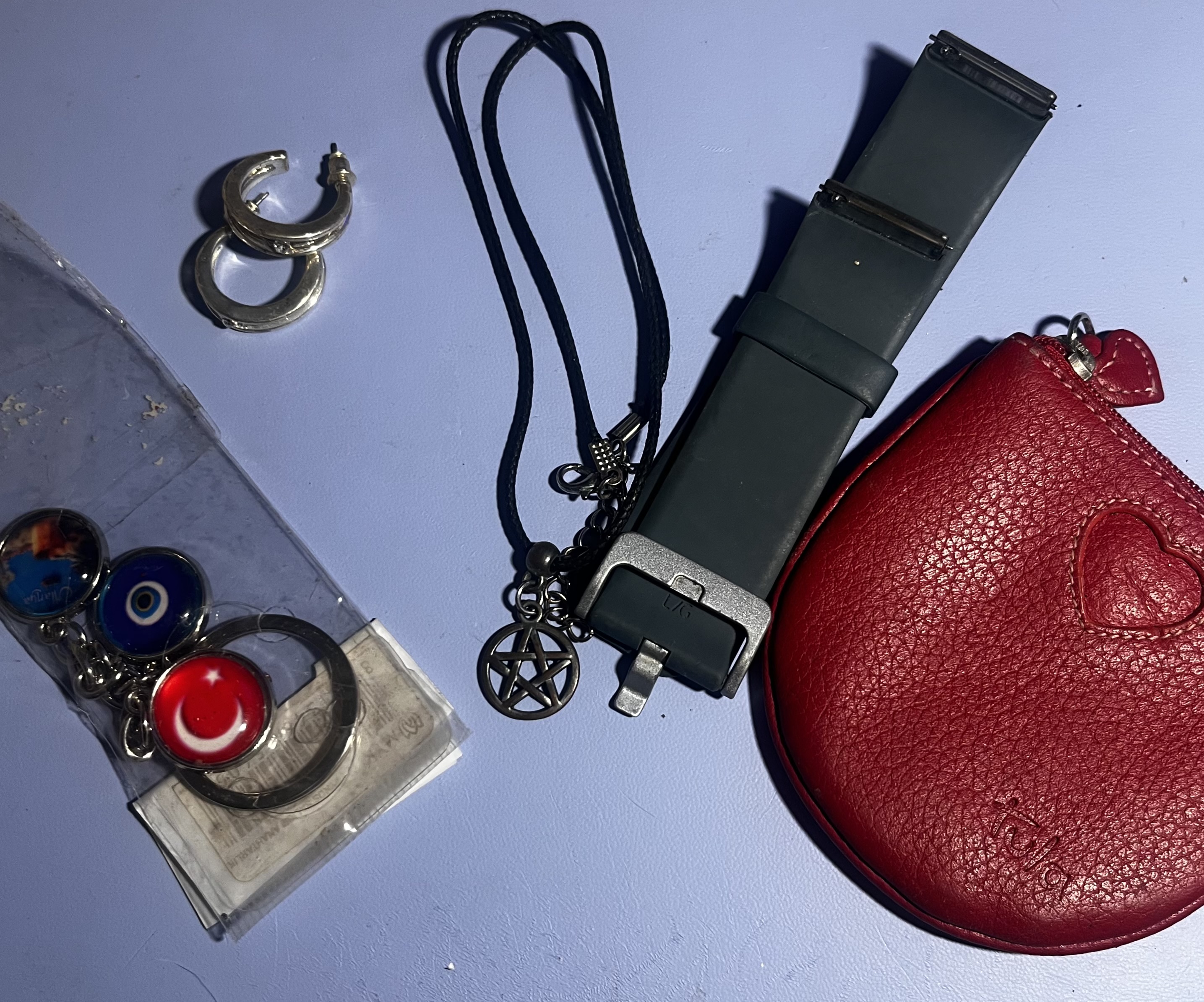 Includes Fitbit strap, necklace, earrings key ring and leather pouch