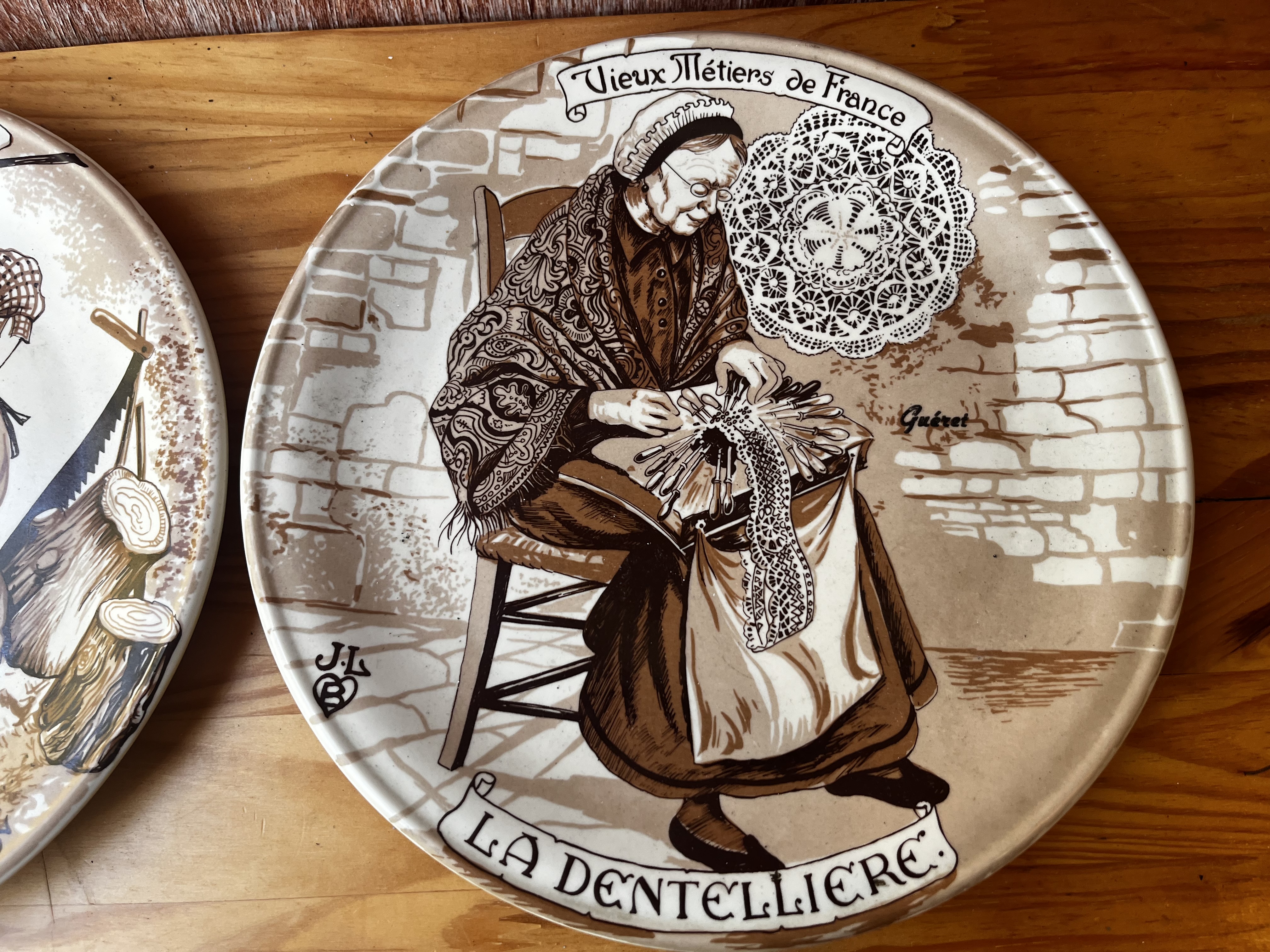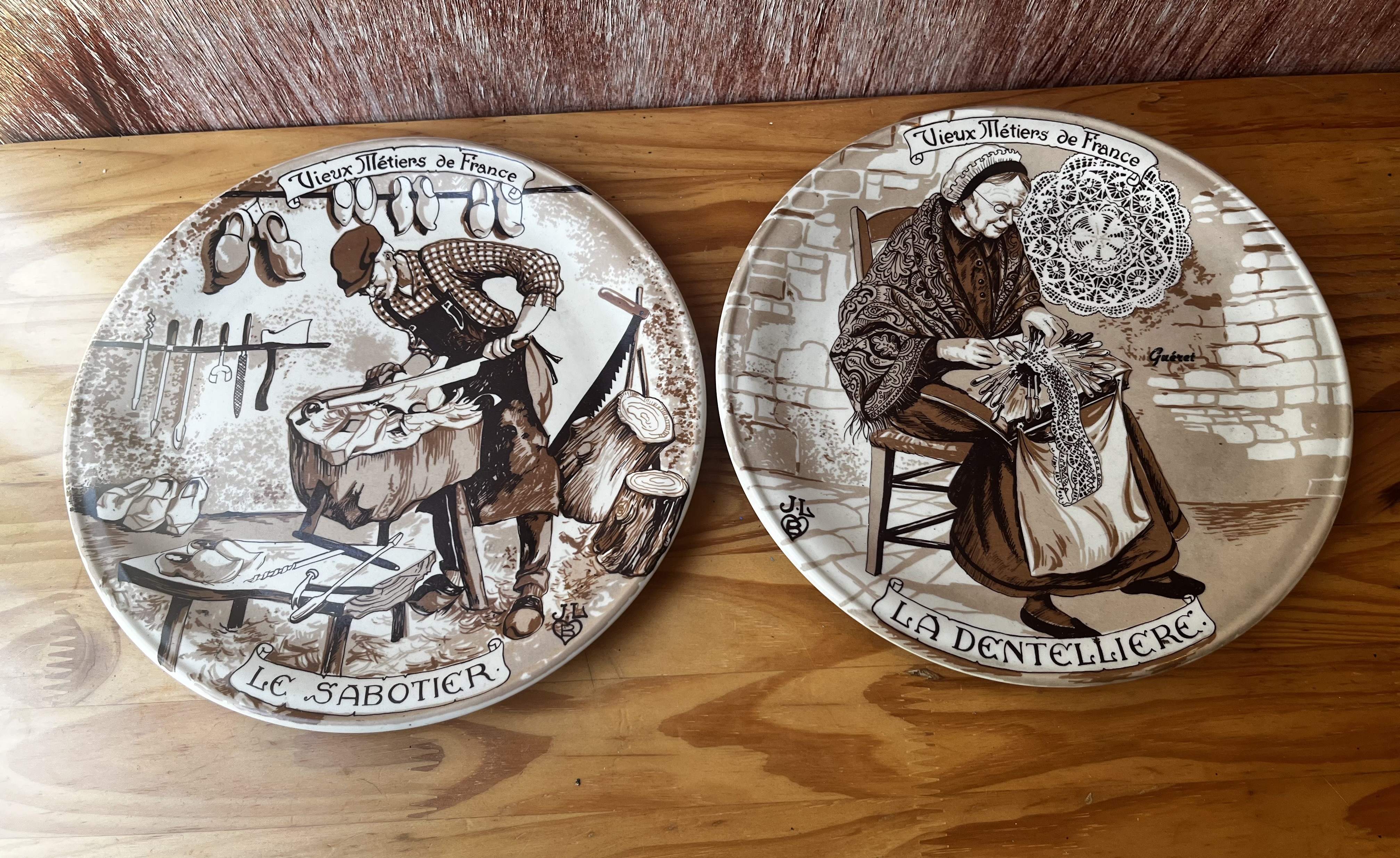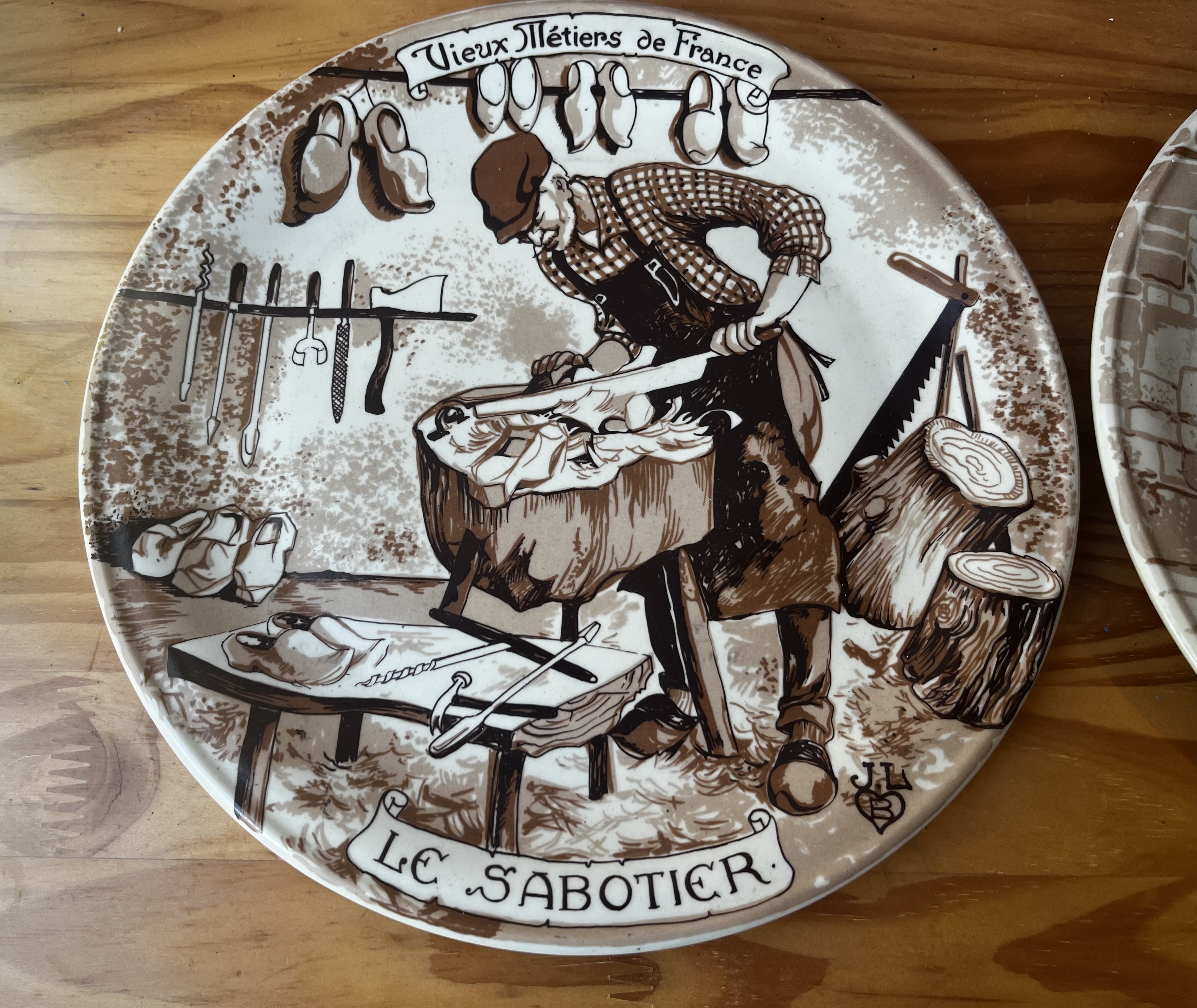 Le Sabotier (The Clog Maker): This plate shows a craftsman making wooden clogs, a traditional type of footwear.