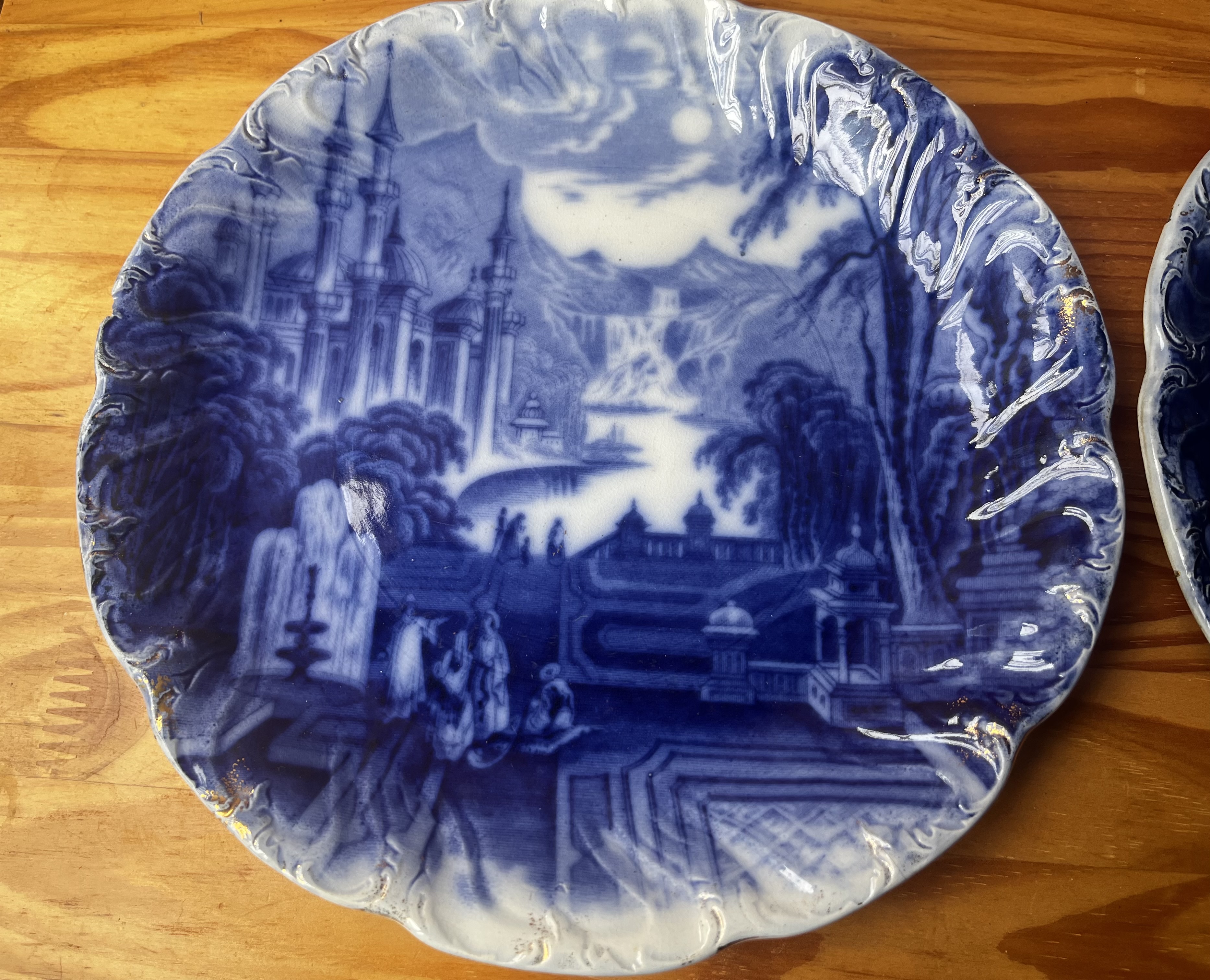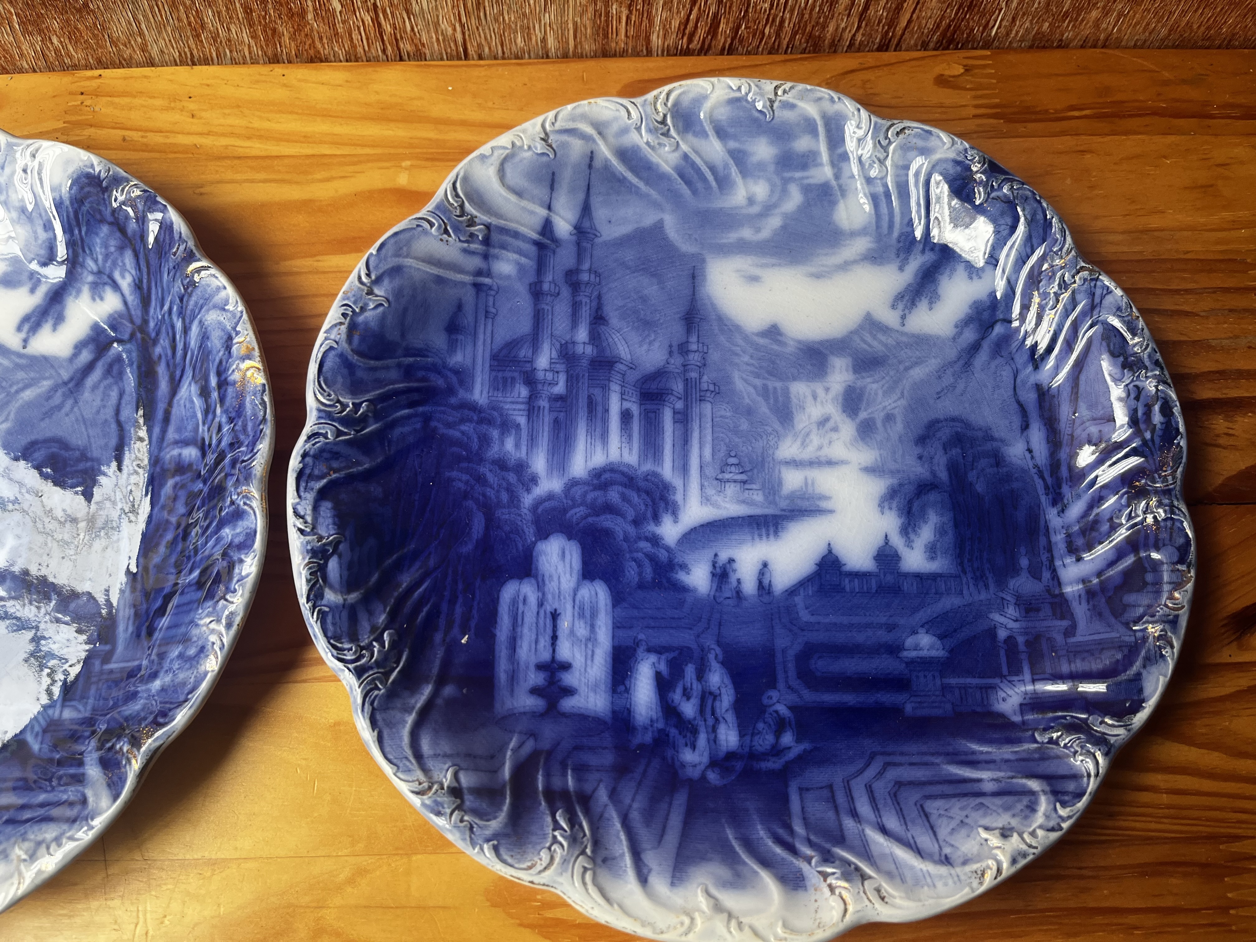 Lot 110: Pair of Antique Flow Blue Decorative Plates – “Old Istanbul” / “Romantic Blue Mosque Medina”