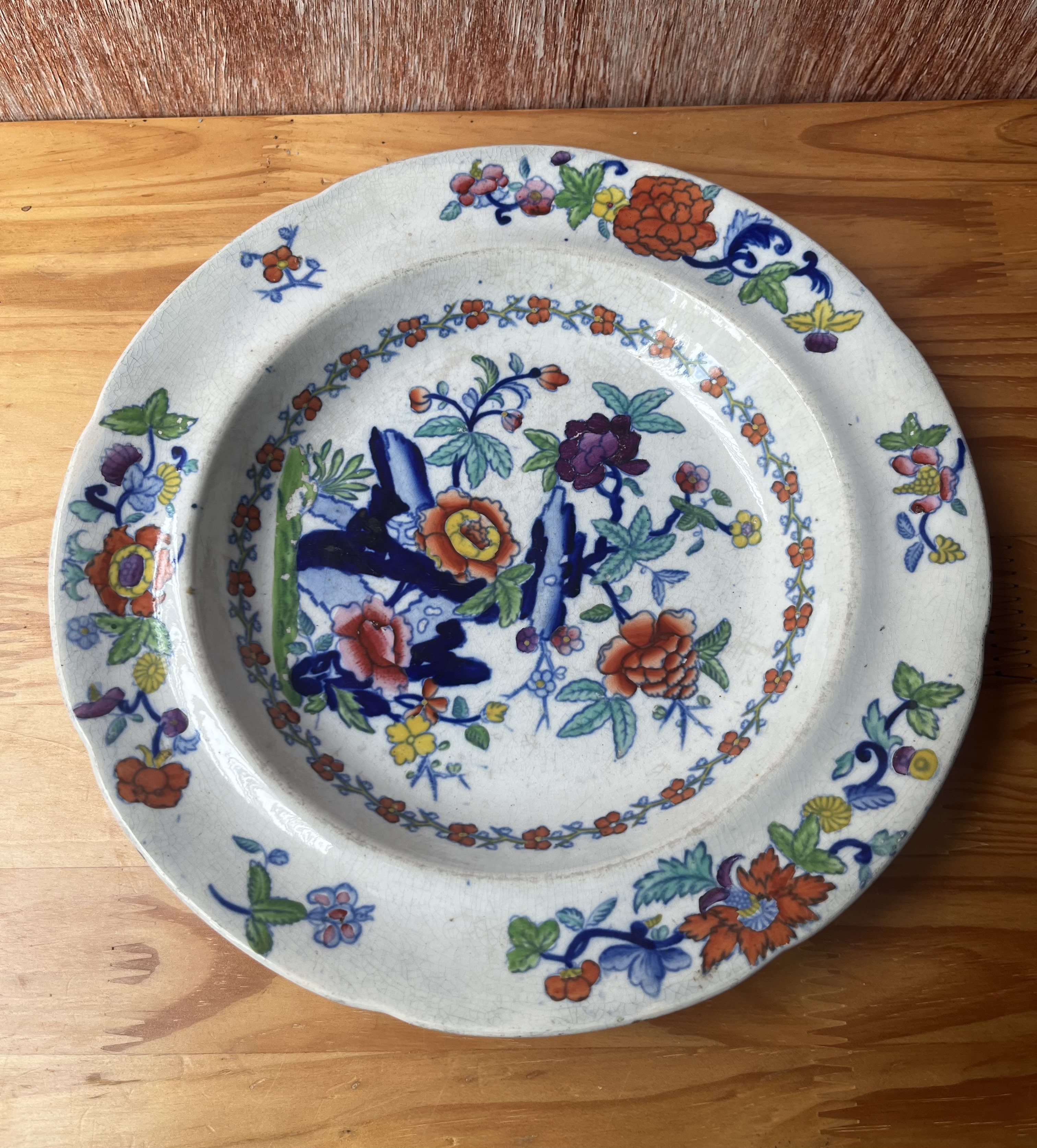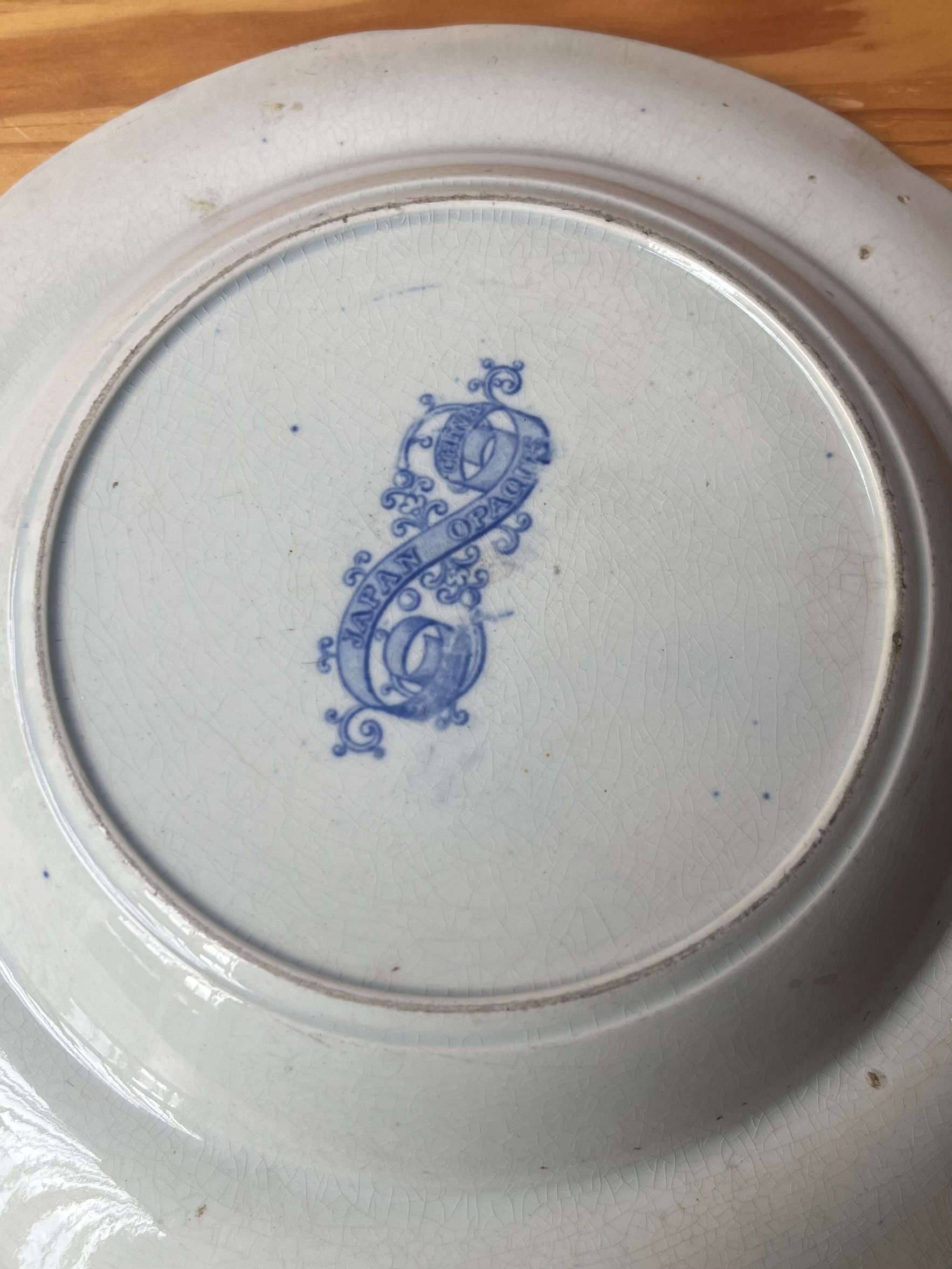 A fine antique ceramic plate attributed to the Ridgway family of potters, produced at the Cauldon Place Works, Staffordshire, England. The backstamp reads “Japan Opaque China,” a term used in the early 19th century to denote a durable type of ironstone or earthenware intended to resemble porcelain.