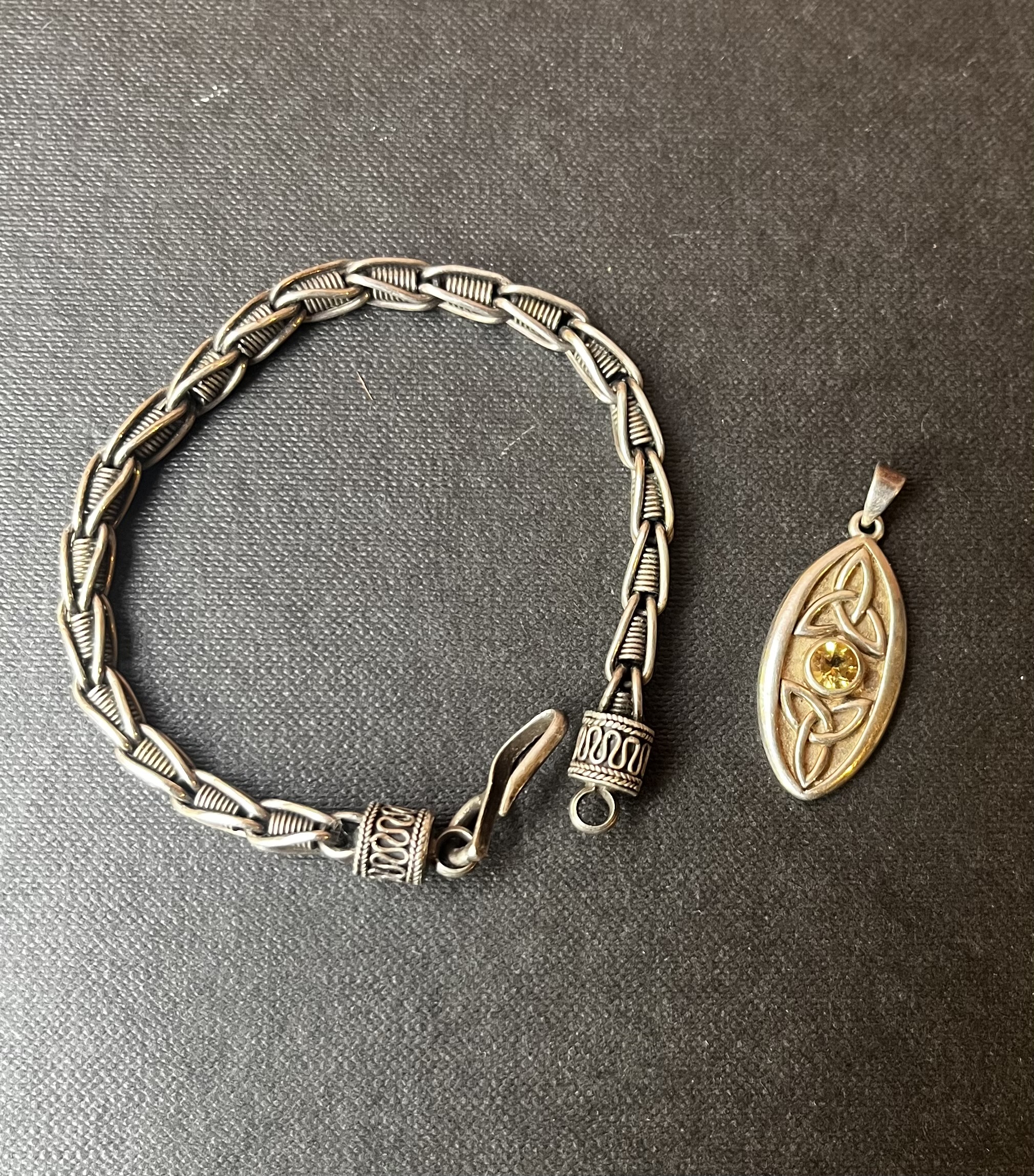 925 Silver Antique Bracelet & Celtic Knot Pendant