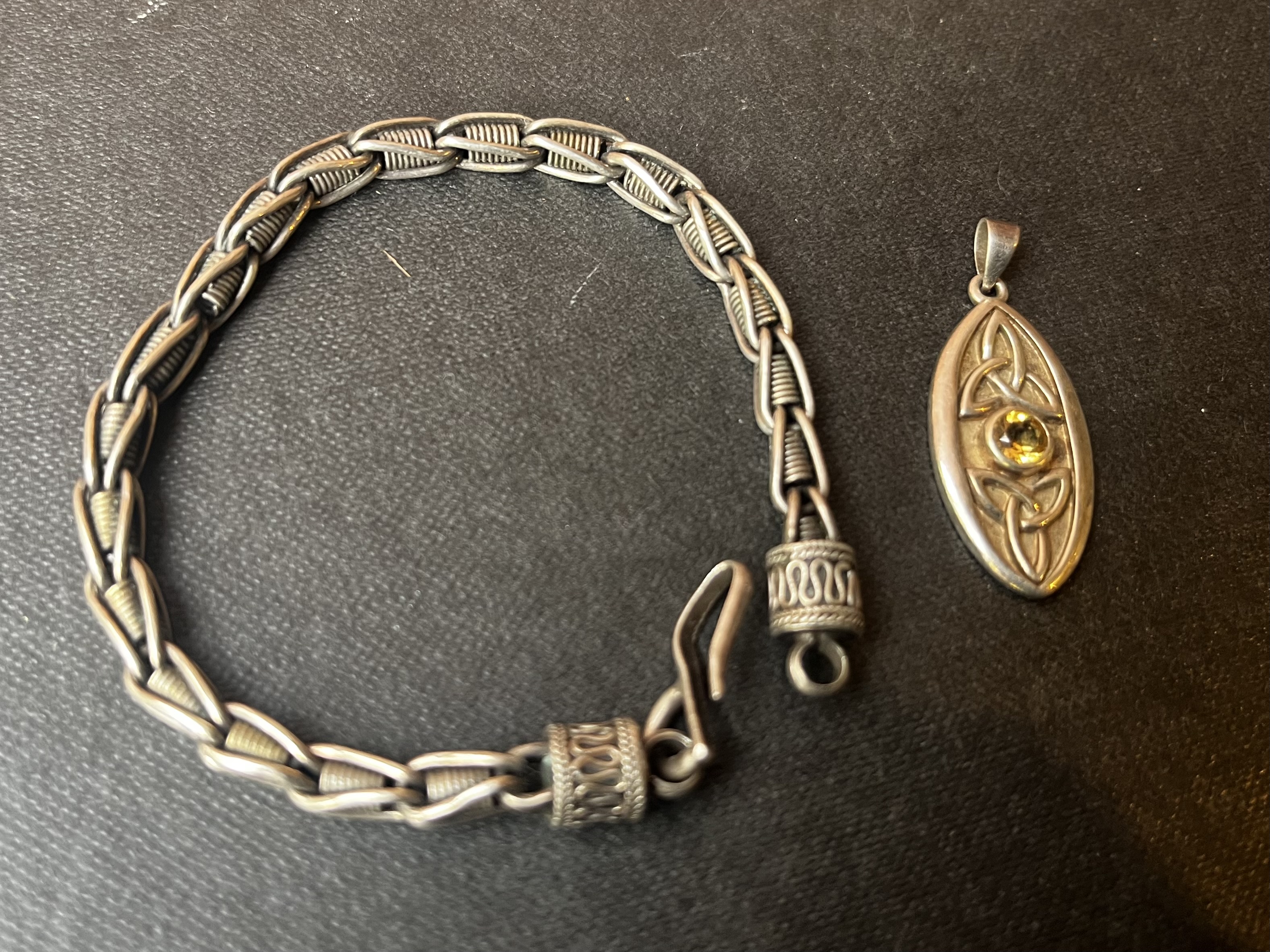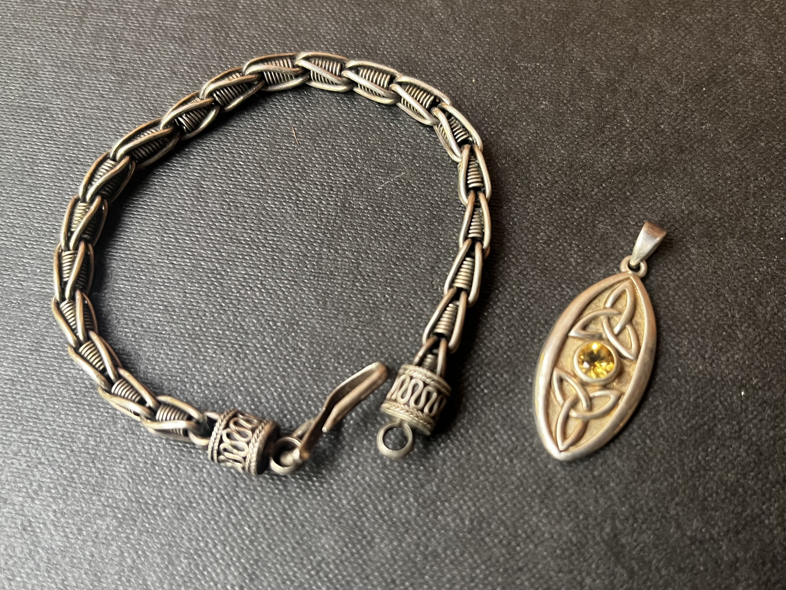Lot 136: 925 Silver Antique Bracelet & Celtic Knot Pendant