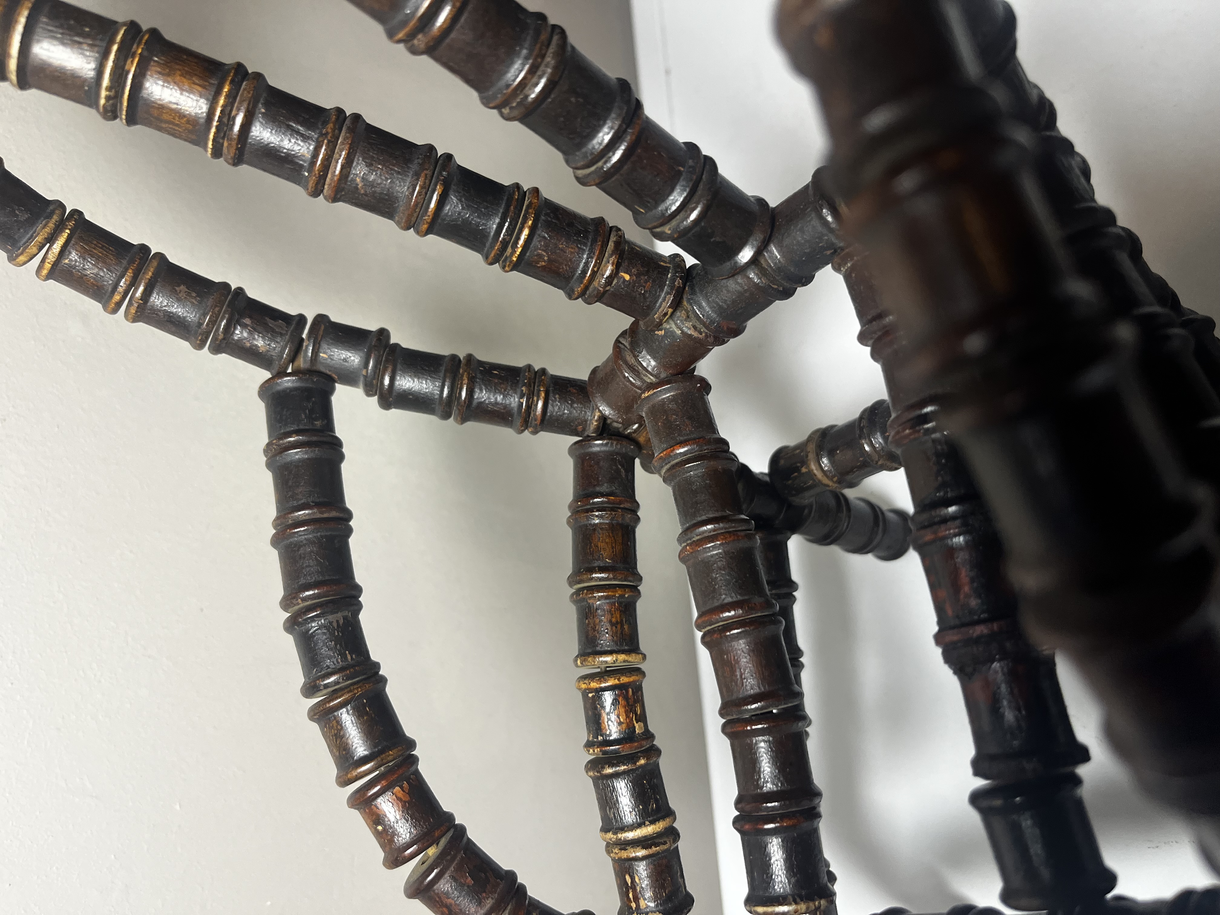 Lot 48: Unique Handmade Antique Victorian Folk Art Treen Dolls Rocking Chair & Table for Display Miniature Spindles Bobbins Reels