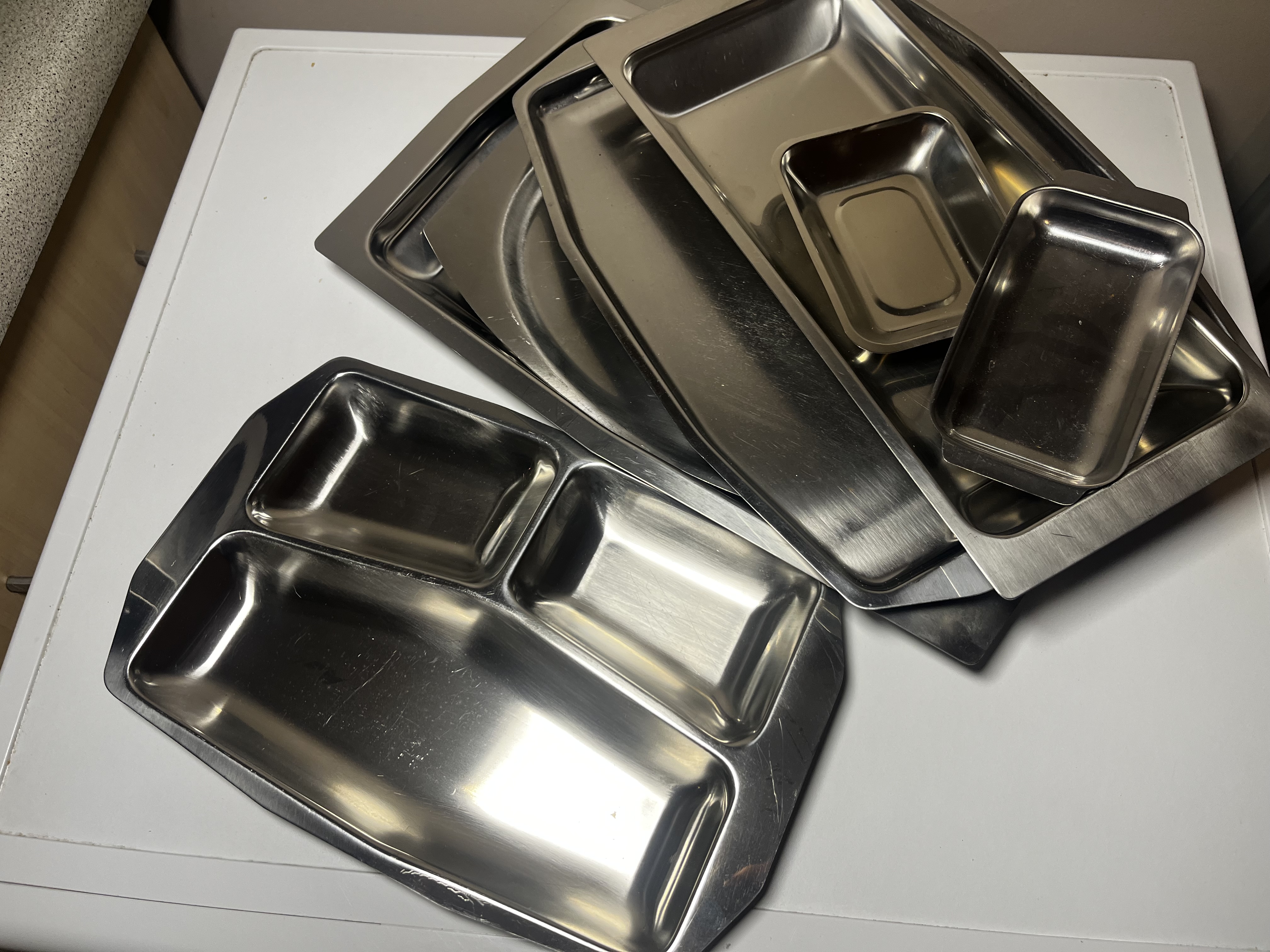 Vintage Stainless Steel Divided Serving Trays - Cafeteria Style Mess Trays