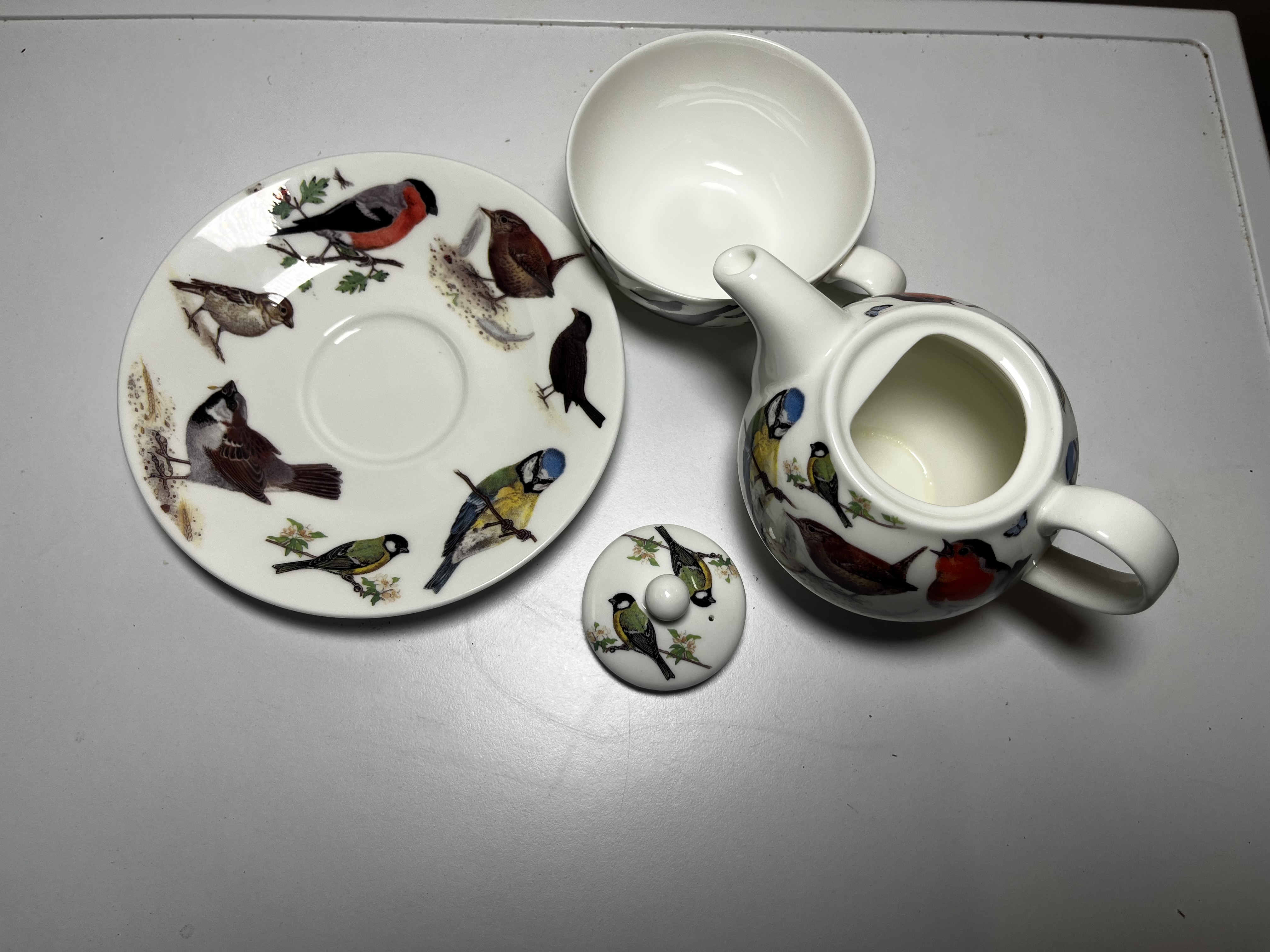 Lot 92: Roy Kirkham "Garden Birds" Fine Bone China Breakfast Cup and Saucer, featuring a blue tit design