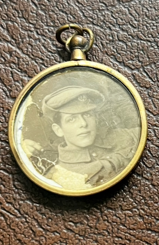 Lot 143: WW1 Round Sweetheart Brooch with soldier picture