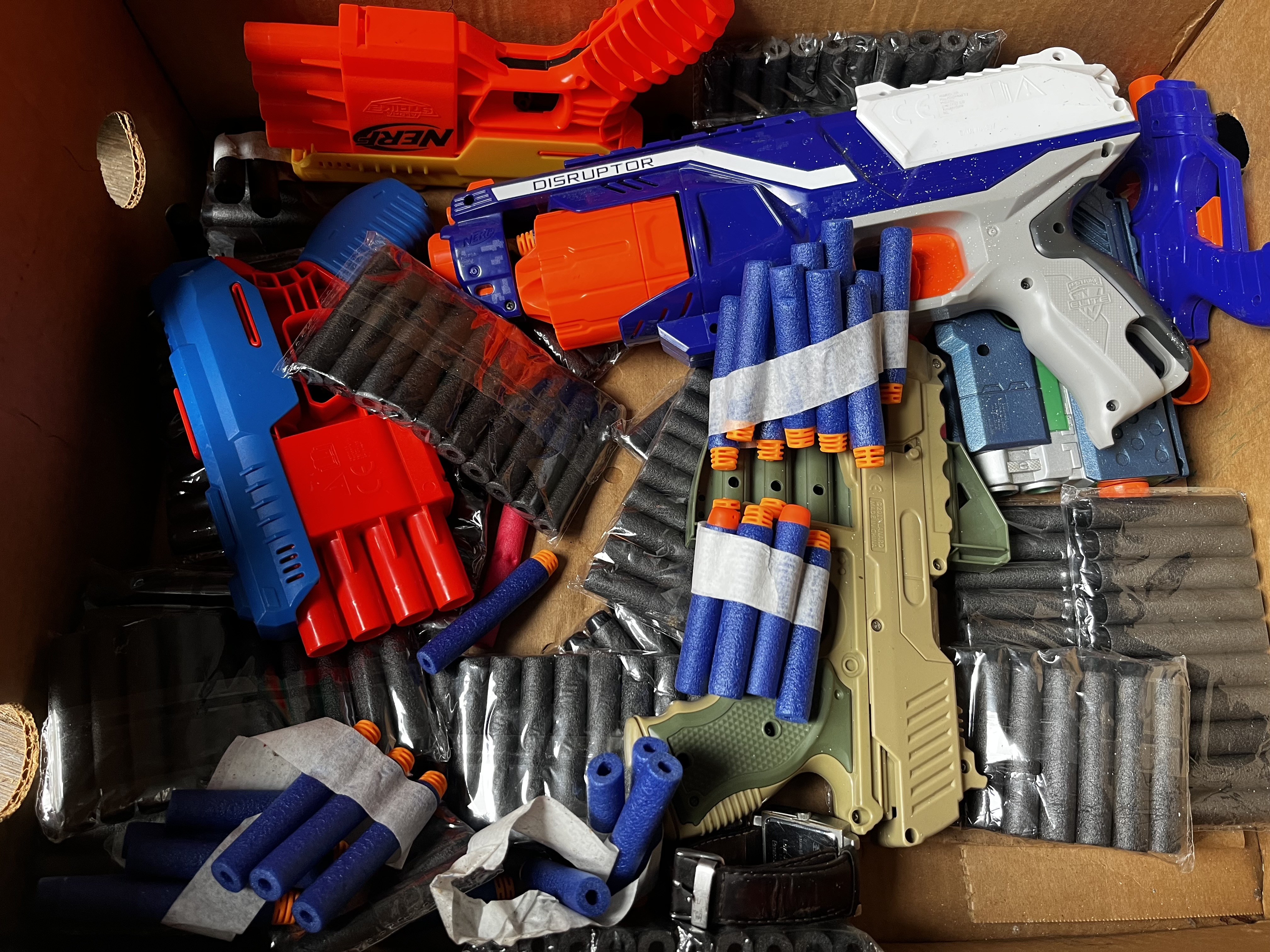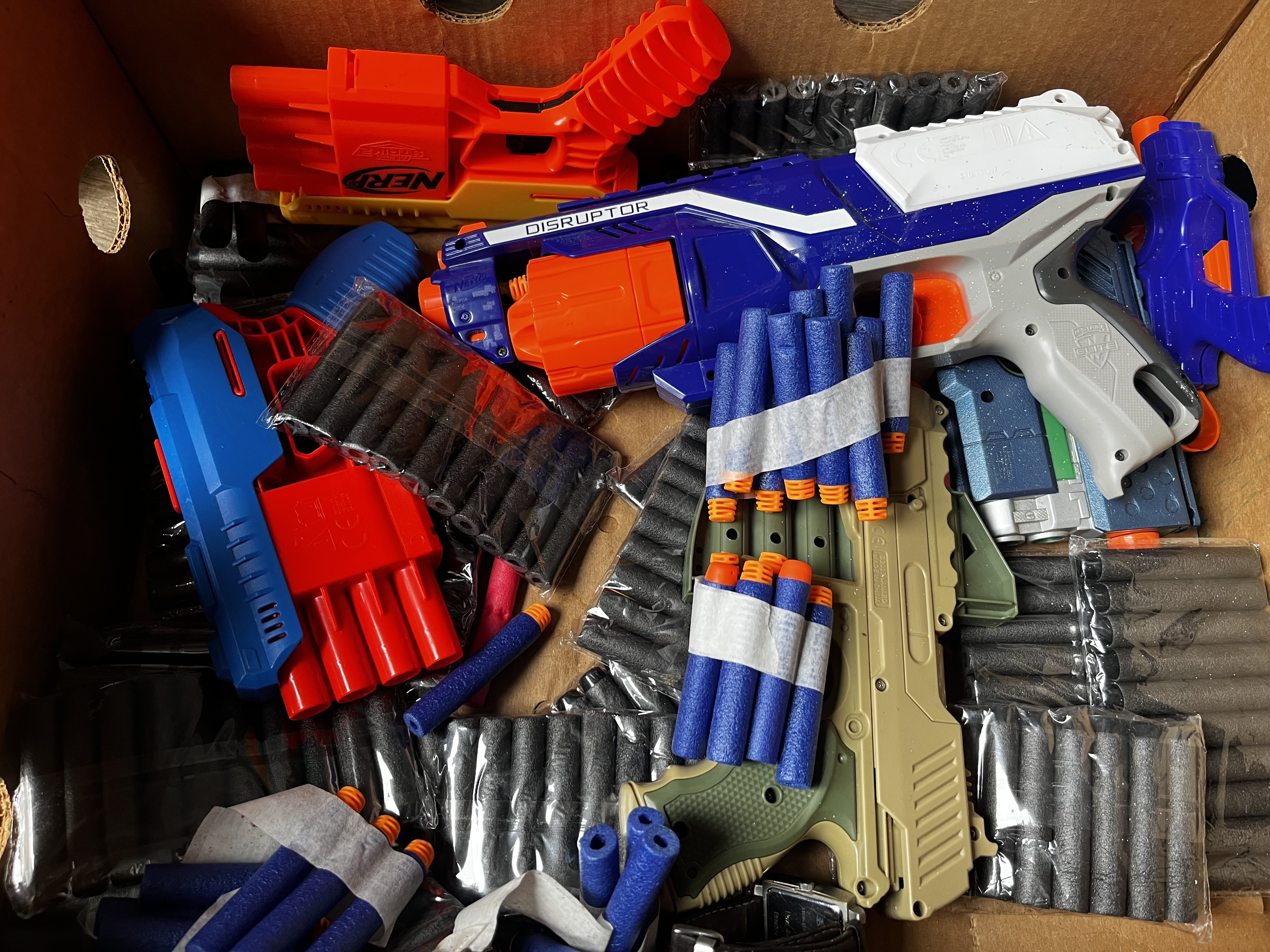 Lot 90: 5 Nerf Guns & lots of foam bullets