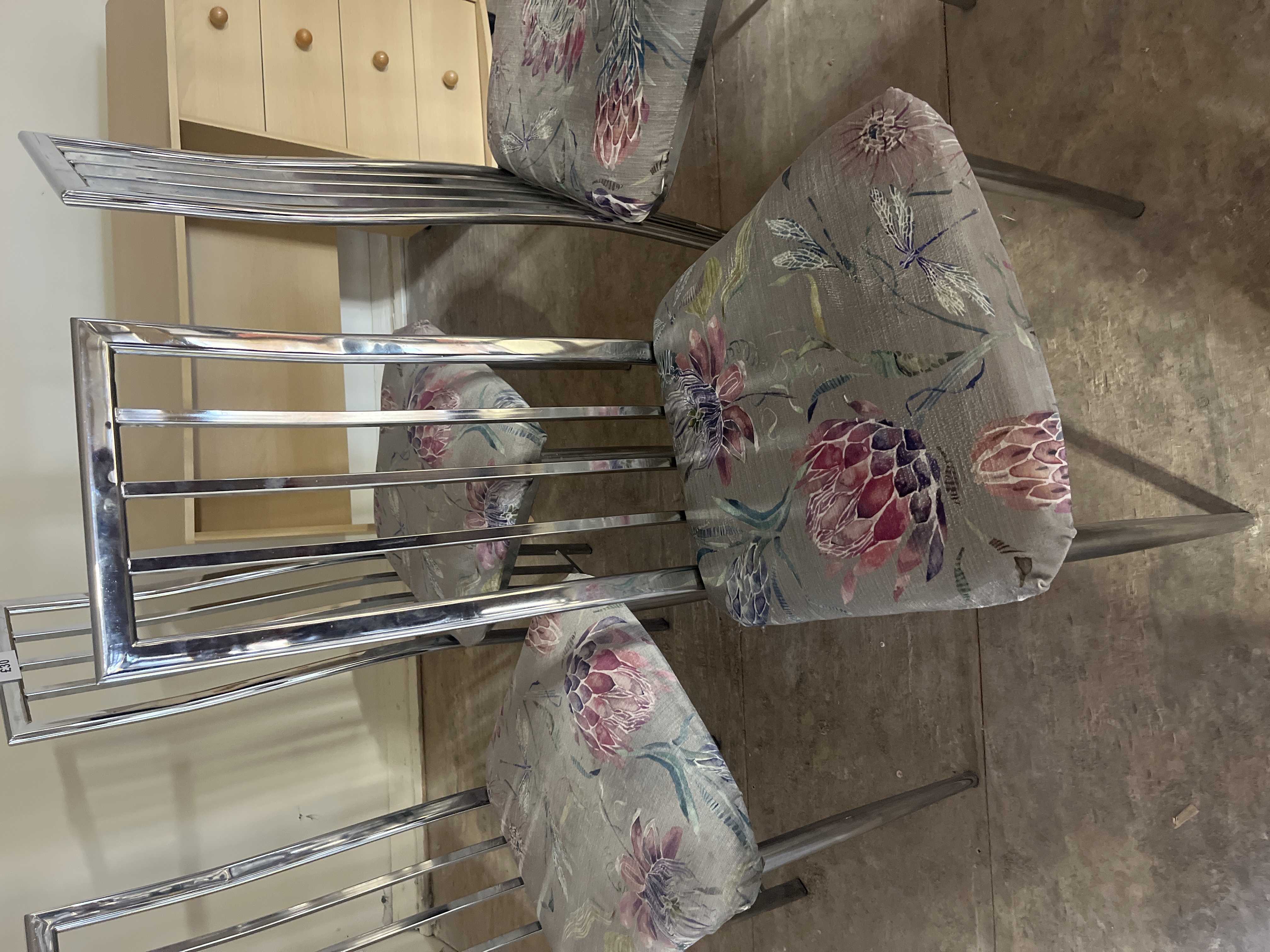 Lot 10: Set of 4 silver, coverd seat dining chairs